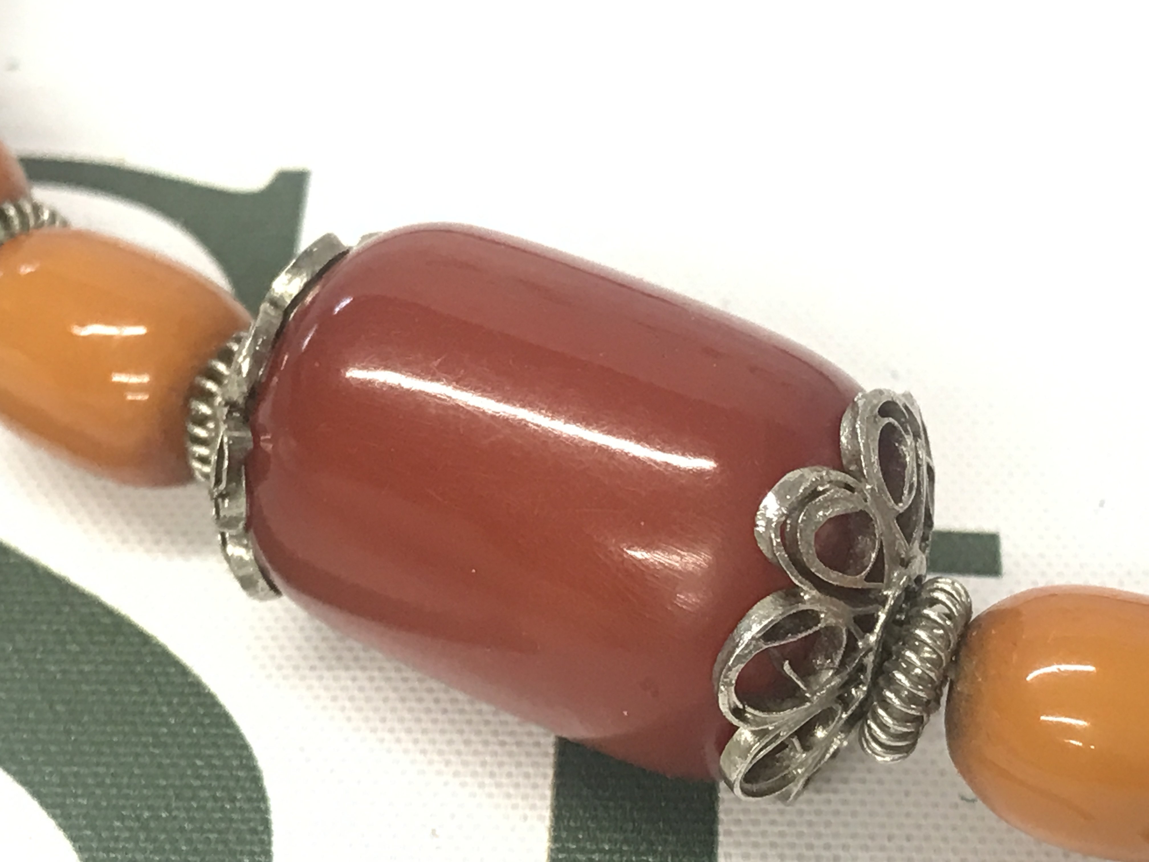 A Bakelite and silver colour necklace, 95g, 64cm long. Postage category A