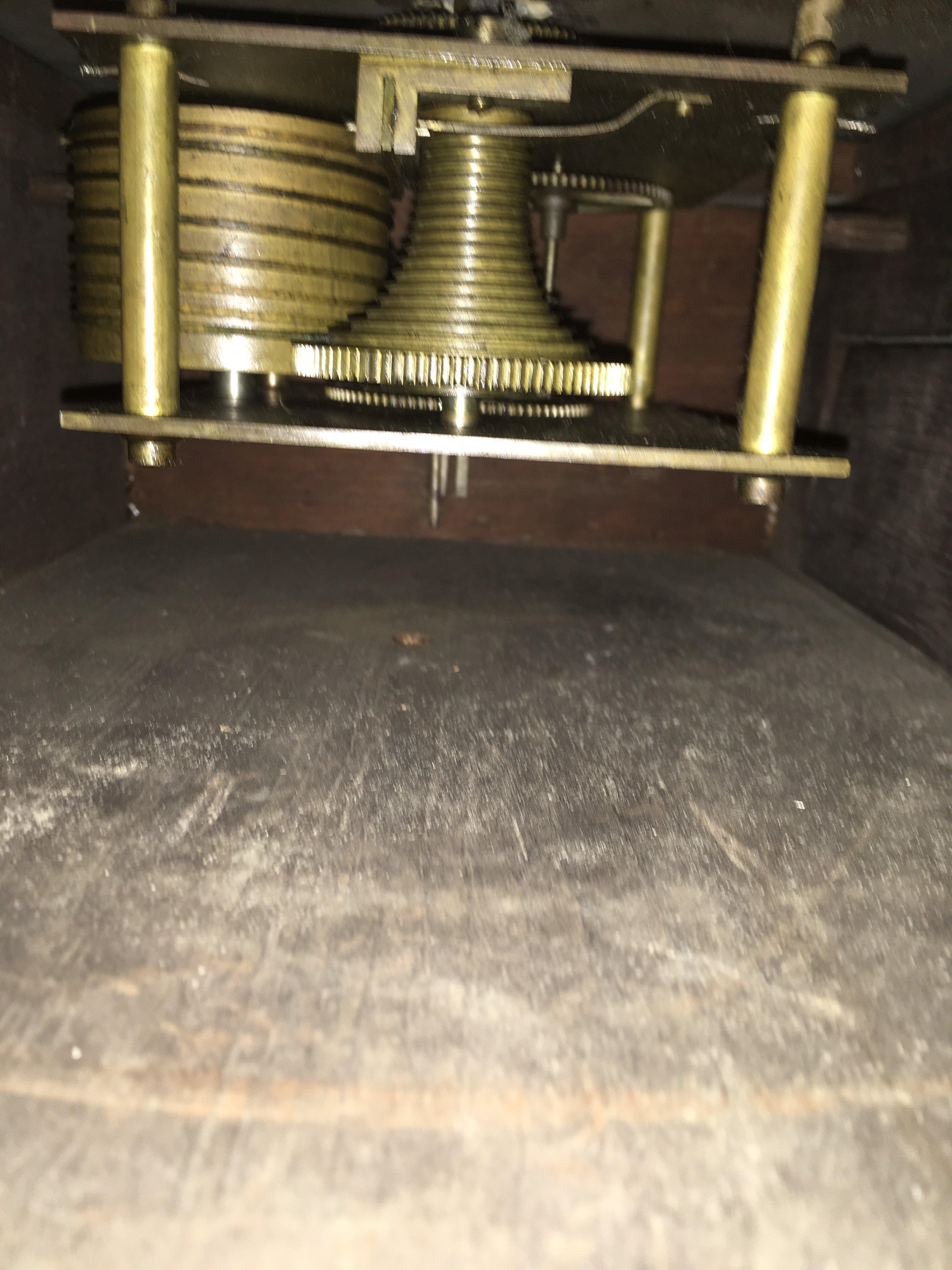 A Mahogany drop dial wall clock the painted dial with Roman numerals Fitted with a fusee dial.