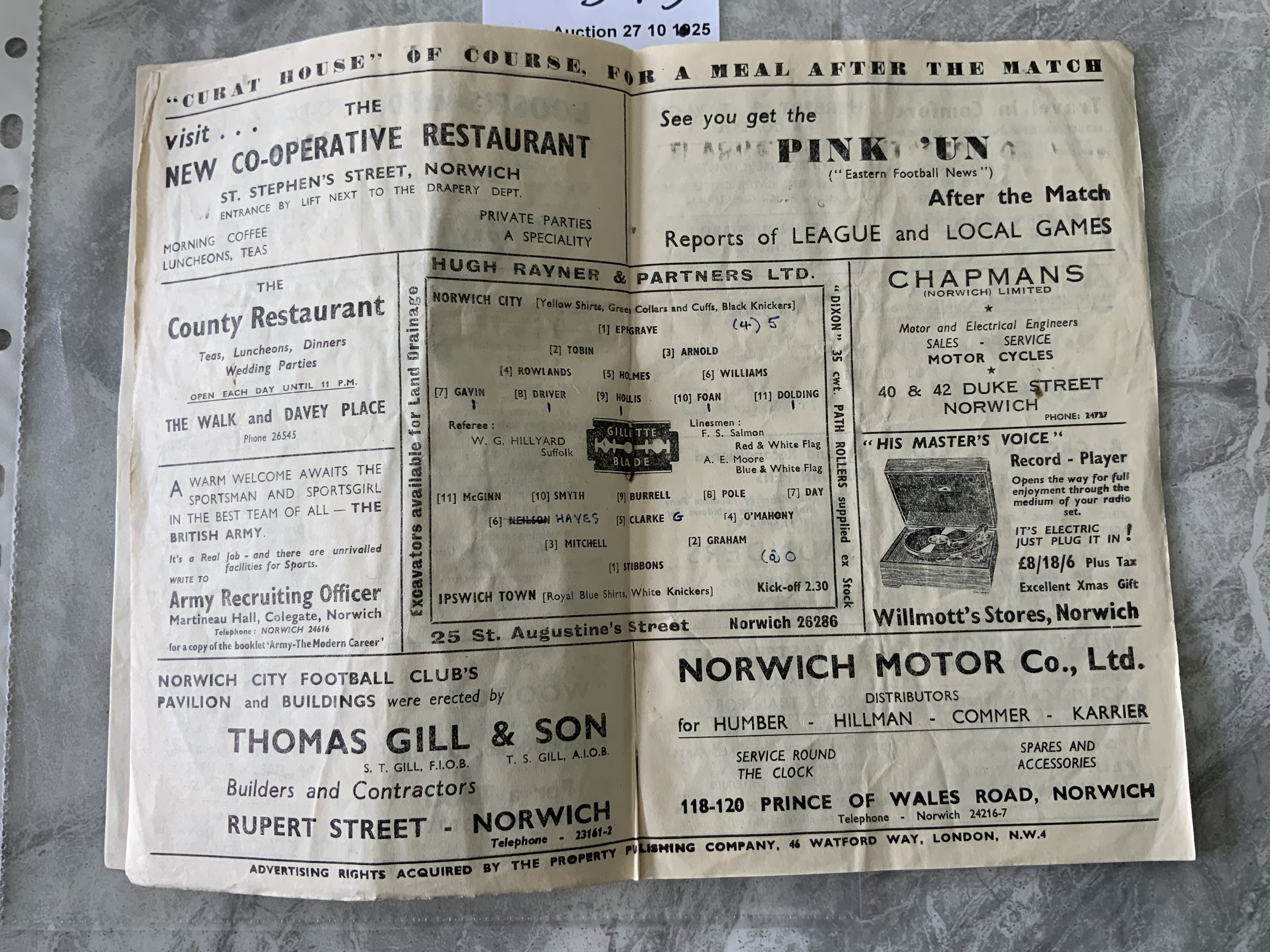 48/49 Norwich City Reserves v Ipswich Football Programme: Football Combination with team changes dated 15 1 1949. Good.