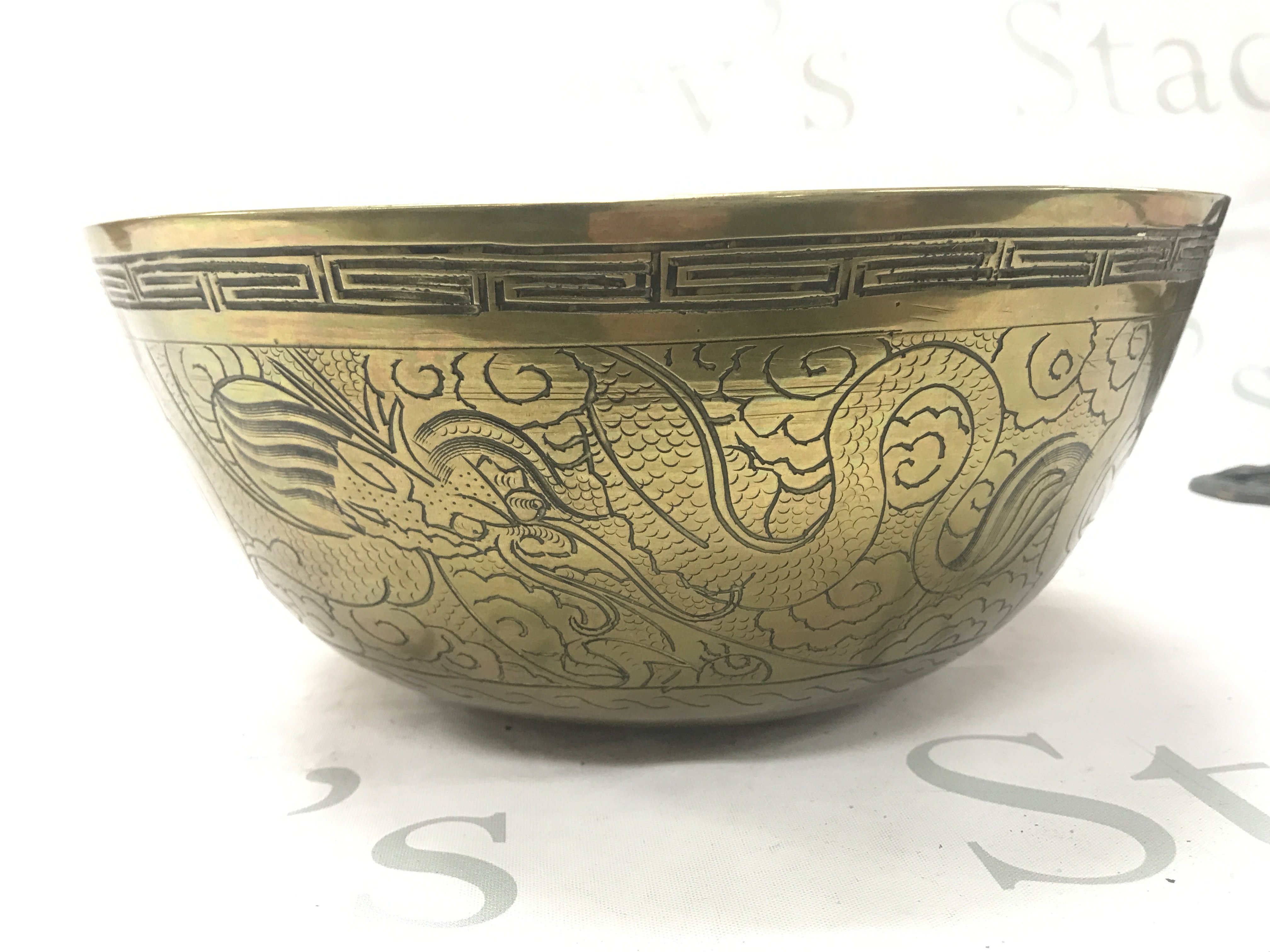 20th century Chinese dragon and Phoenix bowl, with six character mark at the base. 25cm wide , 11cm tall. Postage category B. NO RESERVE