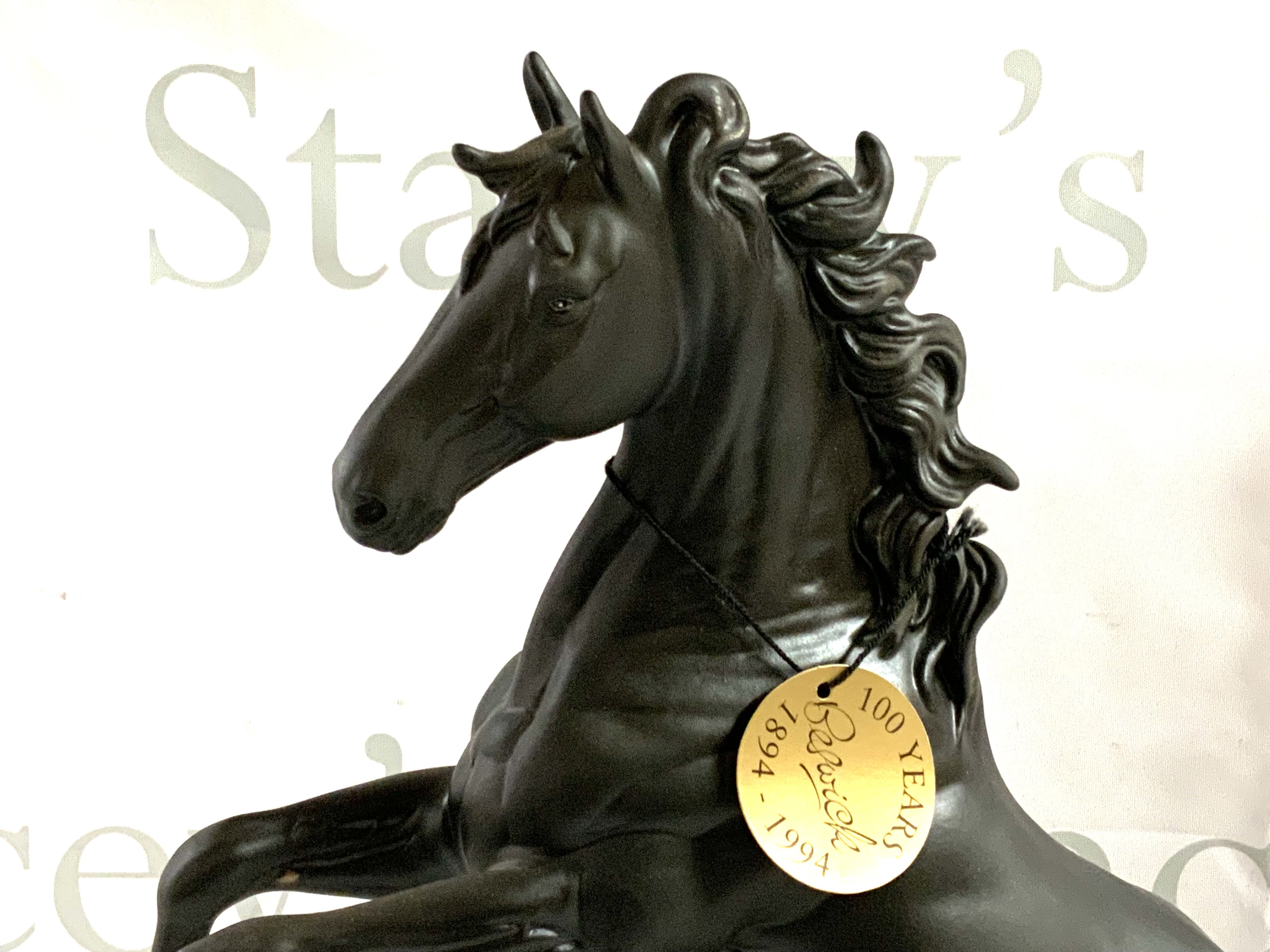 A large Beswick rearing horse named Cancara The Black Horse, Centenary 1894-1994, with base (2 boxes) additional small beswick horse. (D)