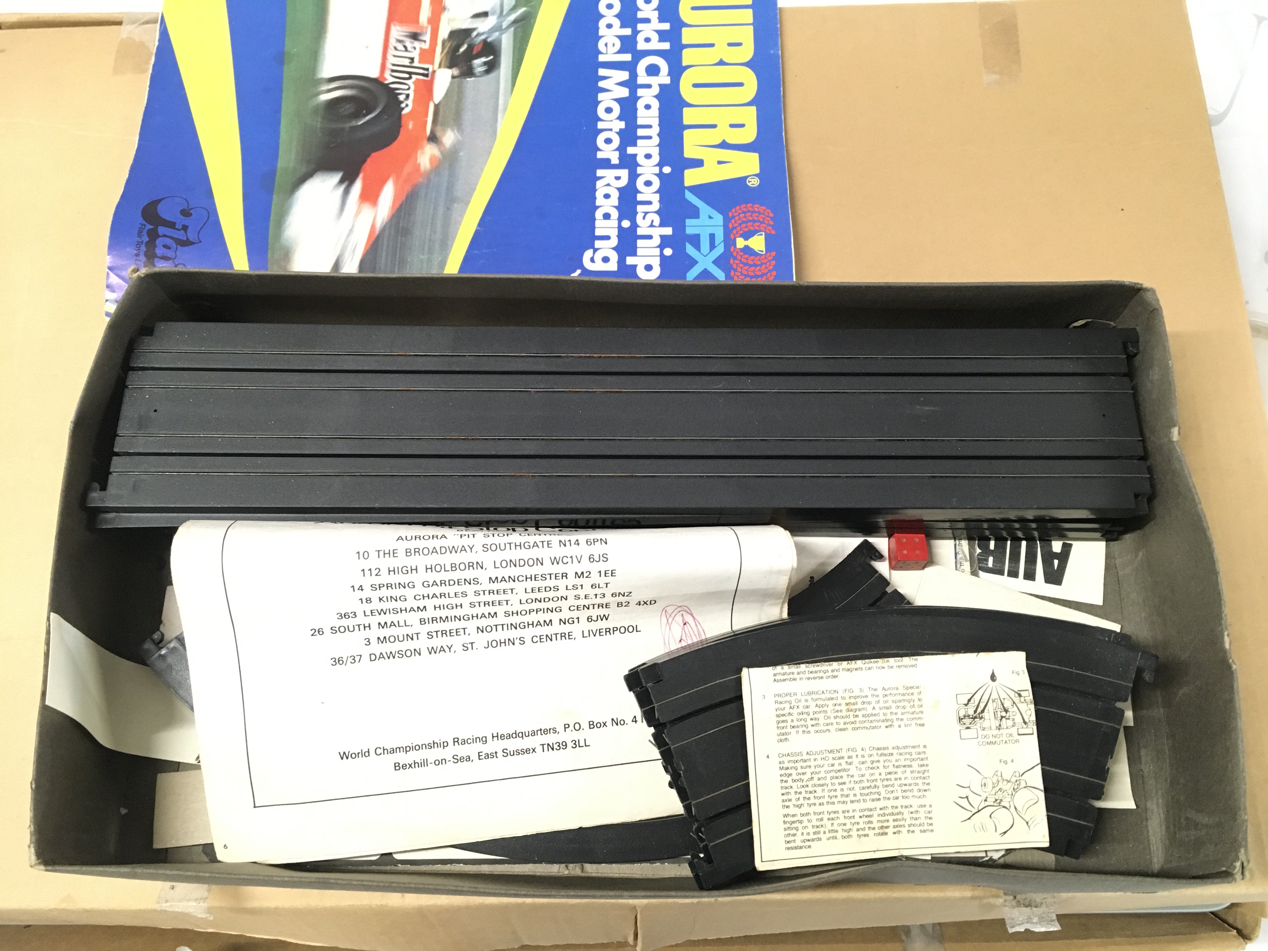 A Boxed Aurora World Champion Motor Racing Set with Extra Track And Extra Cars.