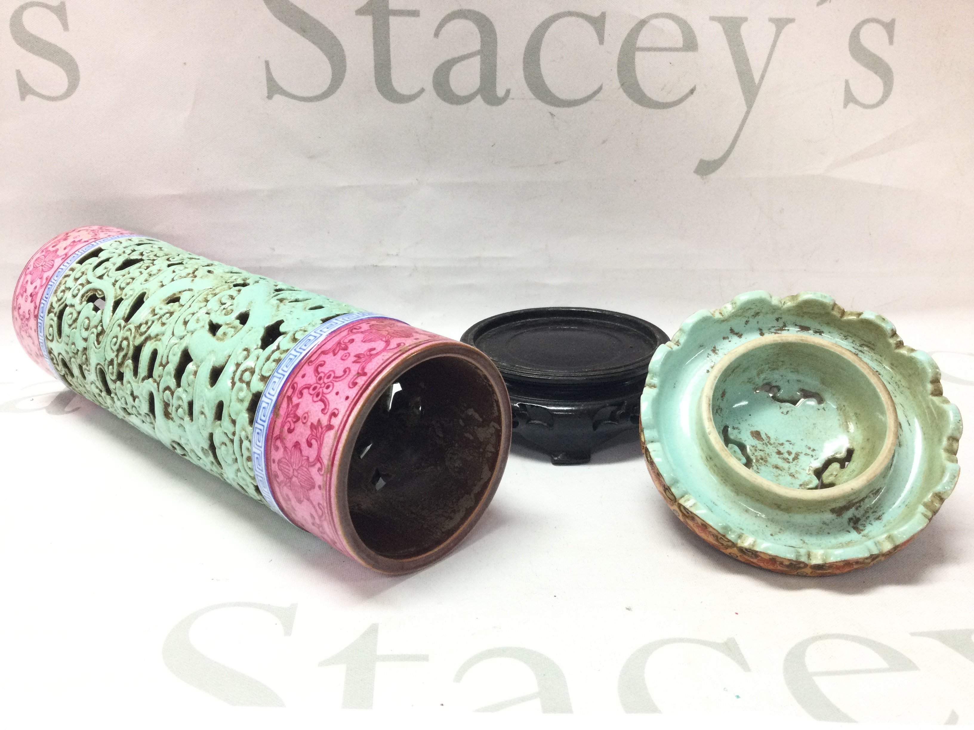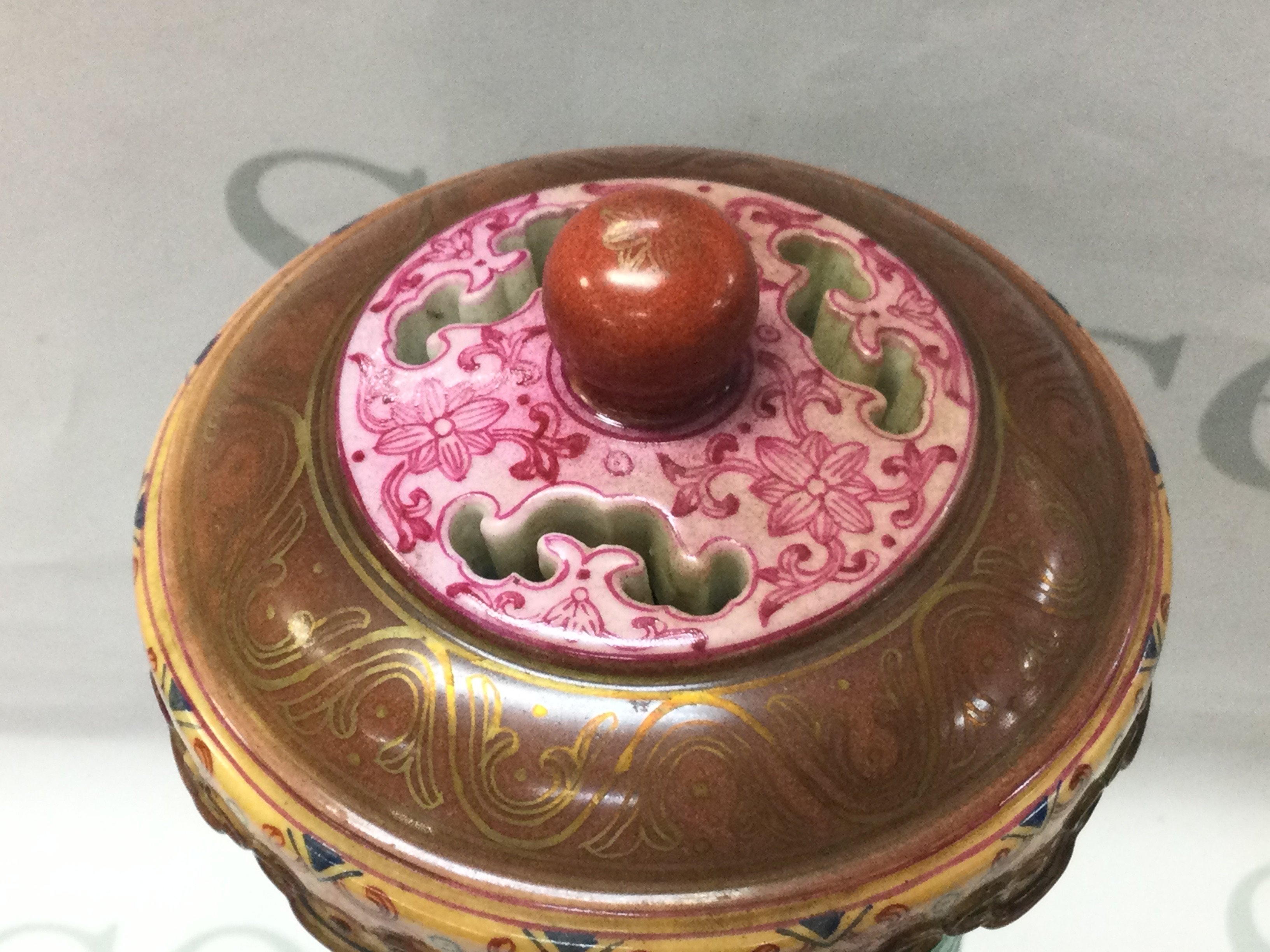 A Chinese enamel incense burner with lid ,27.5cm tall . This lot cannot be posted