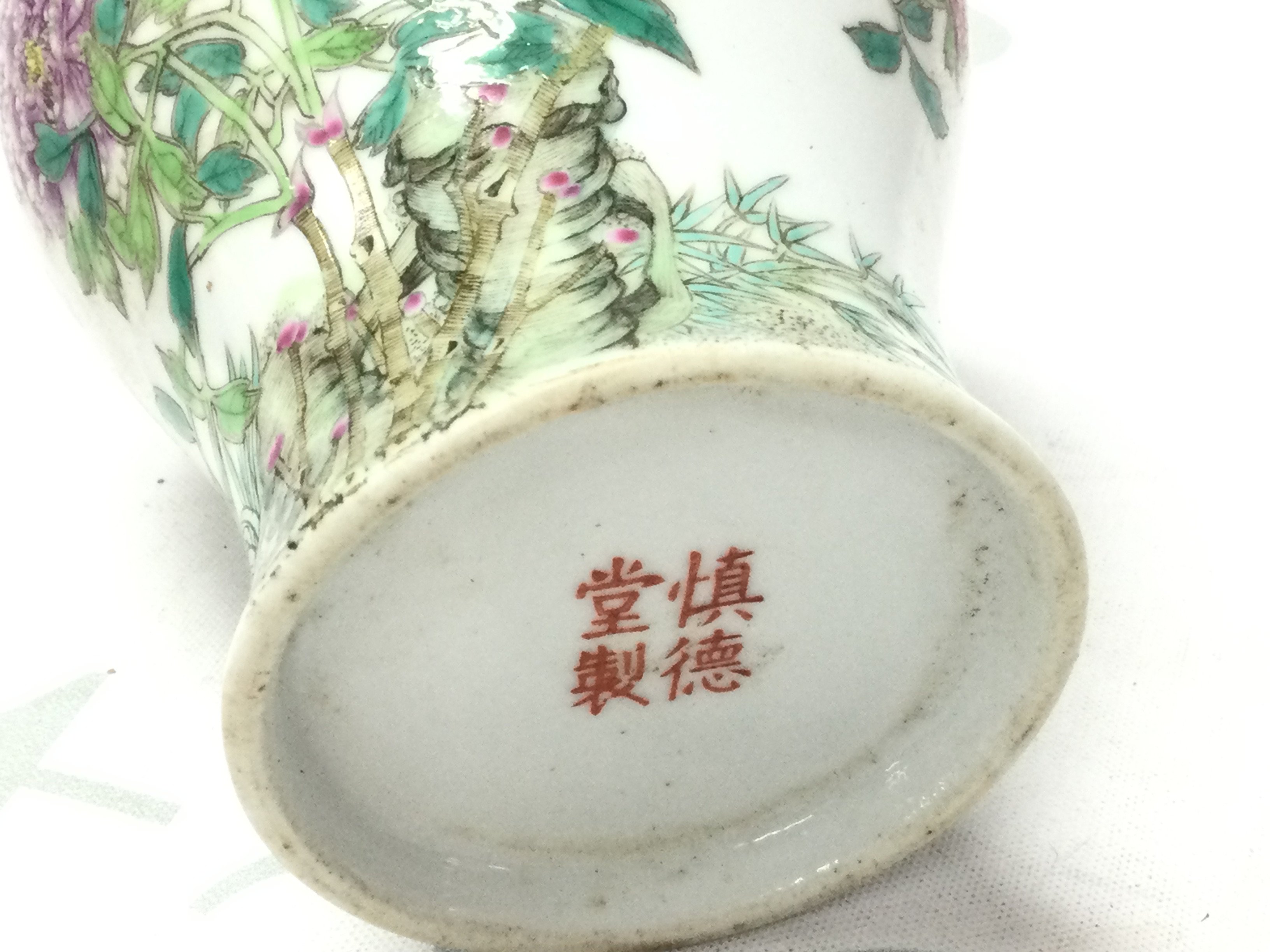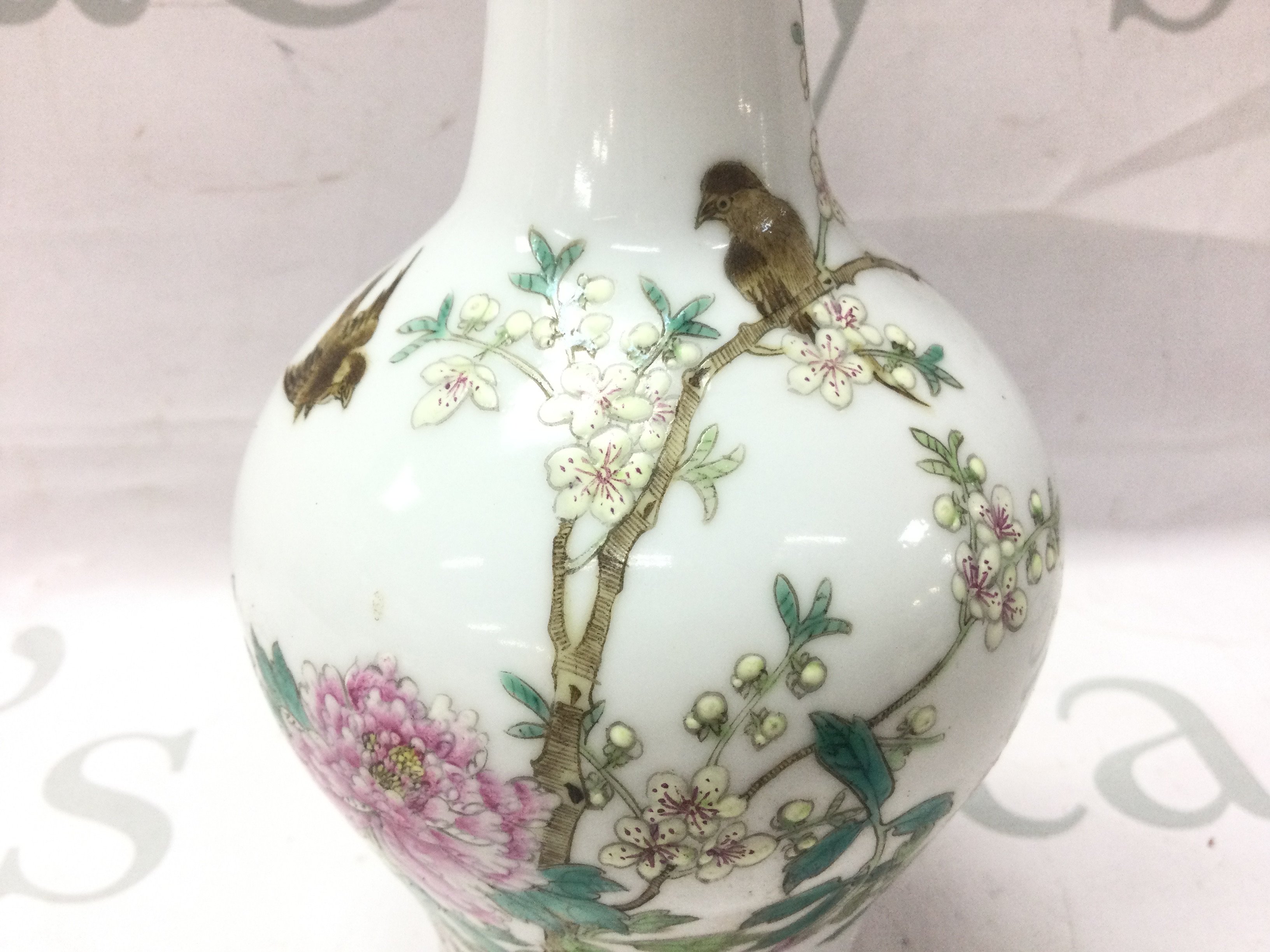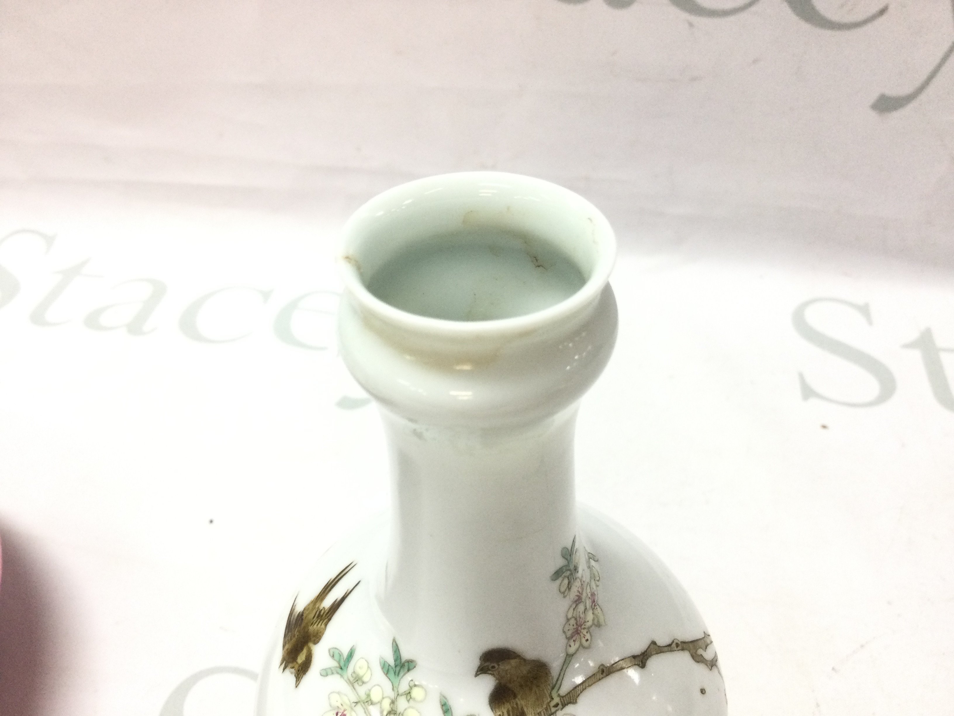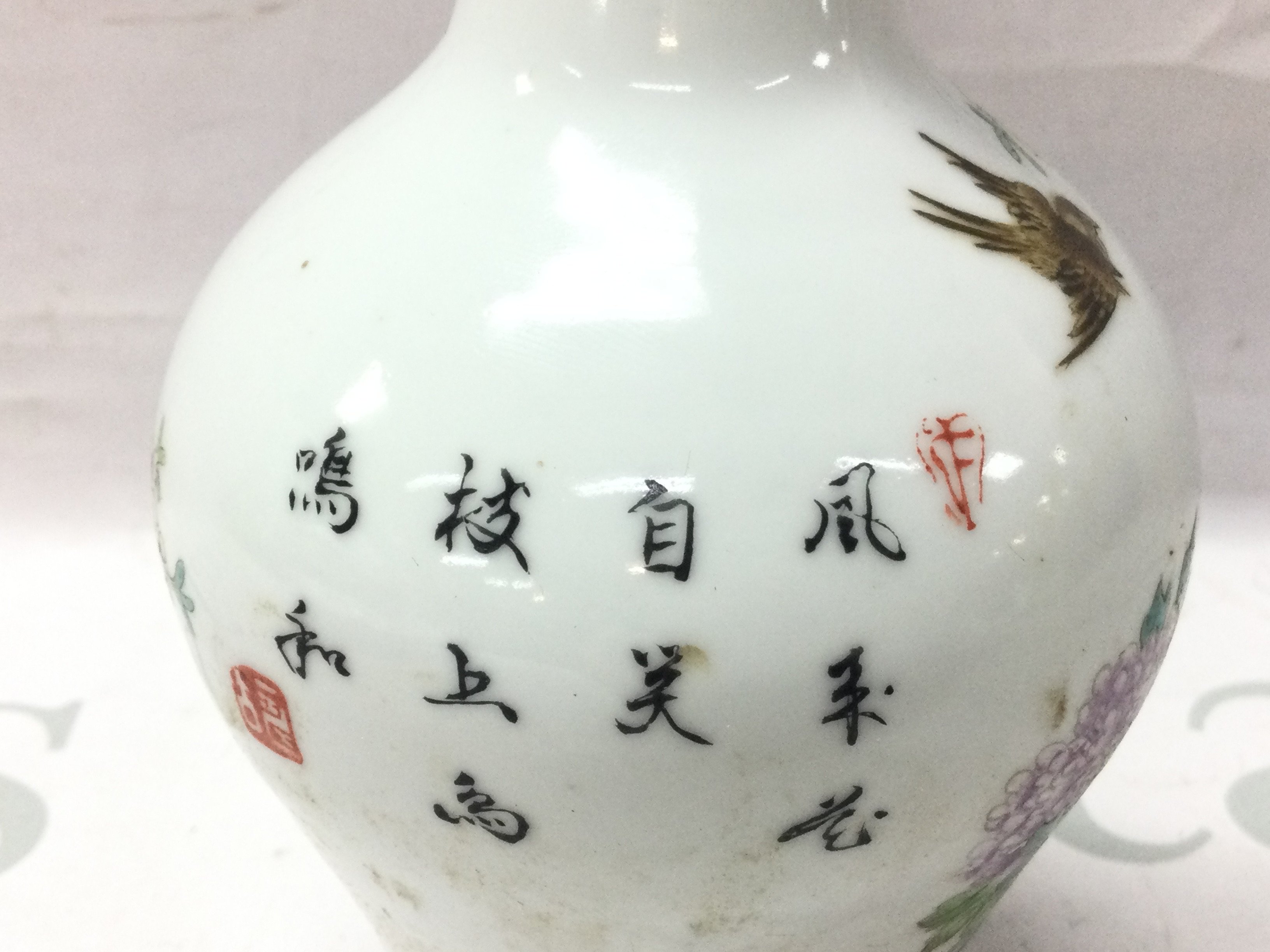 A late republic Chinese native flora and birds vase 17.5cm tall