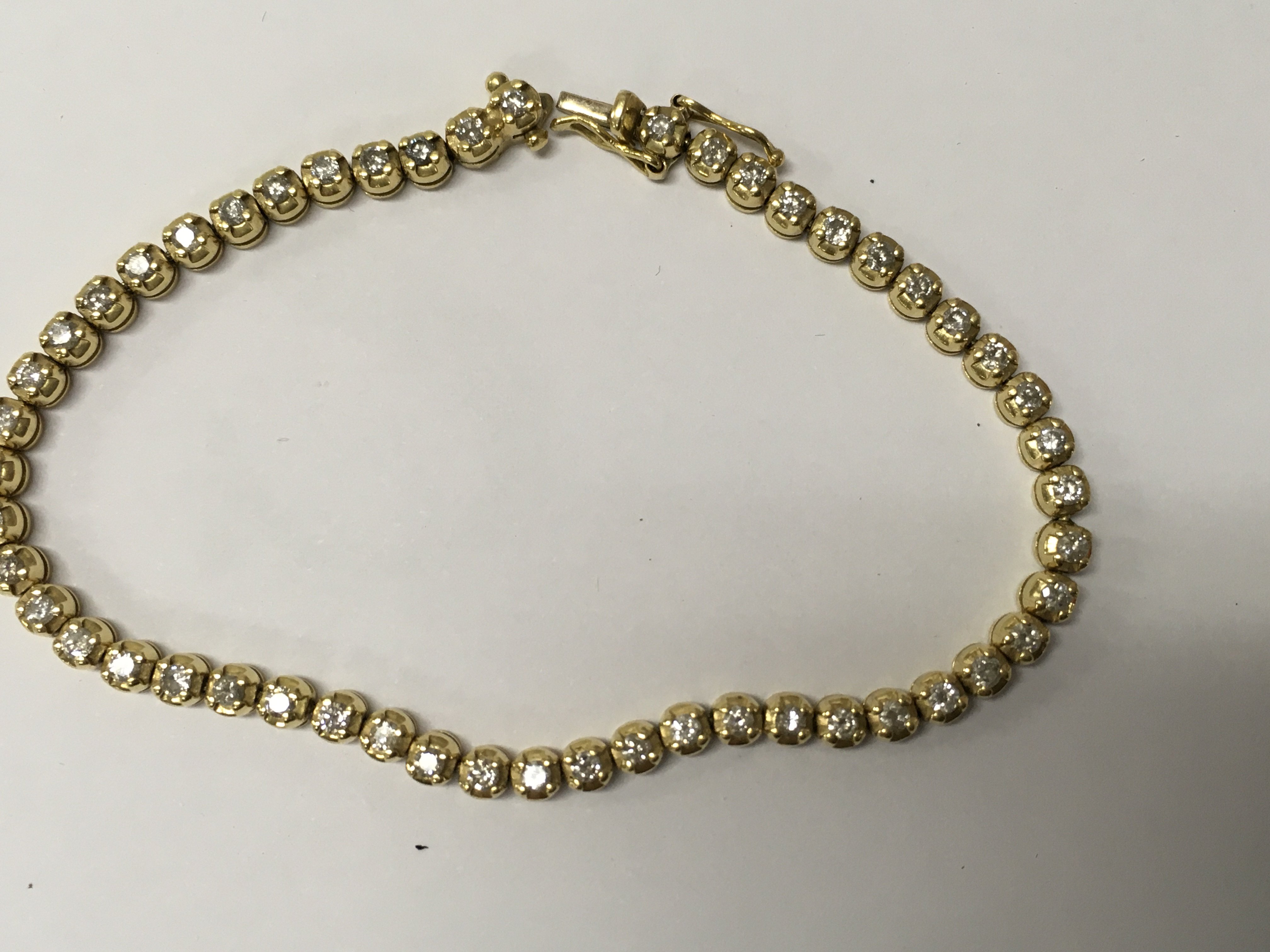 A 18ct yellow gold line bracelet inset with 51 diamonds.