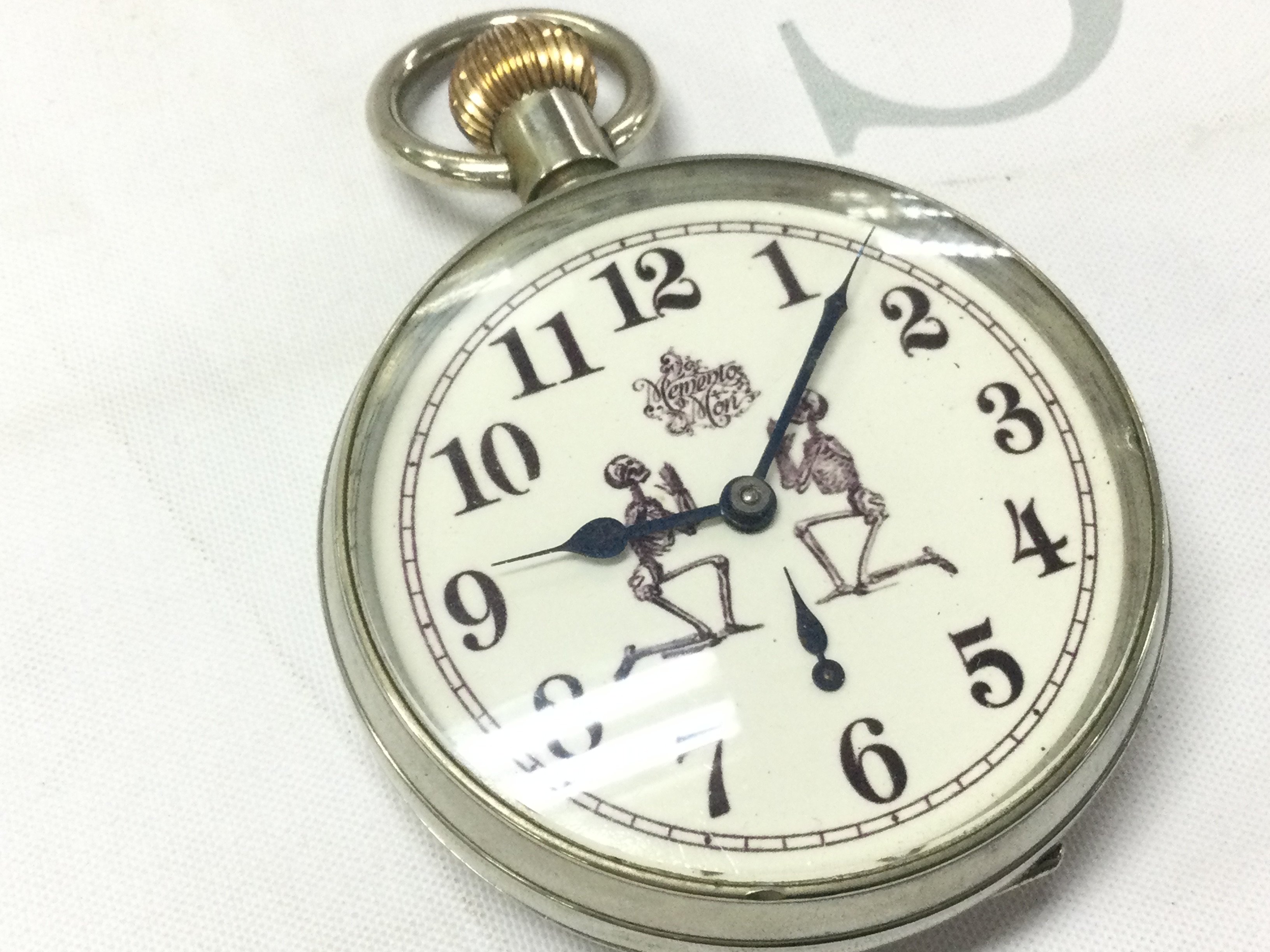 An Edwardian Goliath pocket watch with Memento Mori face and silver hallmarked case