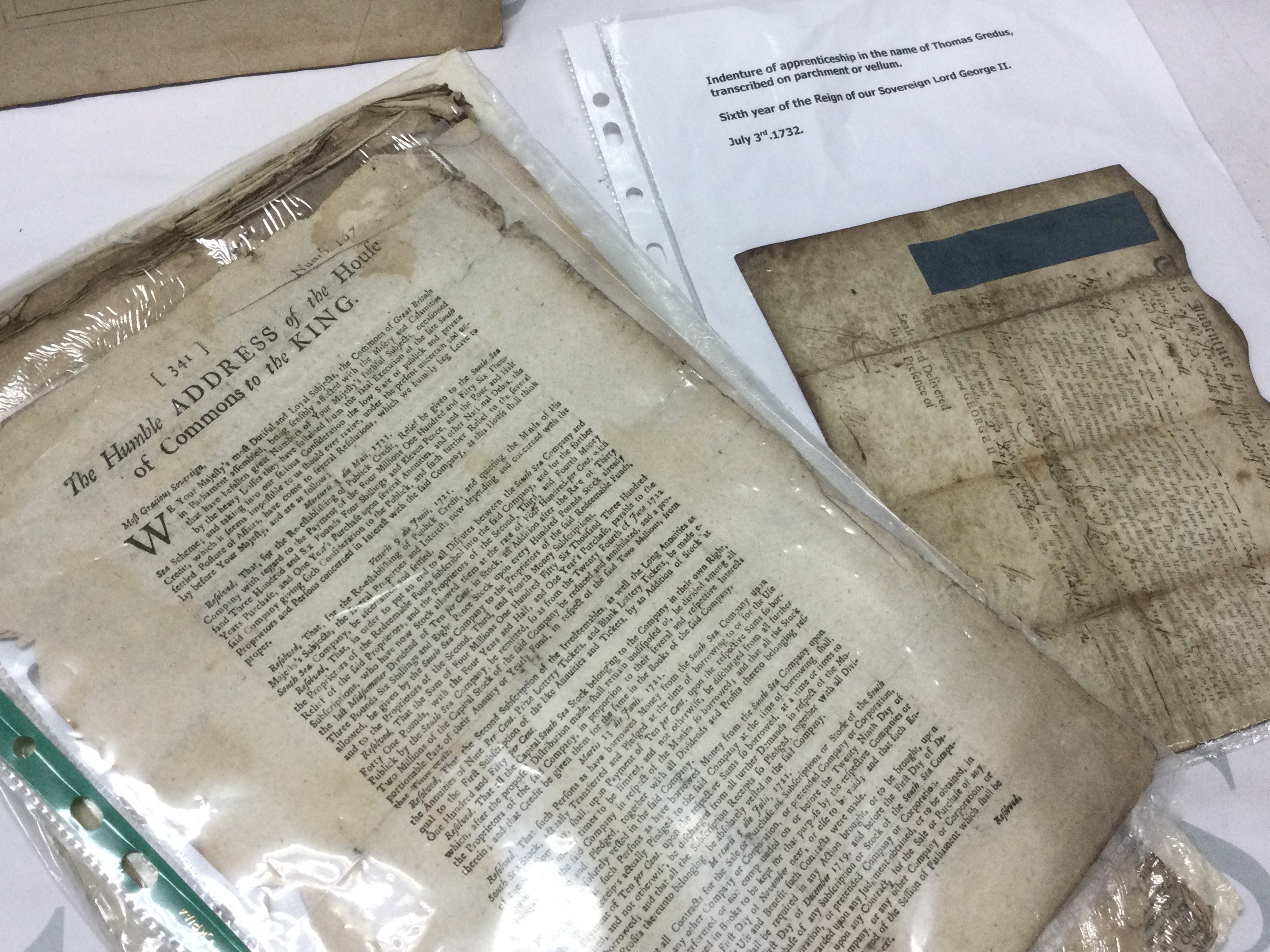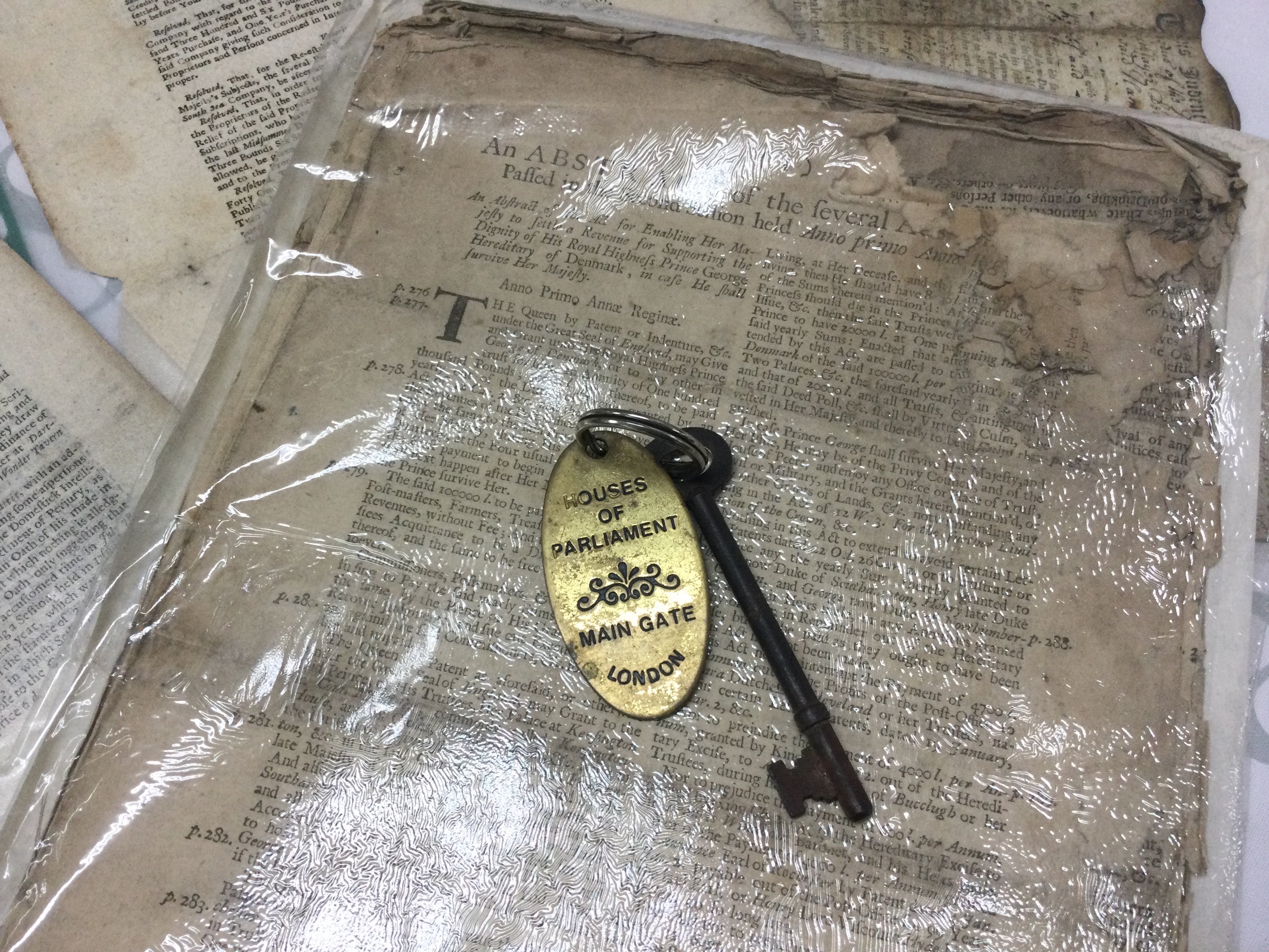 A collection of 17th/18th century House of Commons parliament papers, documents etc including a main gate key. Postage category C