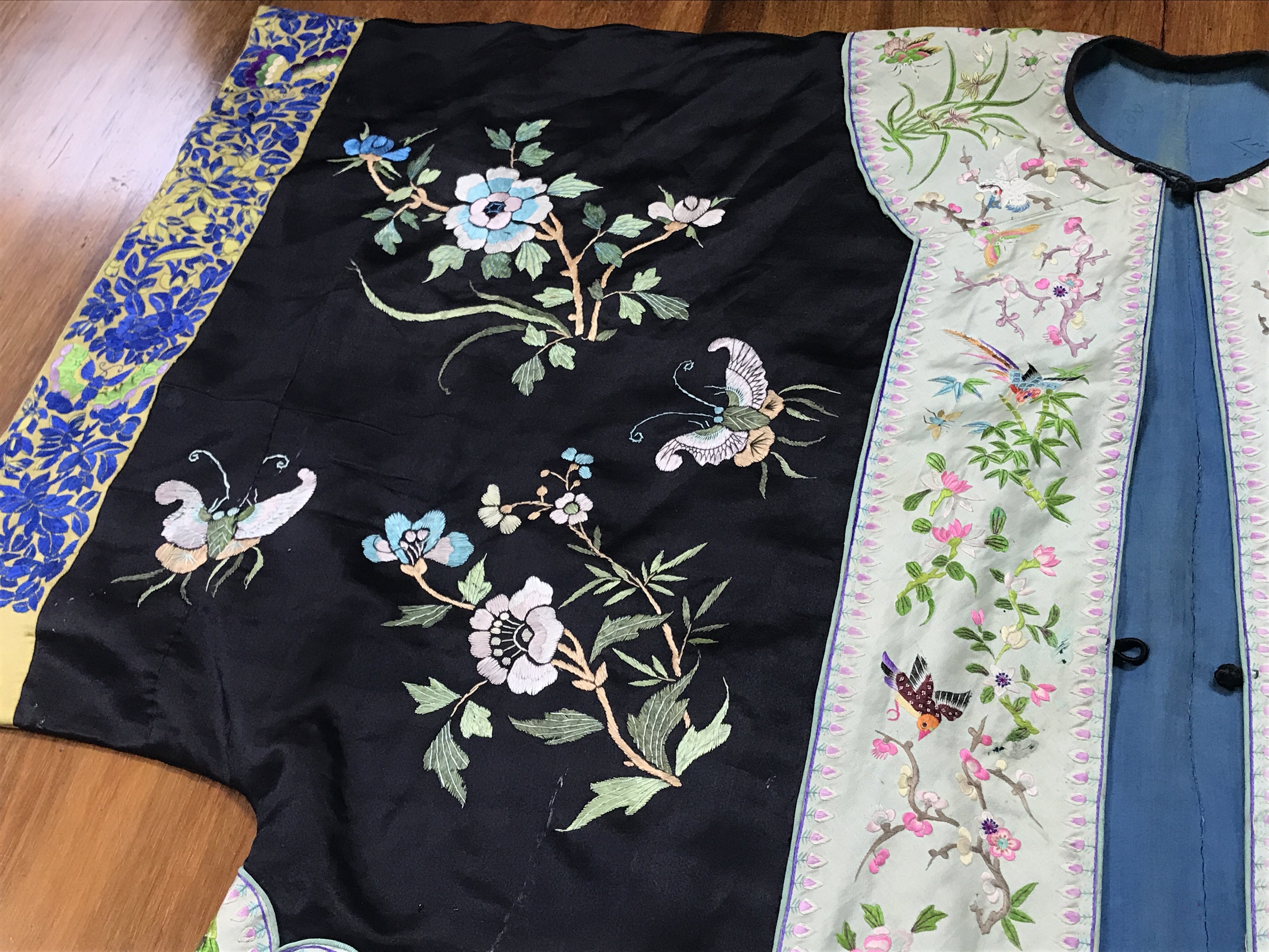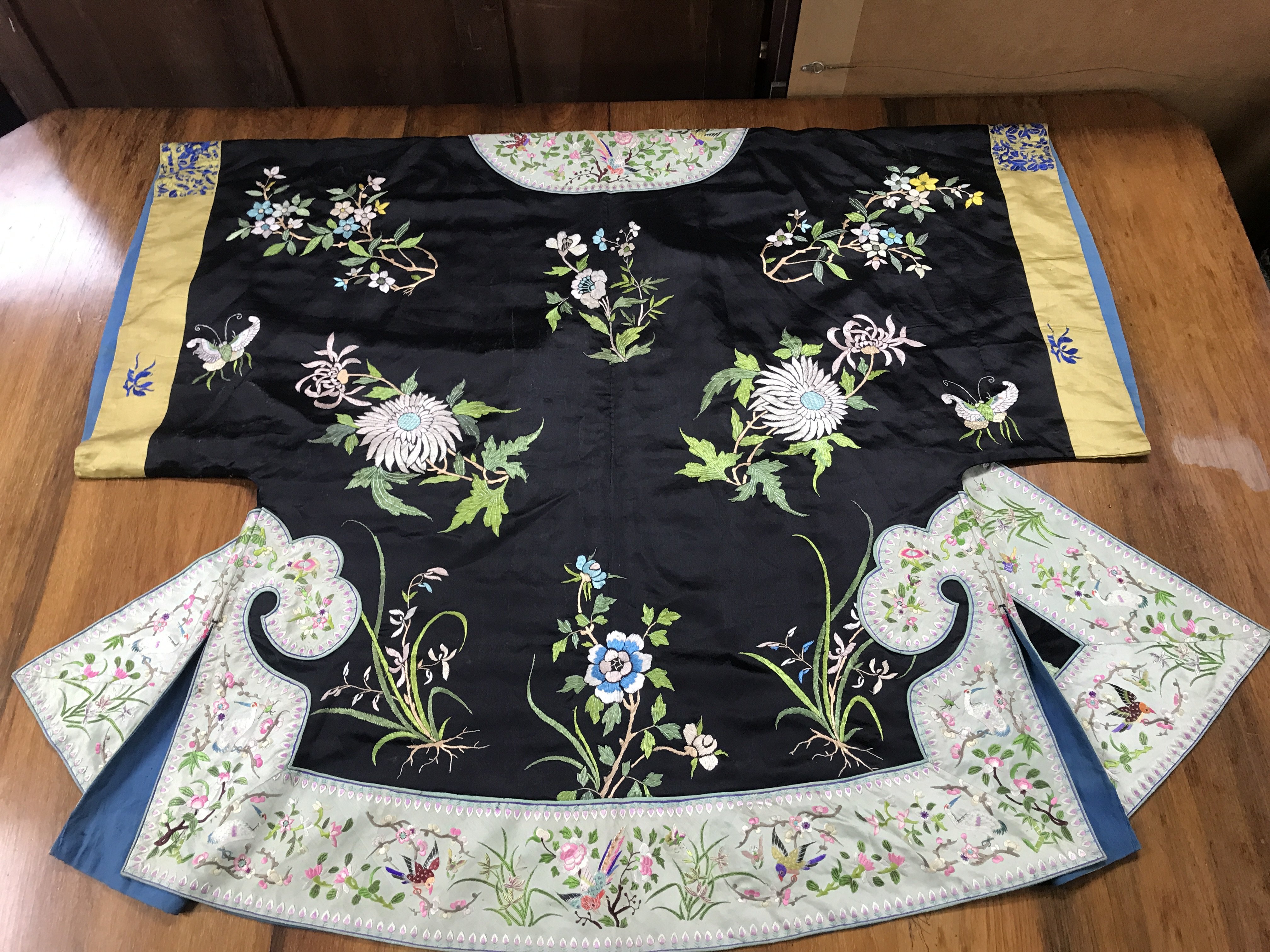 A Chinese embroidered silk robe . Postage category B