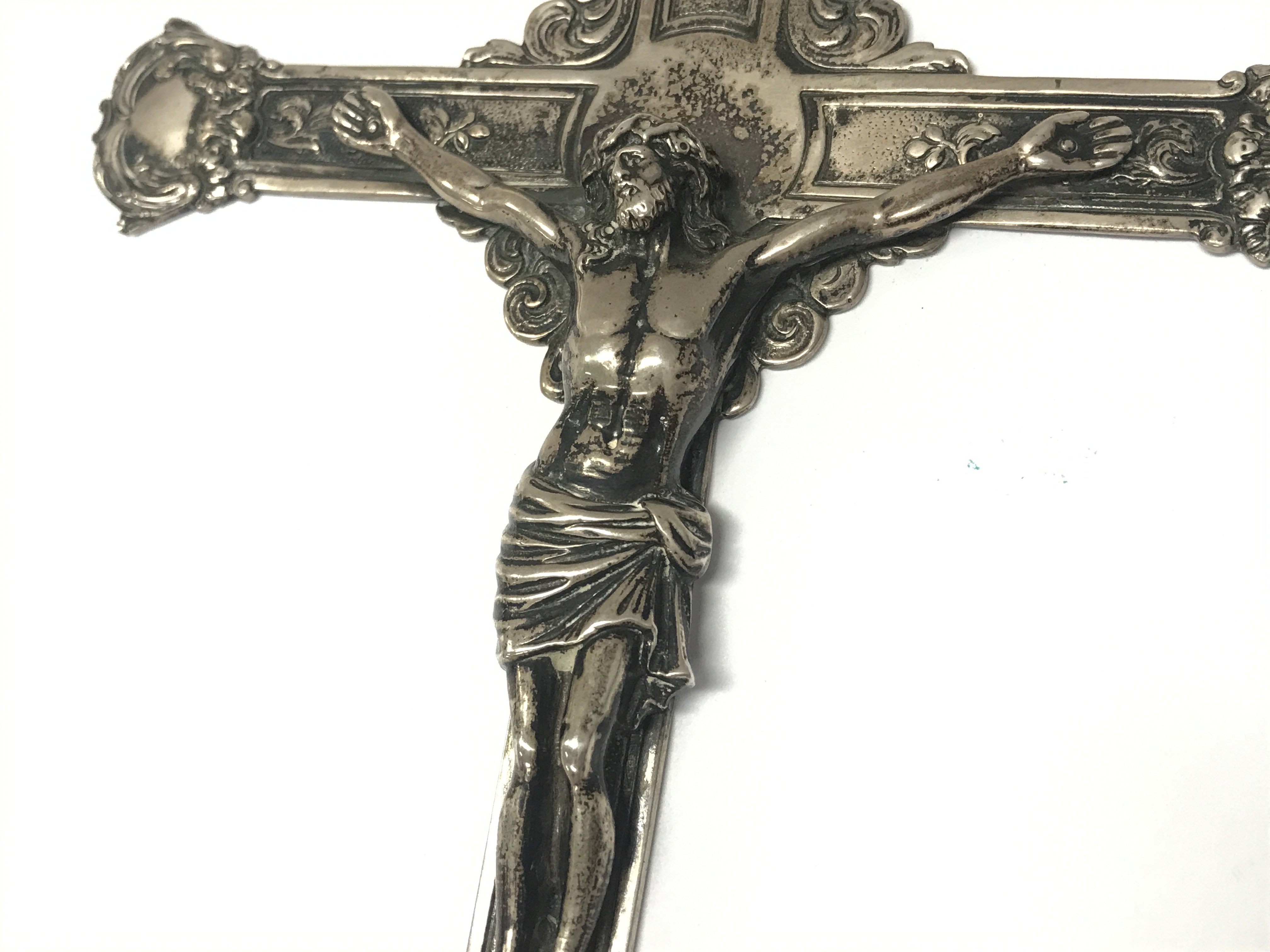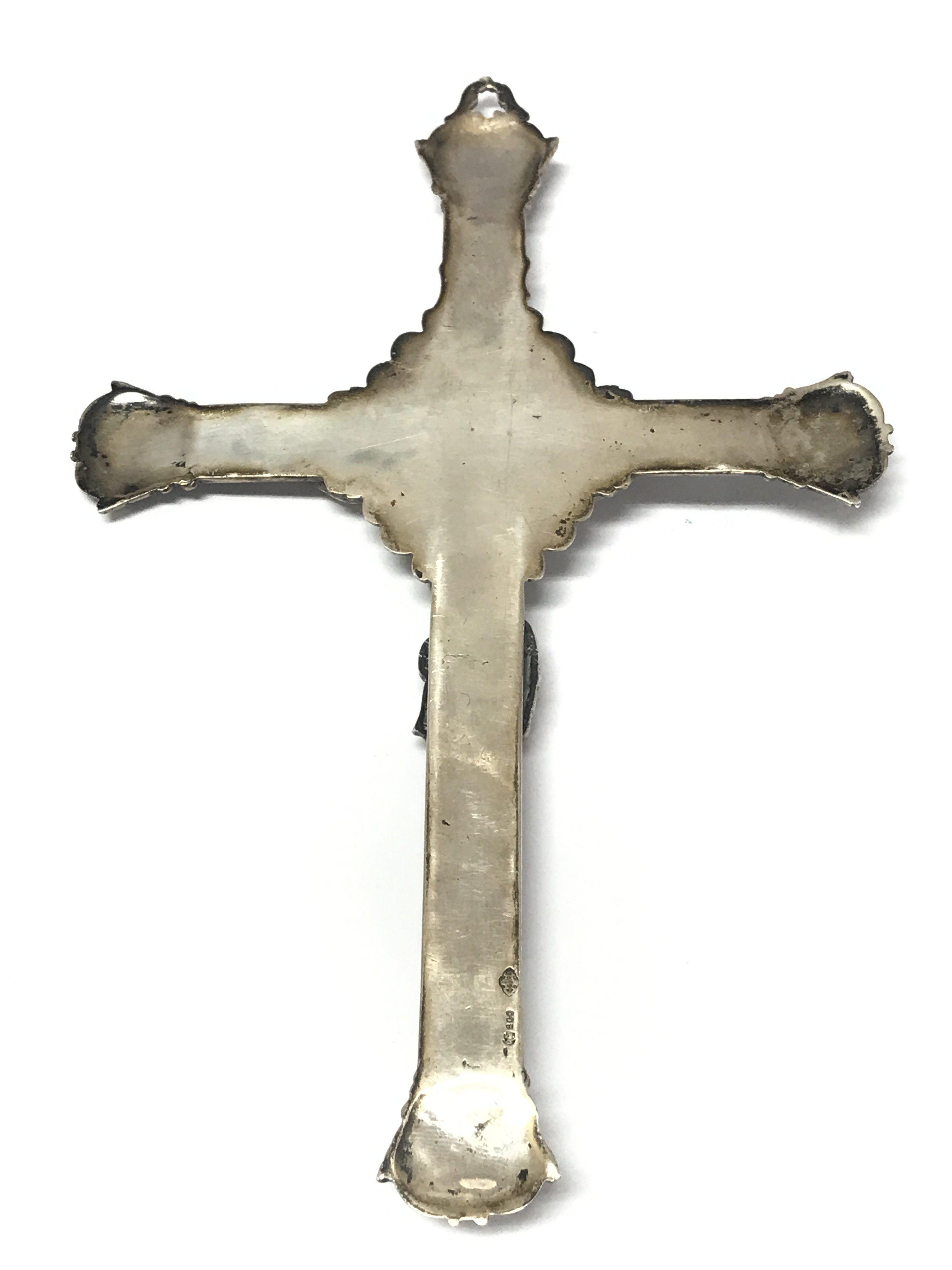 A silver crucifix 20cm tall 13cm wide , postage category B