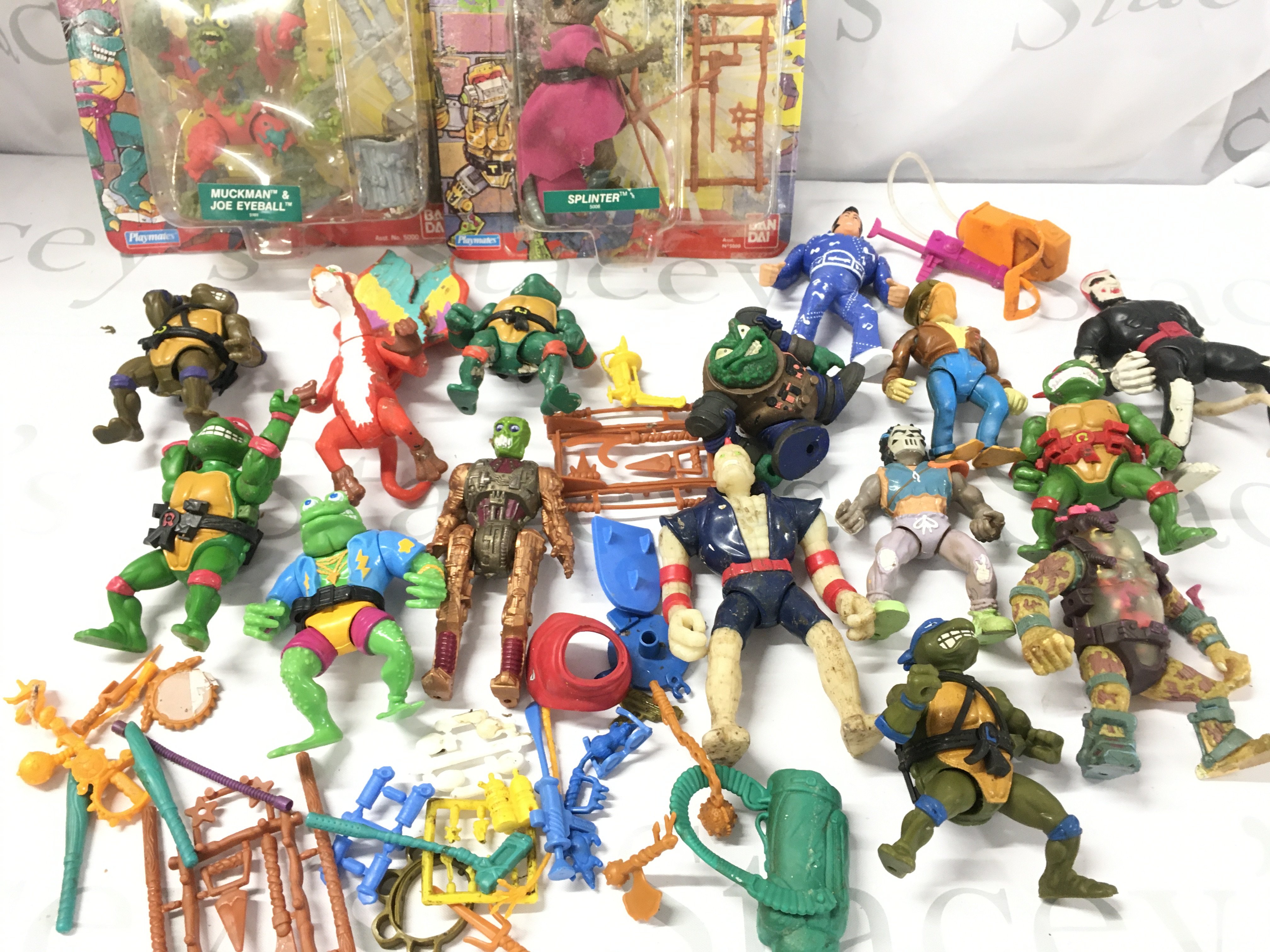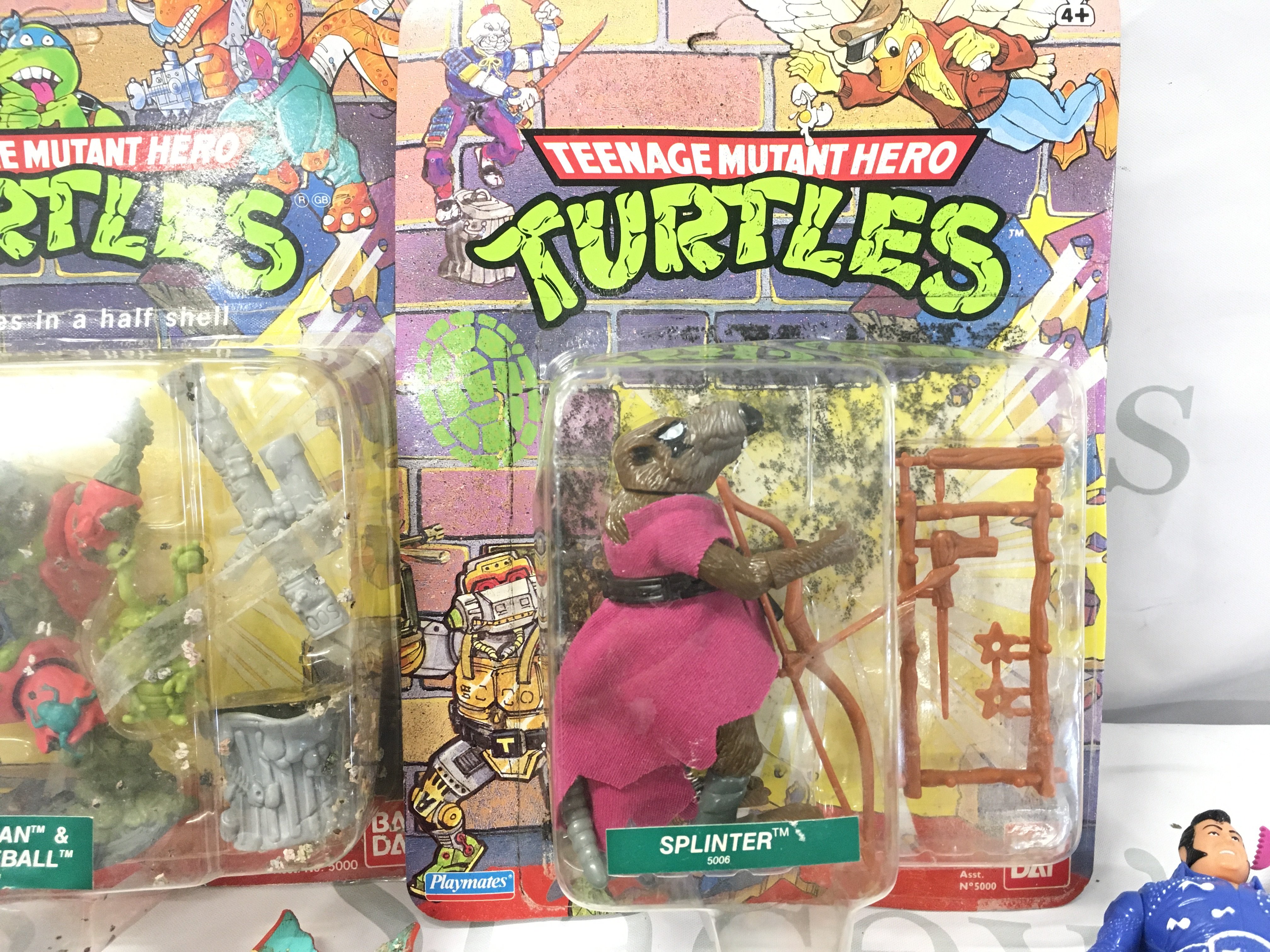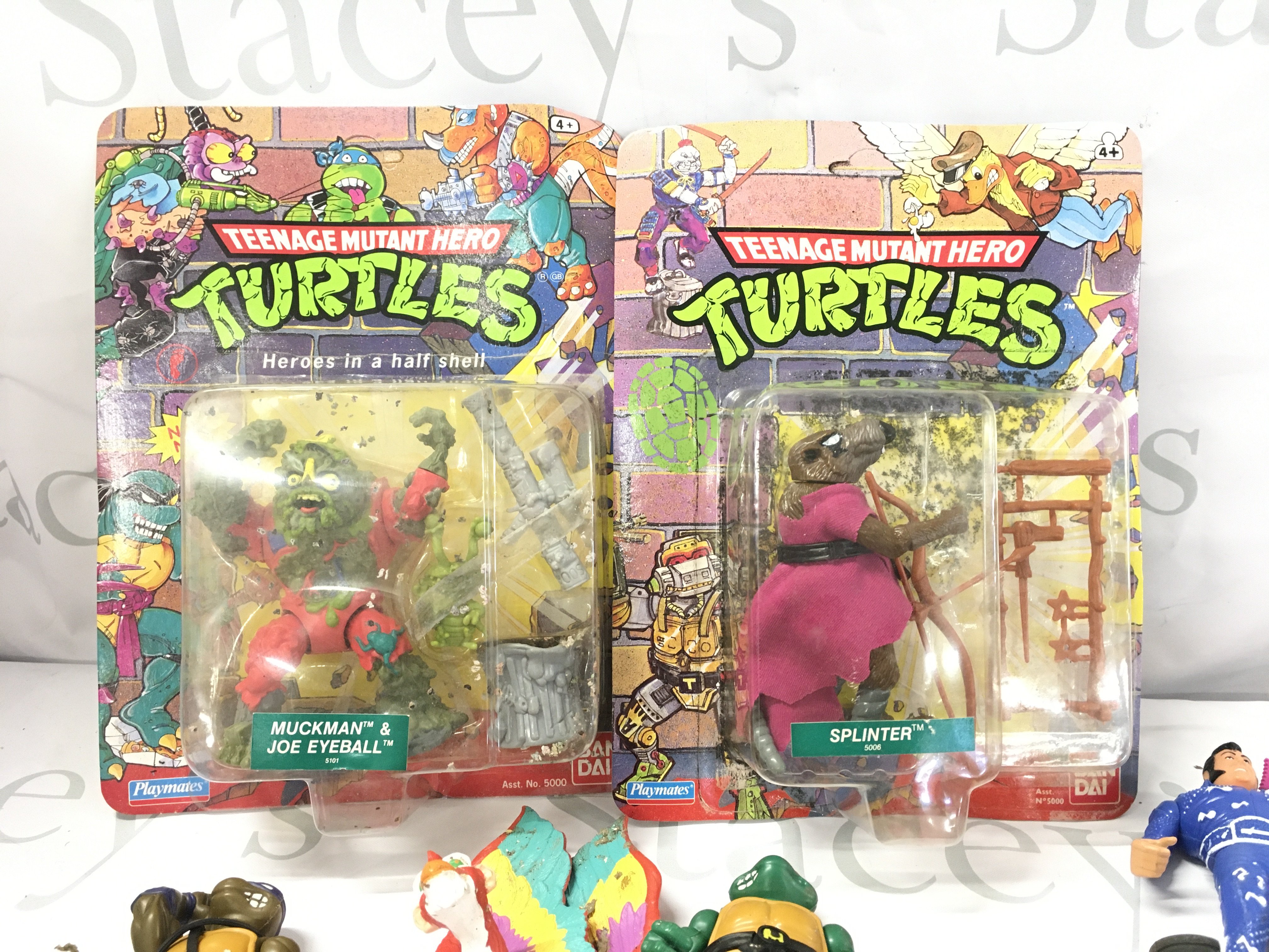 2 Carded Playmates Teenage Mutant Hero Turtles Figures (Some Damp Damage) And A Collection of Loose Figures.