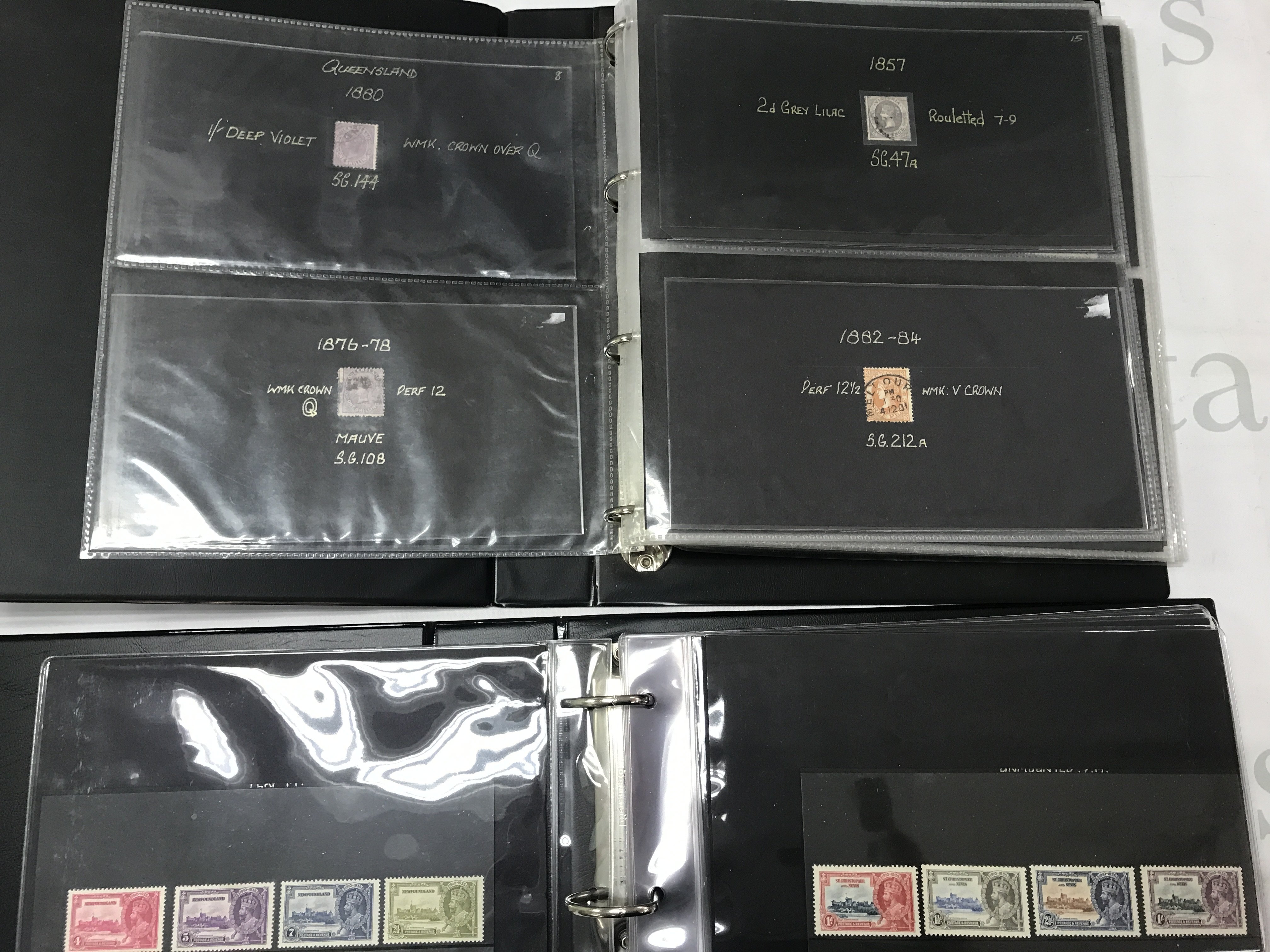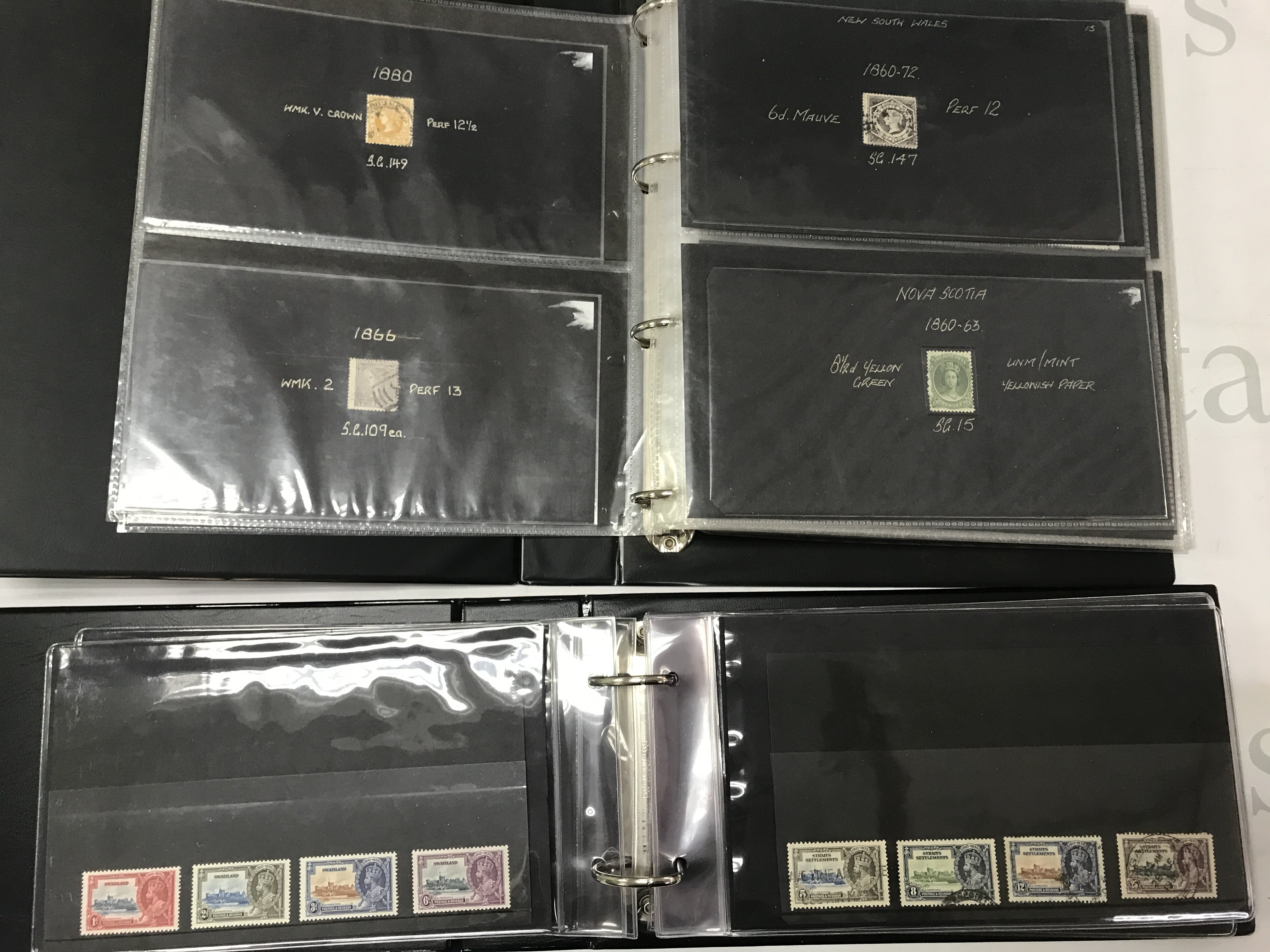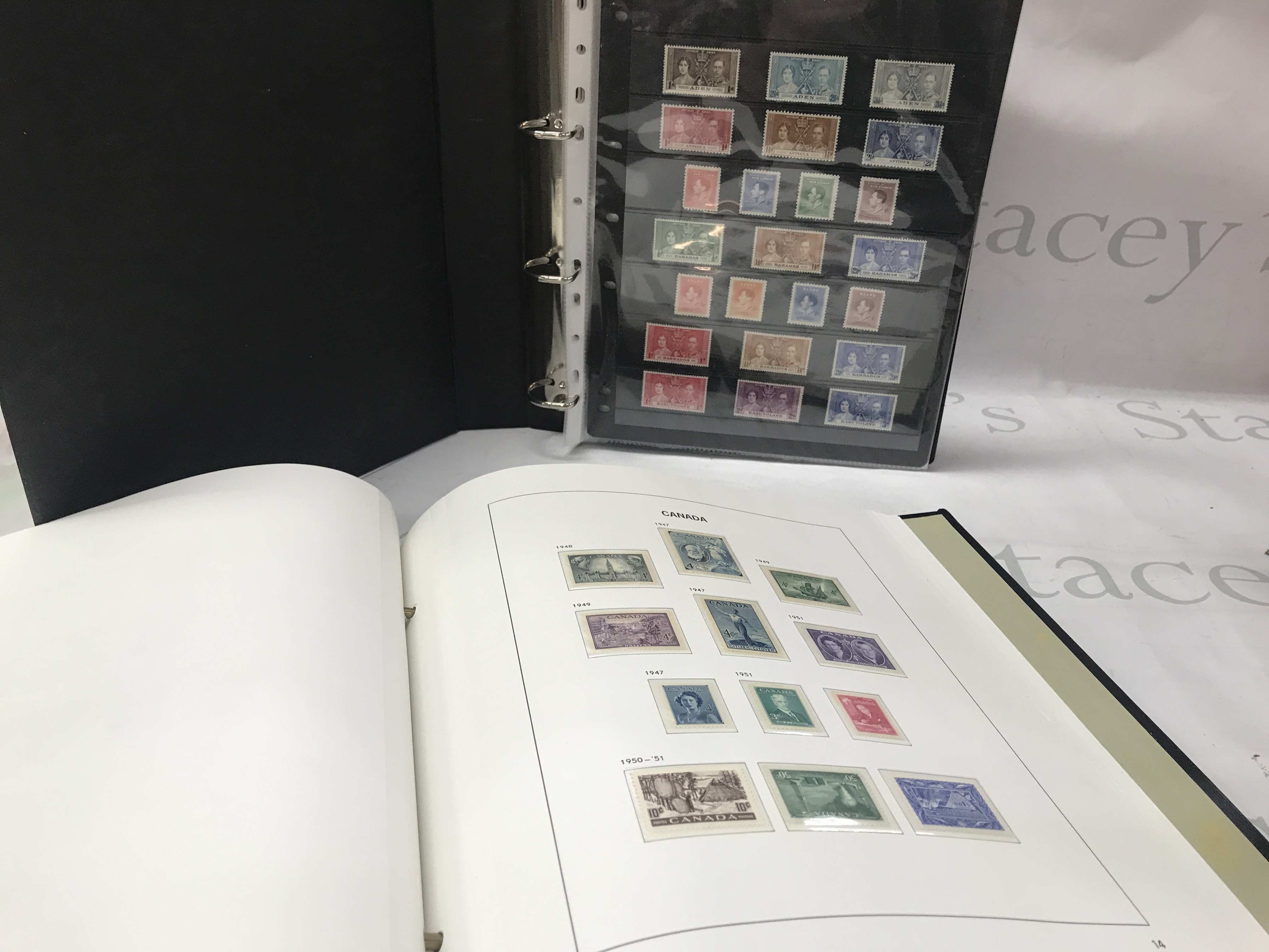 Four stamp albums containing British , Canadian and Commonwealth stamps. Mint and used. Postage category C
