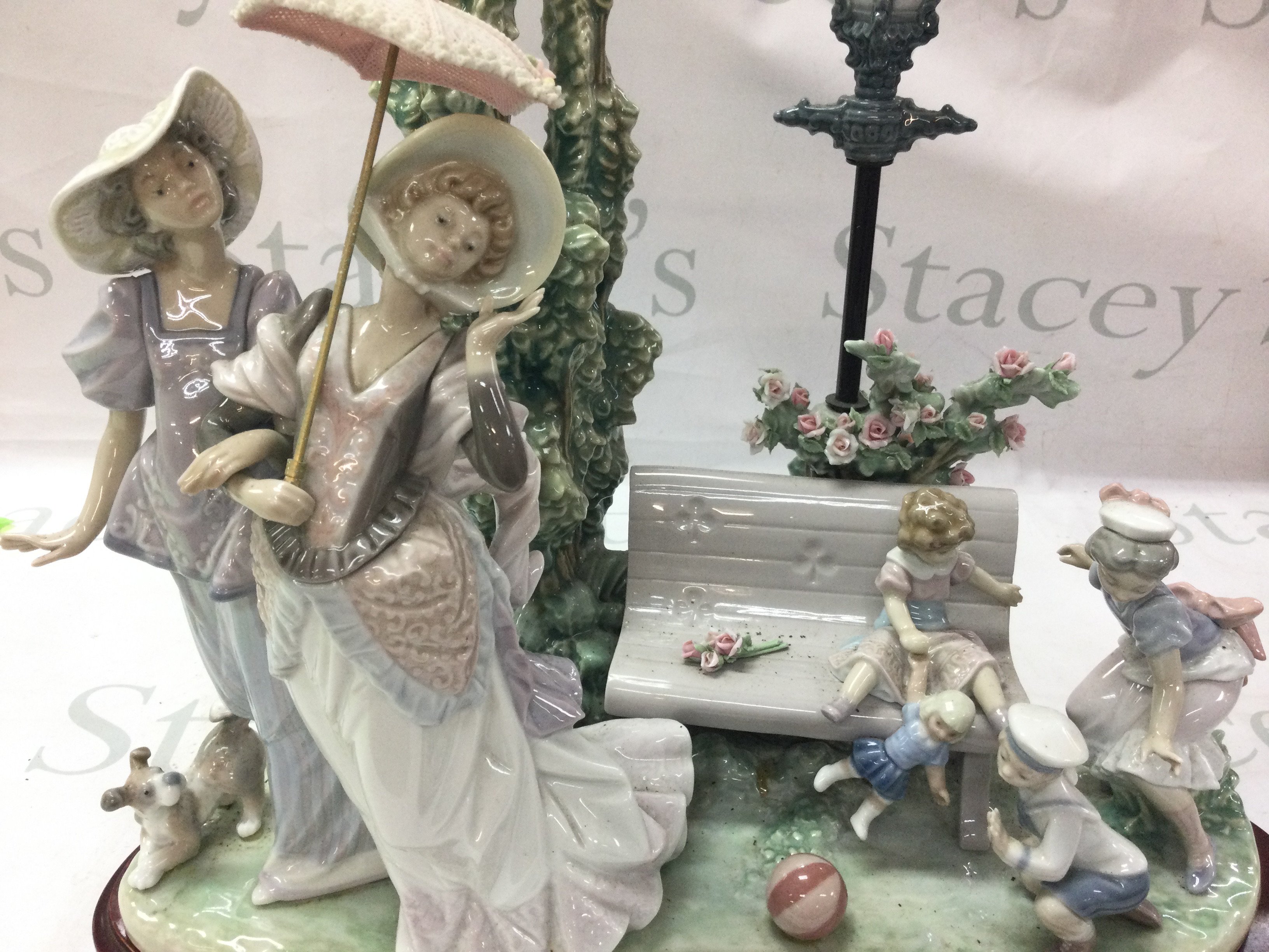 Lladro a Stroll in the Park figure group with stand, no obvious damage or restoration however the dog figure needs re gluing to the base. This lot cannot be posted