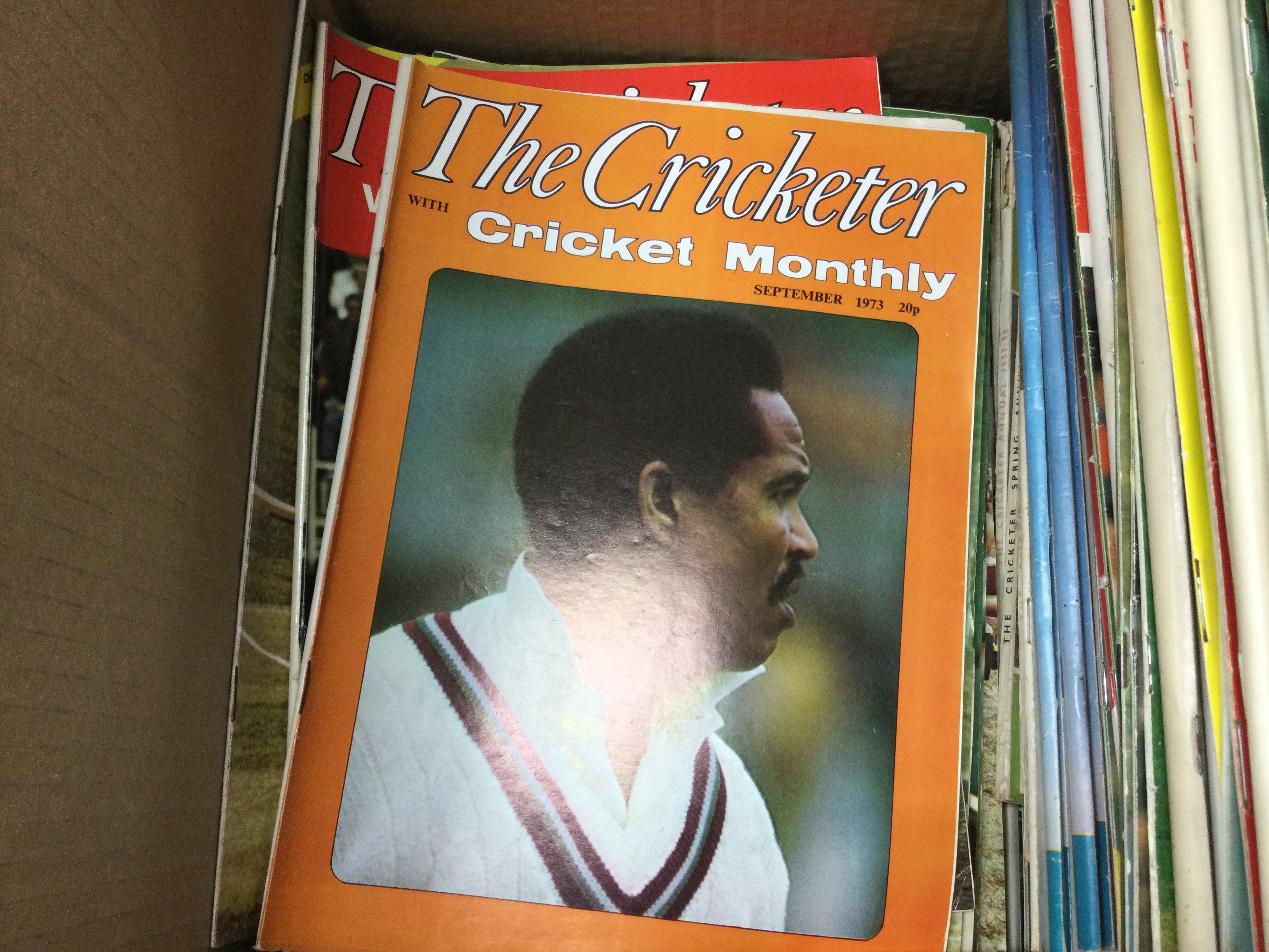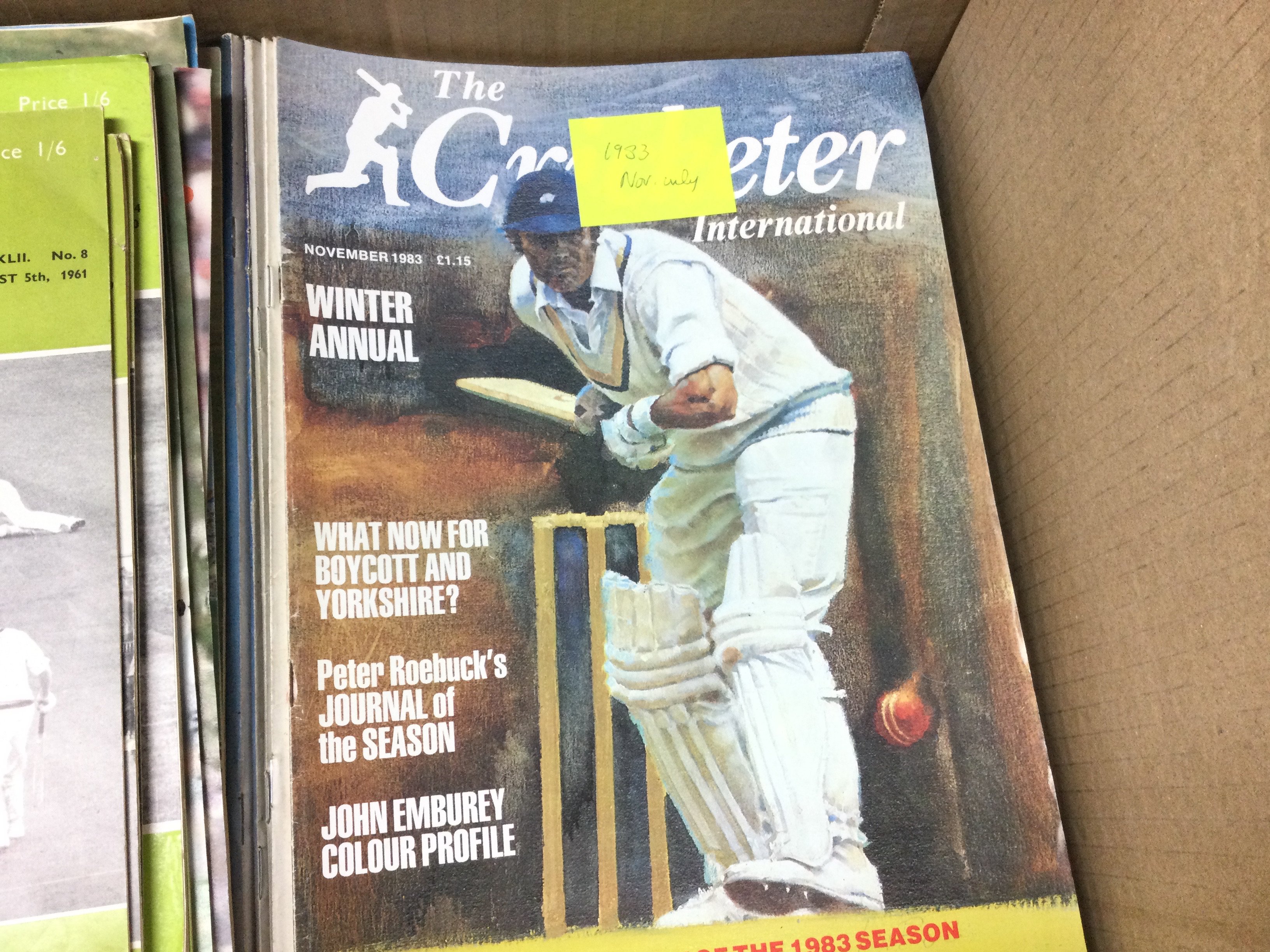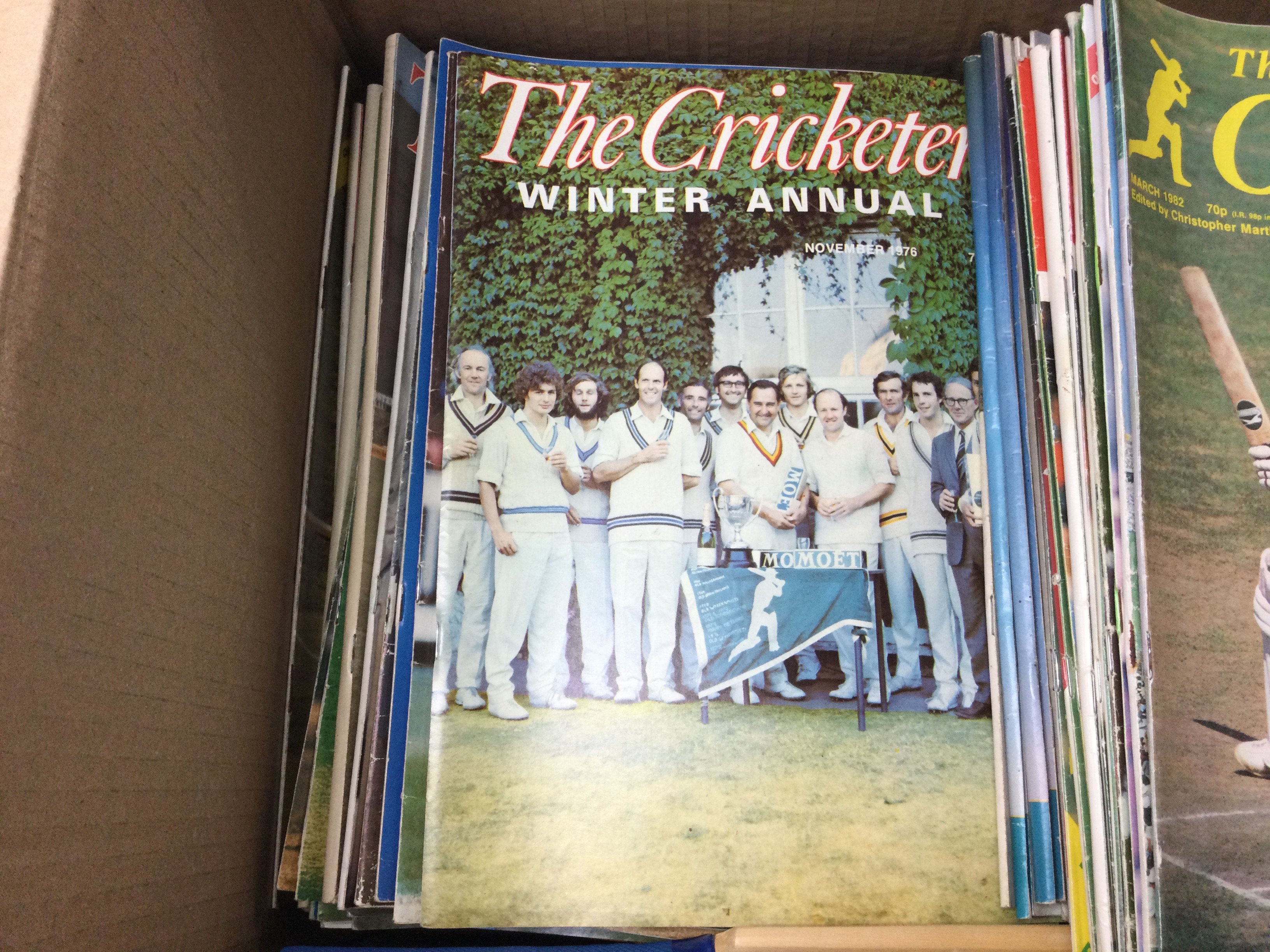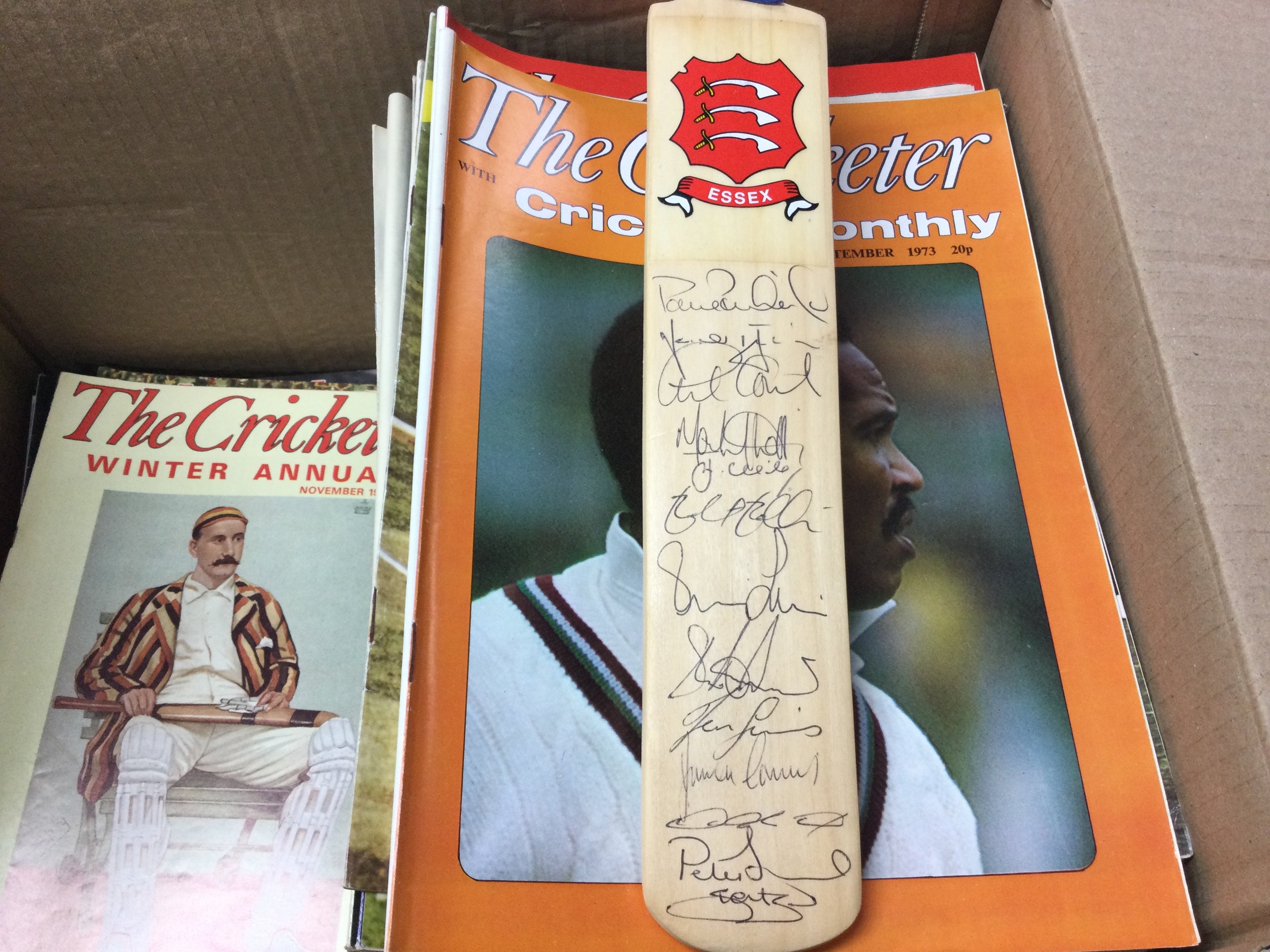 A collection of cricketer magazines from 1960 70s and 80s and an Essex signed mini bat. Postage C