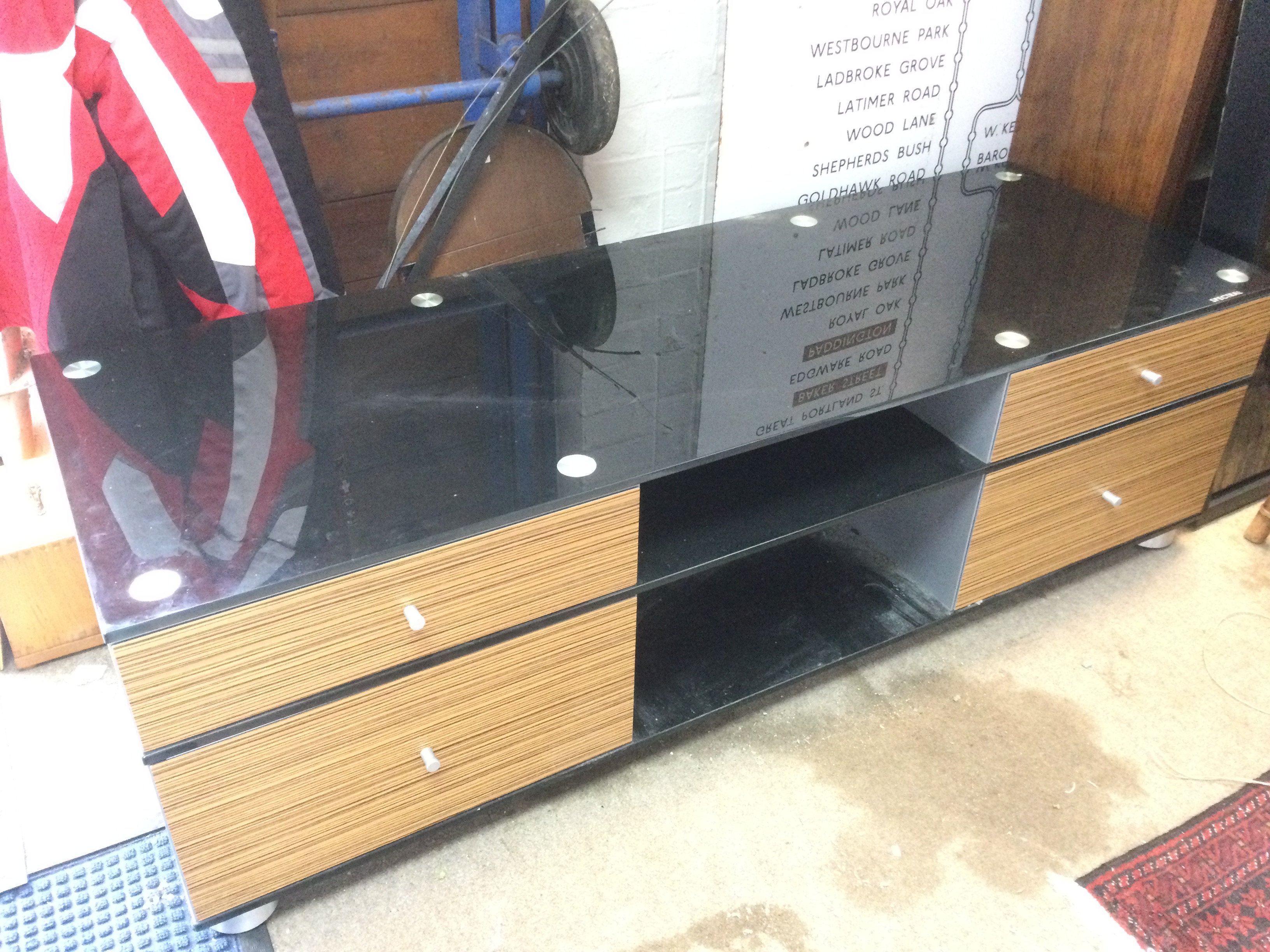 A Spectral AV cabinet in zebrano veneer, approx 150cm x 52cm x 45cm. Shipping category D.