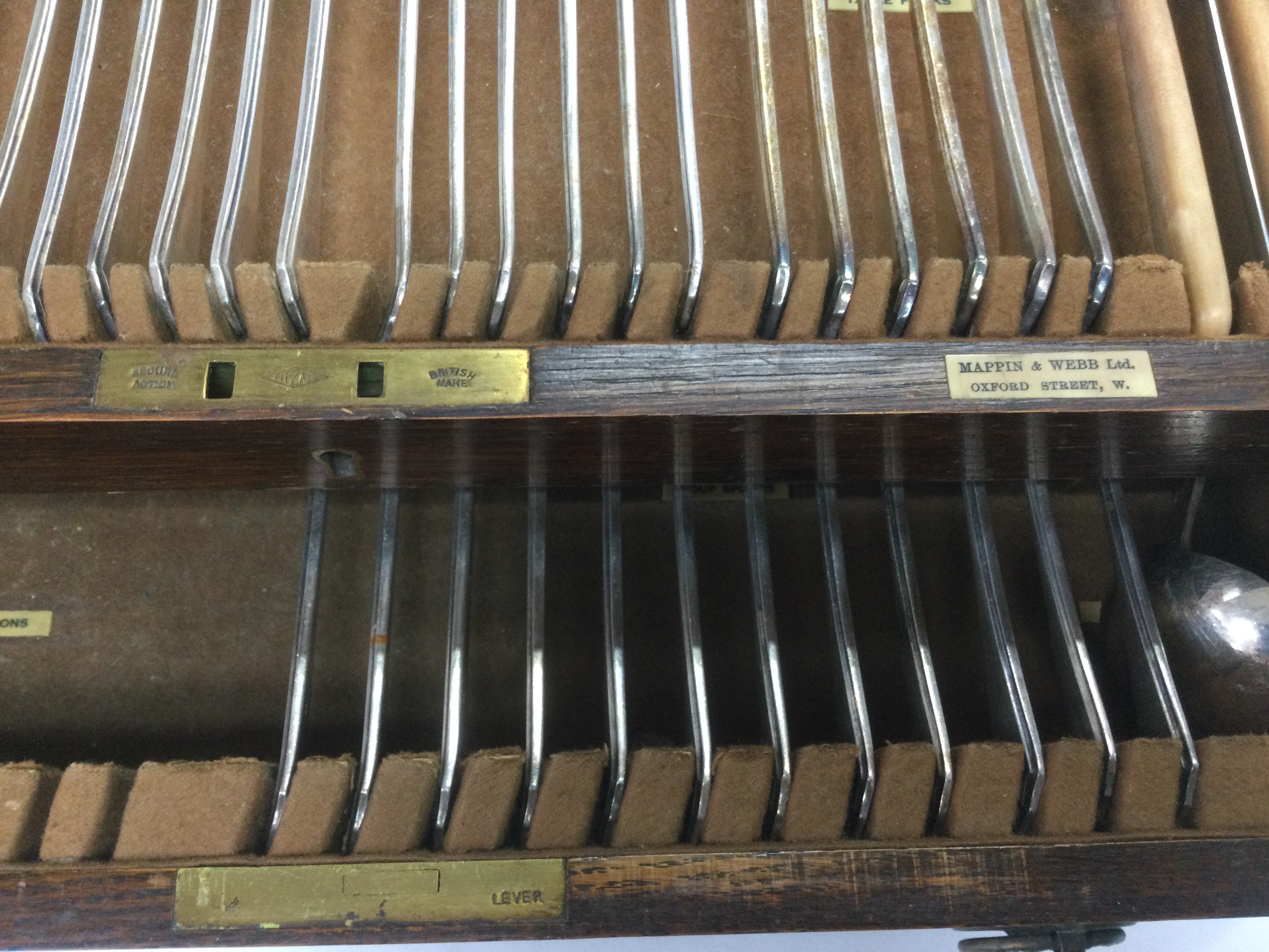 A circa 1930s oak cased Mappin & Webb cutlery set. Shipping category D.