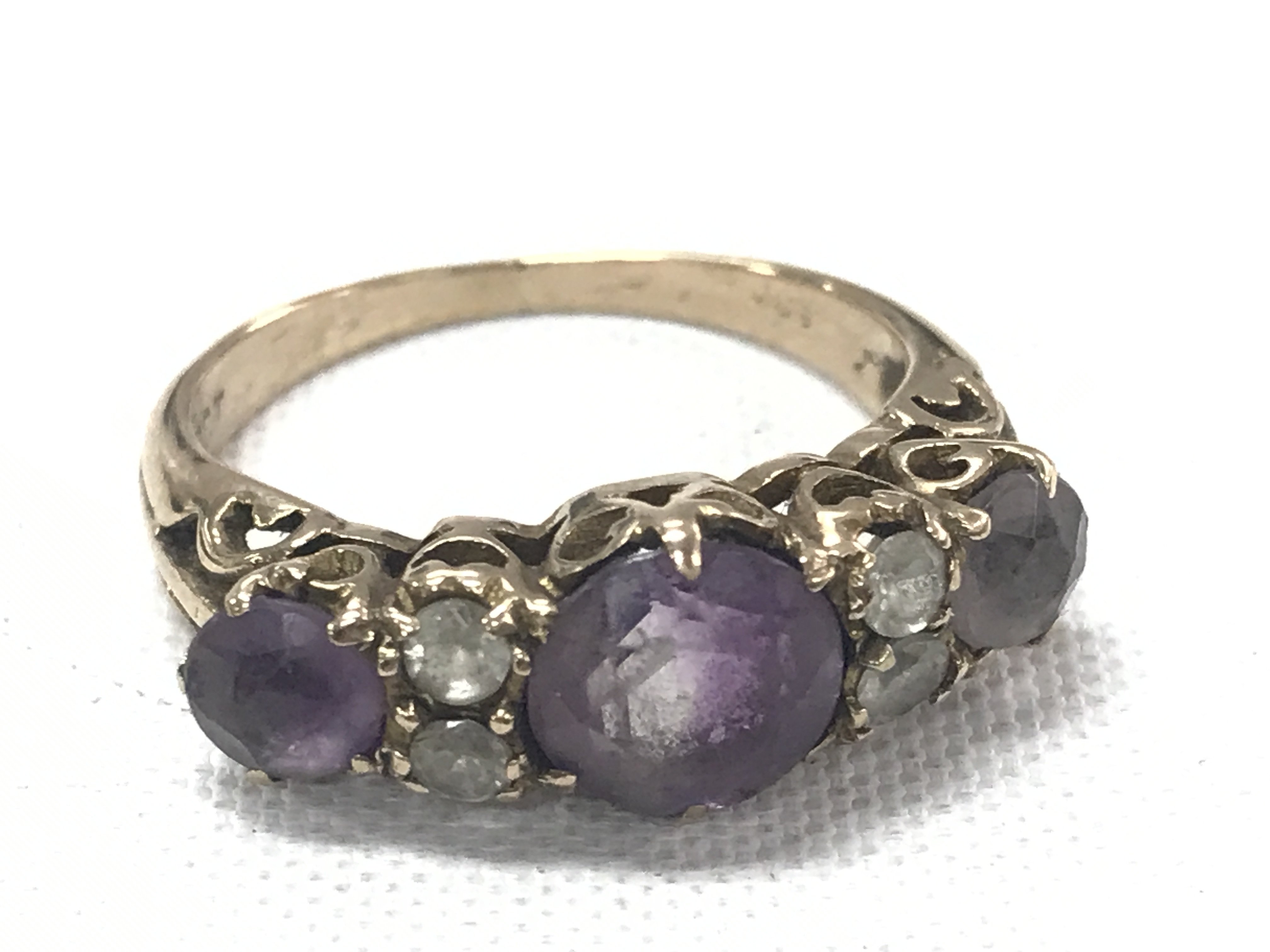 A 9ct gold amethyst and diamond ring , size N ,3.5g total weight. Postage category A
