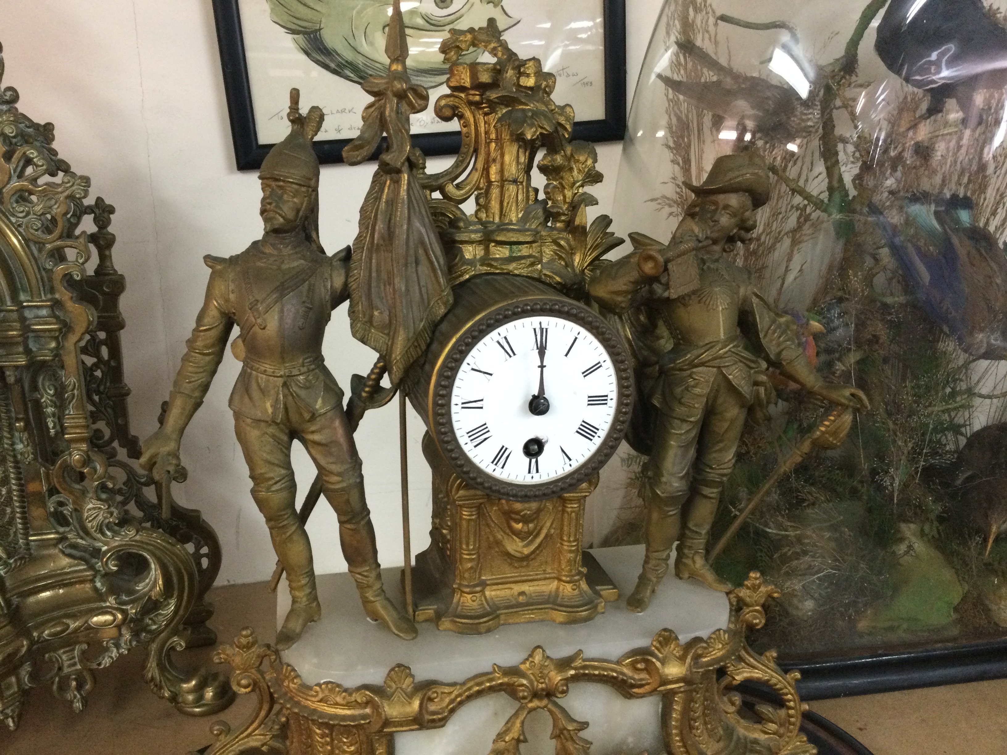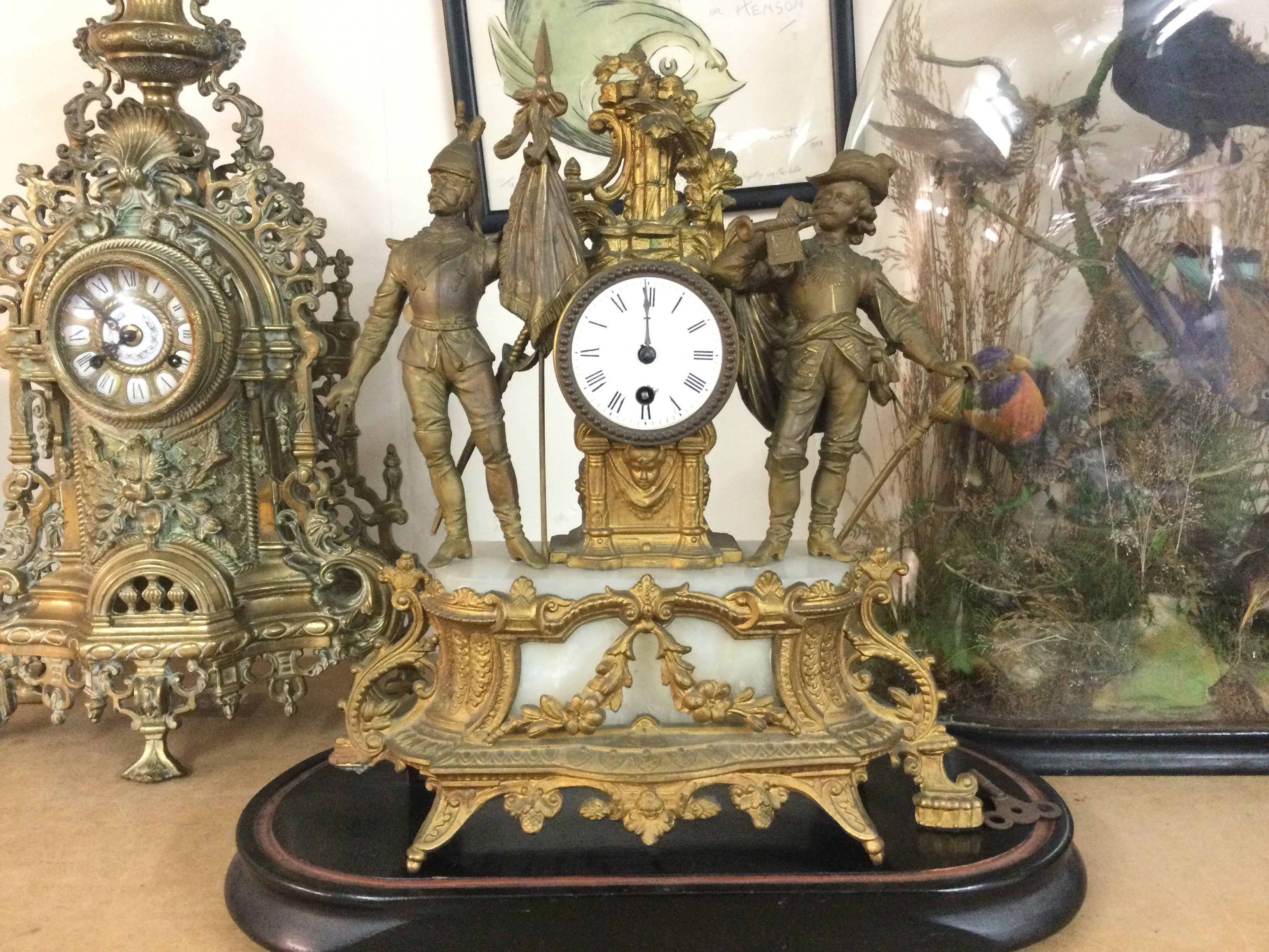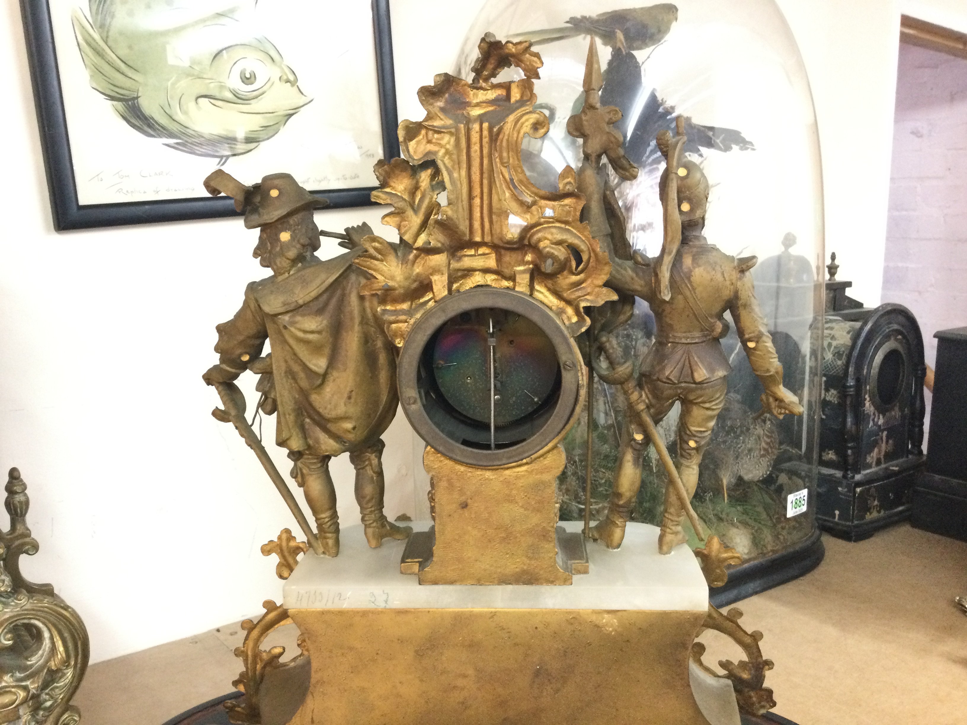 A French splitter clock without glass dome. 49cm tall by 47cm wide. Postage D