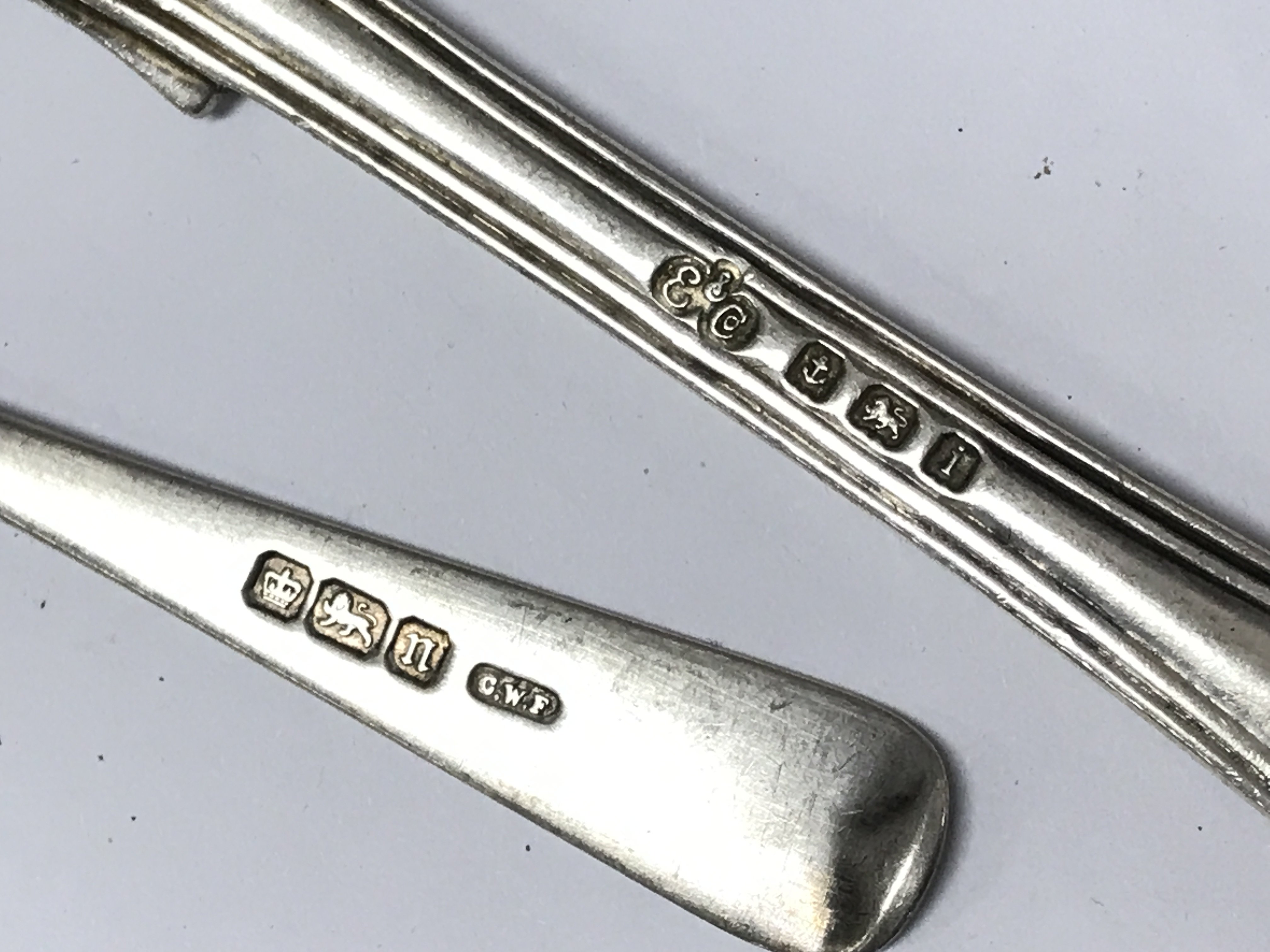 A collection of silver hallmarked spoons, dish, pin holder etc . Postage category B