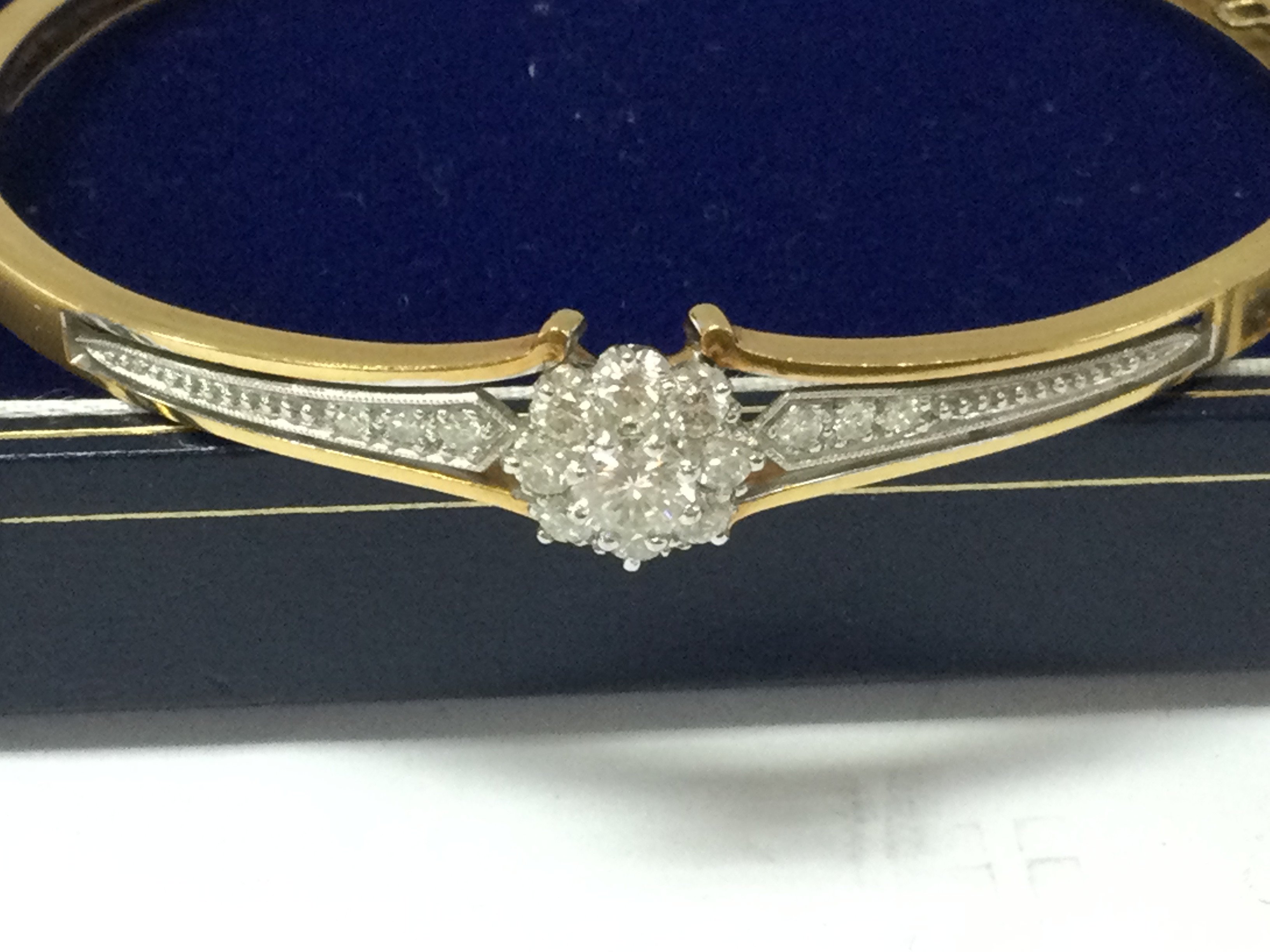 An 18ct gold Edwardian diamond bangle. 18.71g and approximately 6.5cm diameter. Postage B