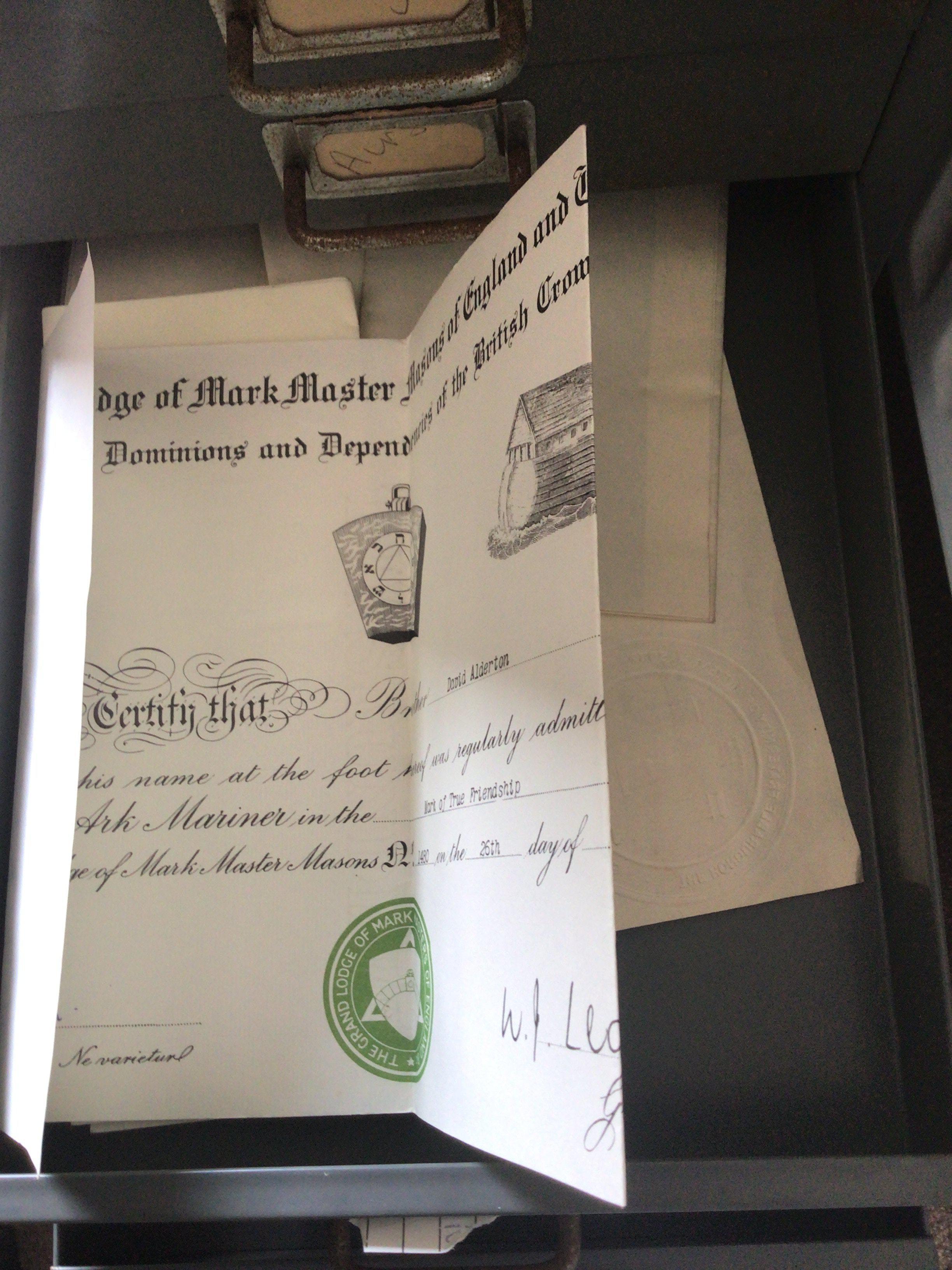 A metal filing cabinet containing Masonic literature.- NO RESERVE
