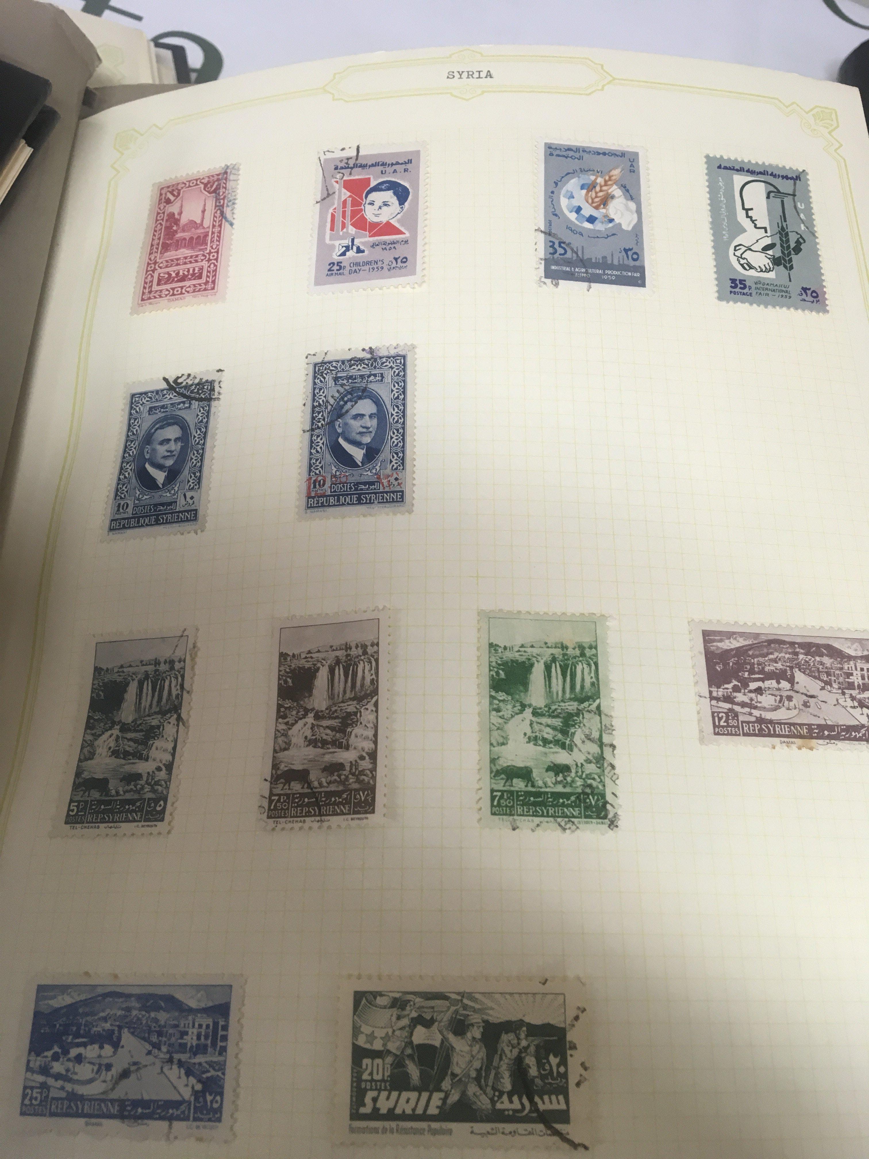 A collection of eight albums containing world stamps Leeward Islands Syria Italy Ivory Coast and America Sweden and others. (8)