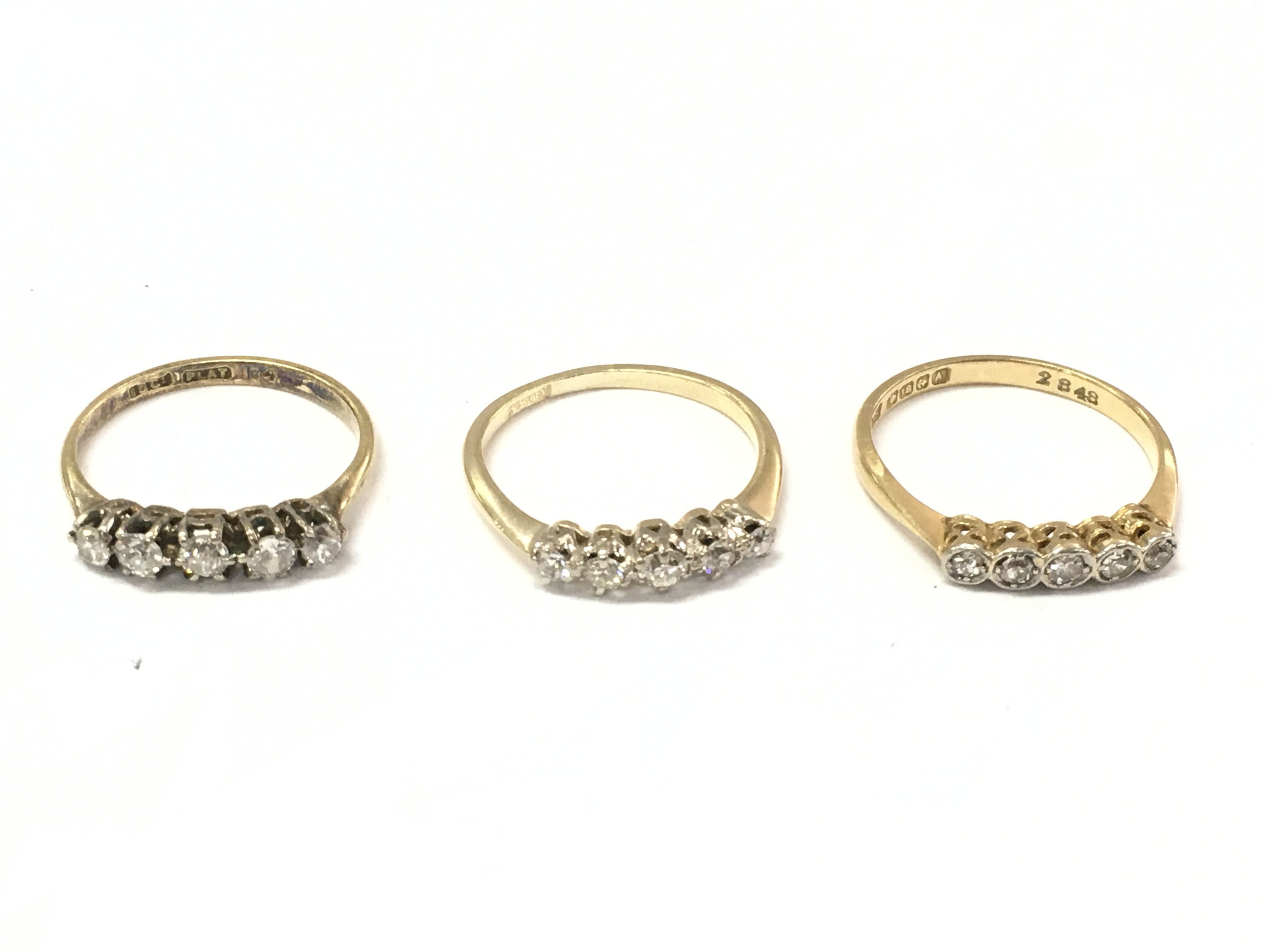 Three 18ct gold 5 stone diamond rings. Sizes K 1/2 L and M. 5.8g Postage A