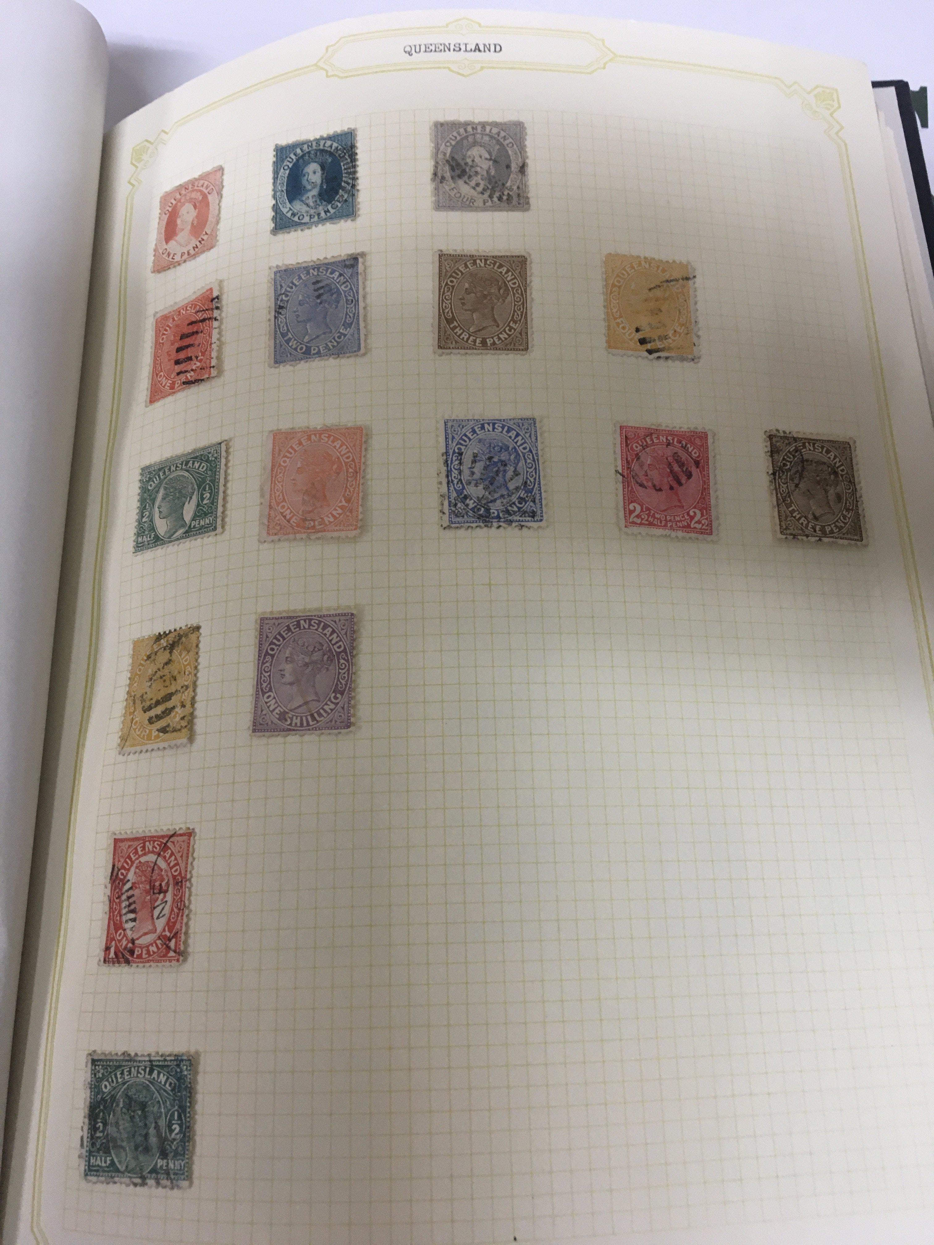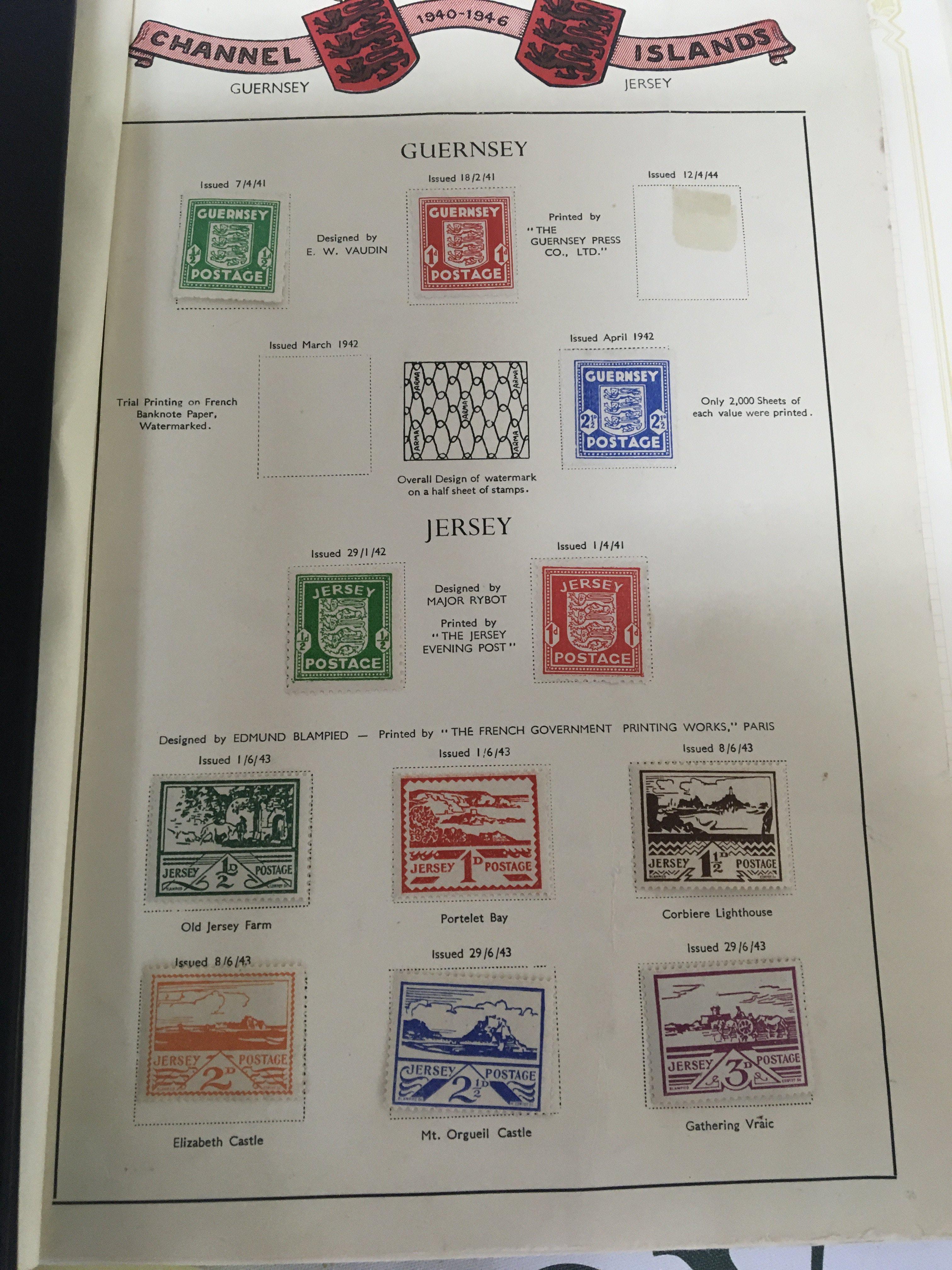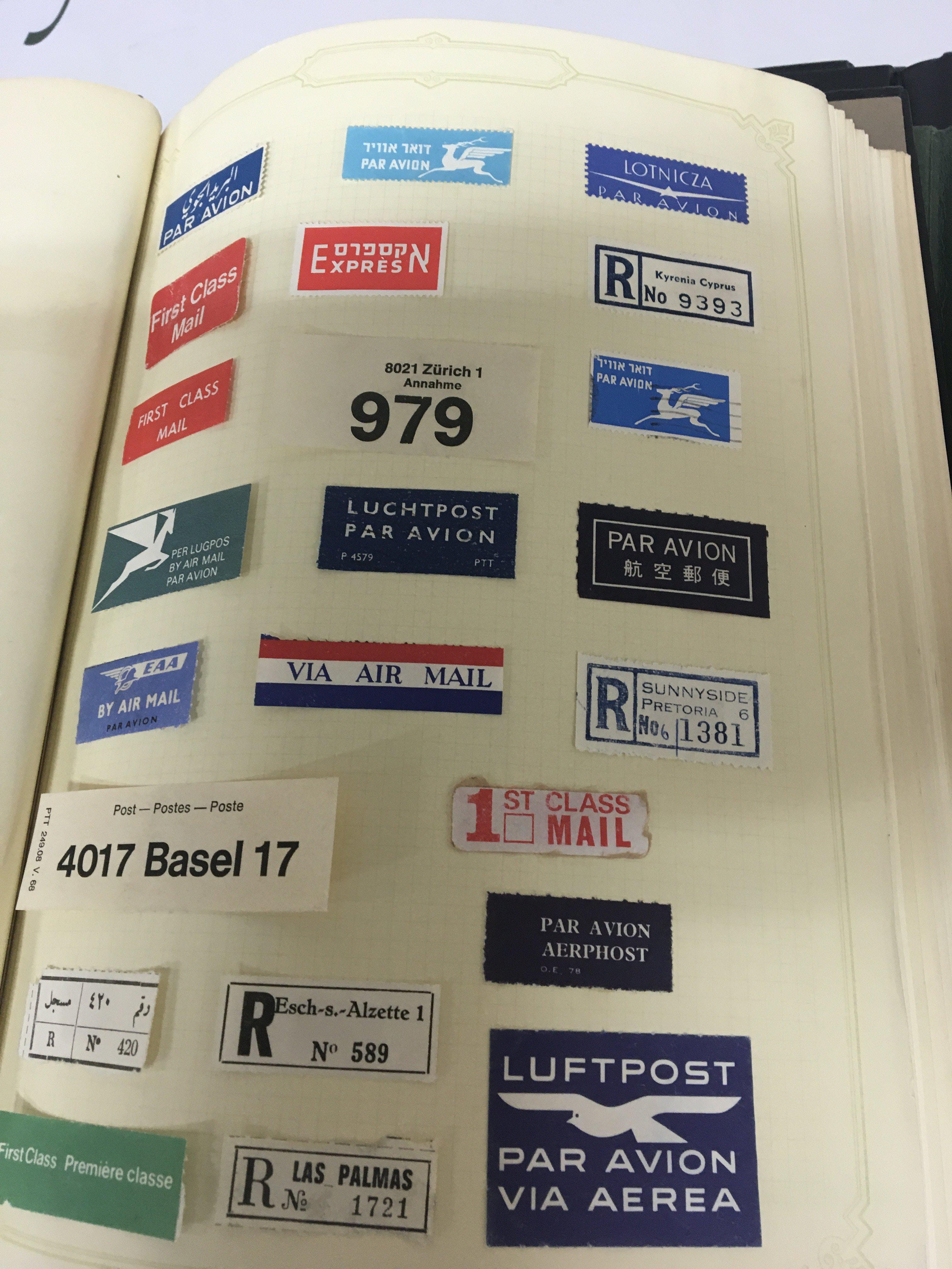 A collection eight of world stamp albums including some 19th century stamps Queensland world Express and Airmail postal labels Chanel Island stamps and others (8)
