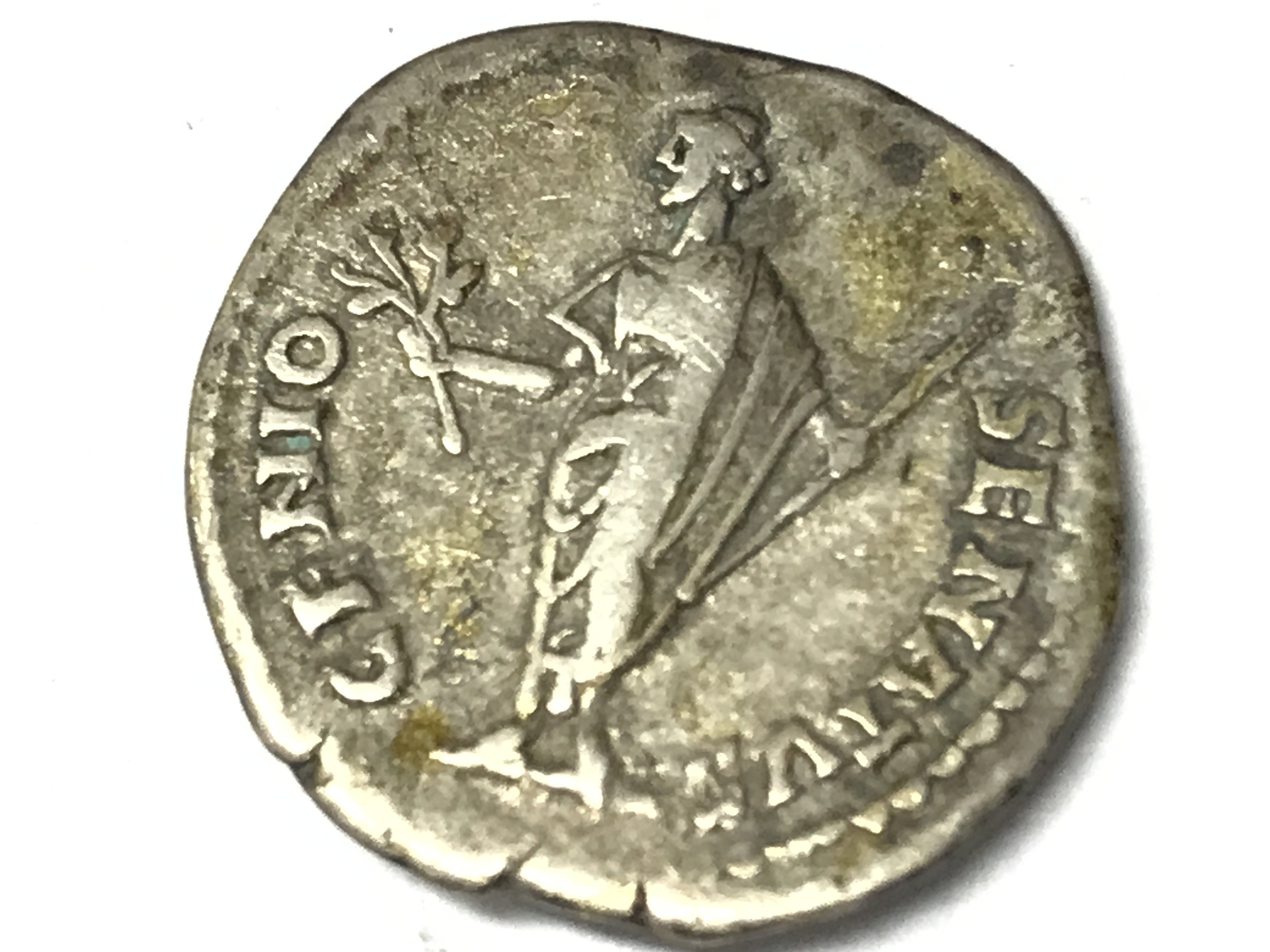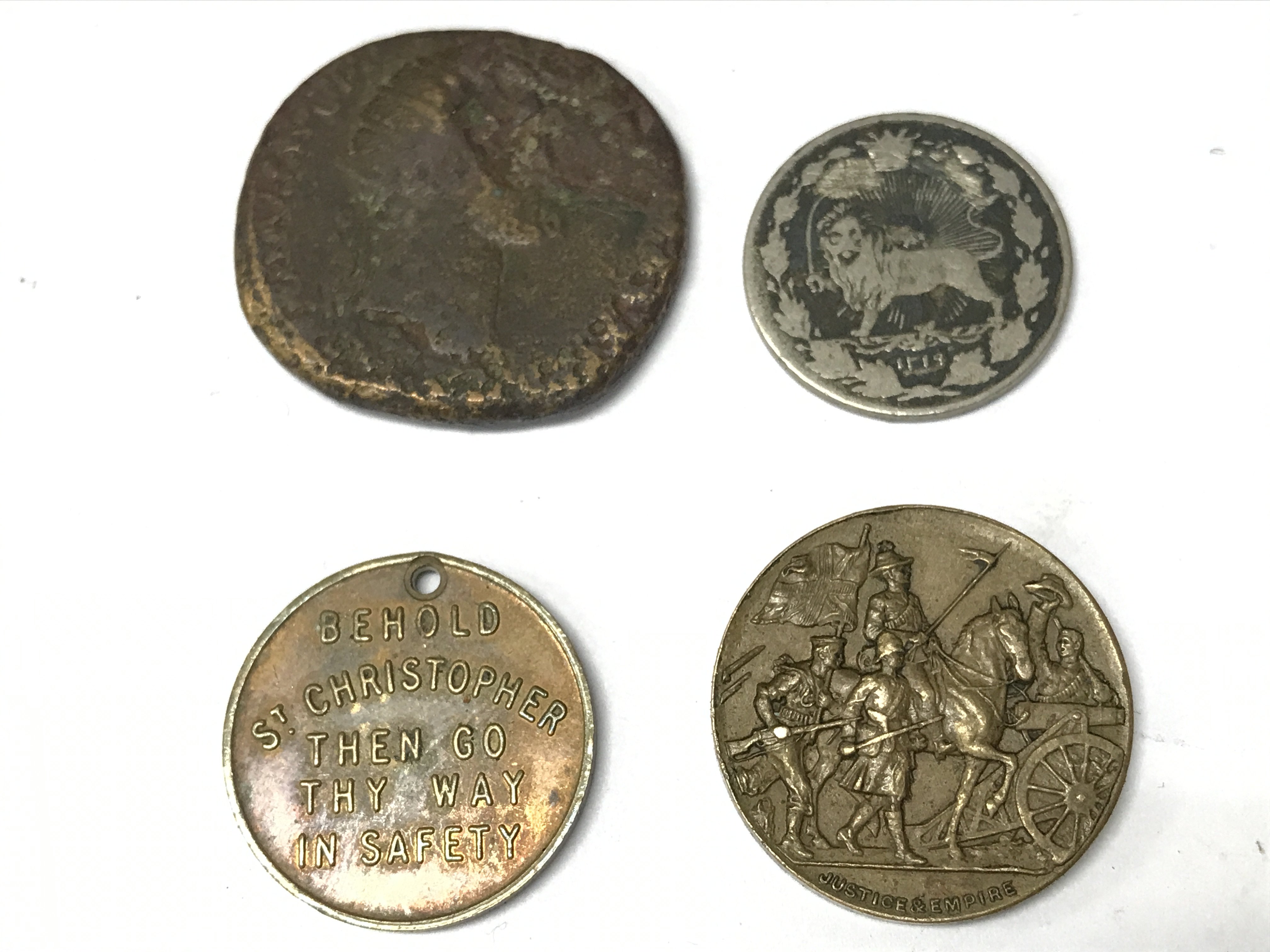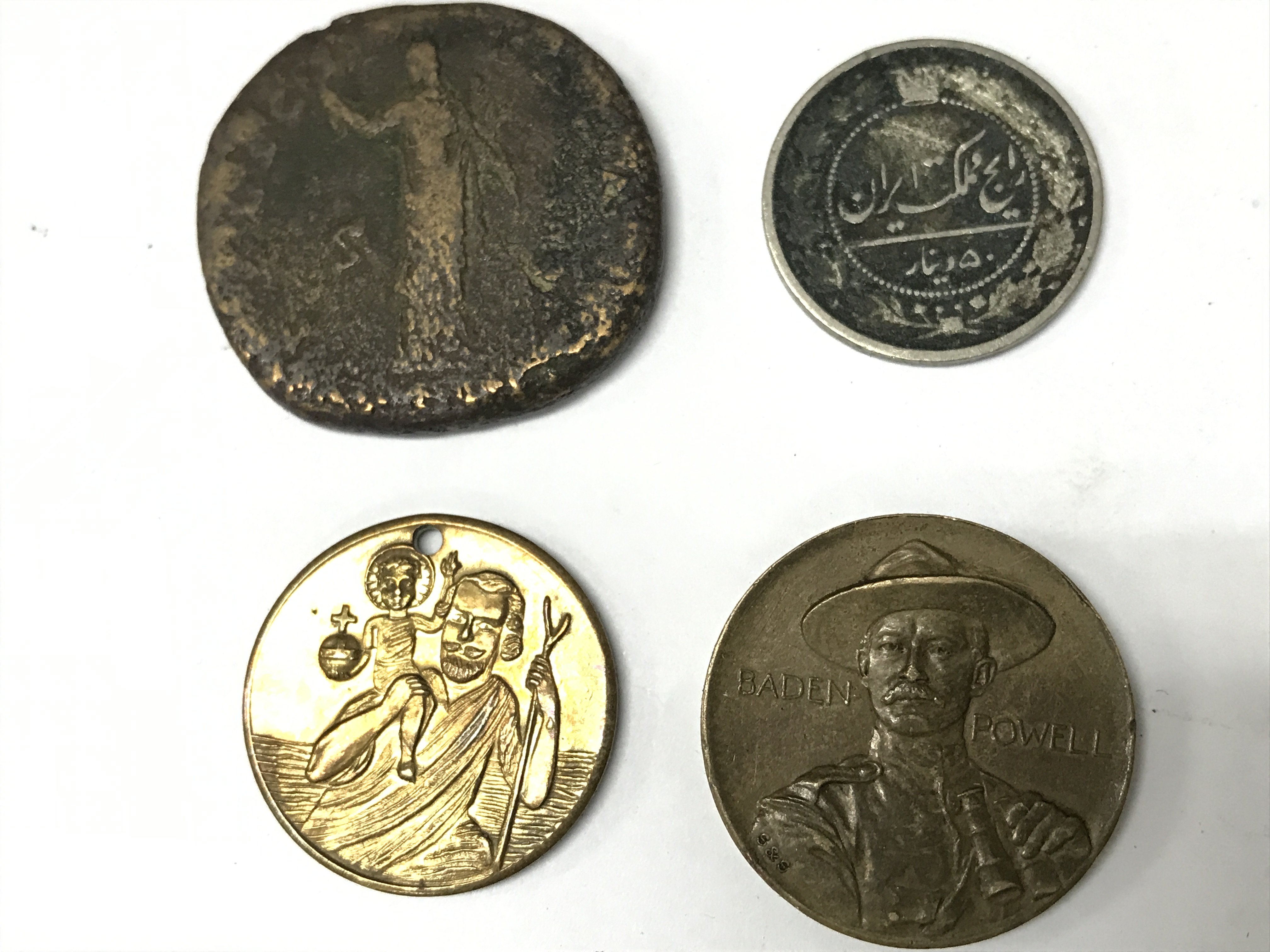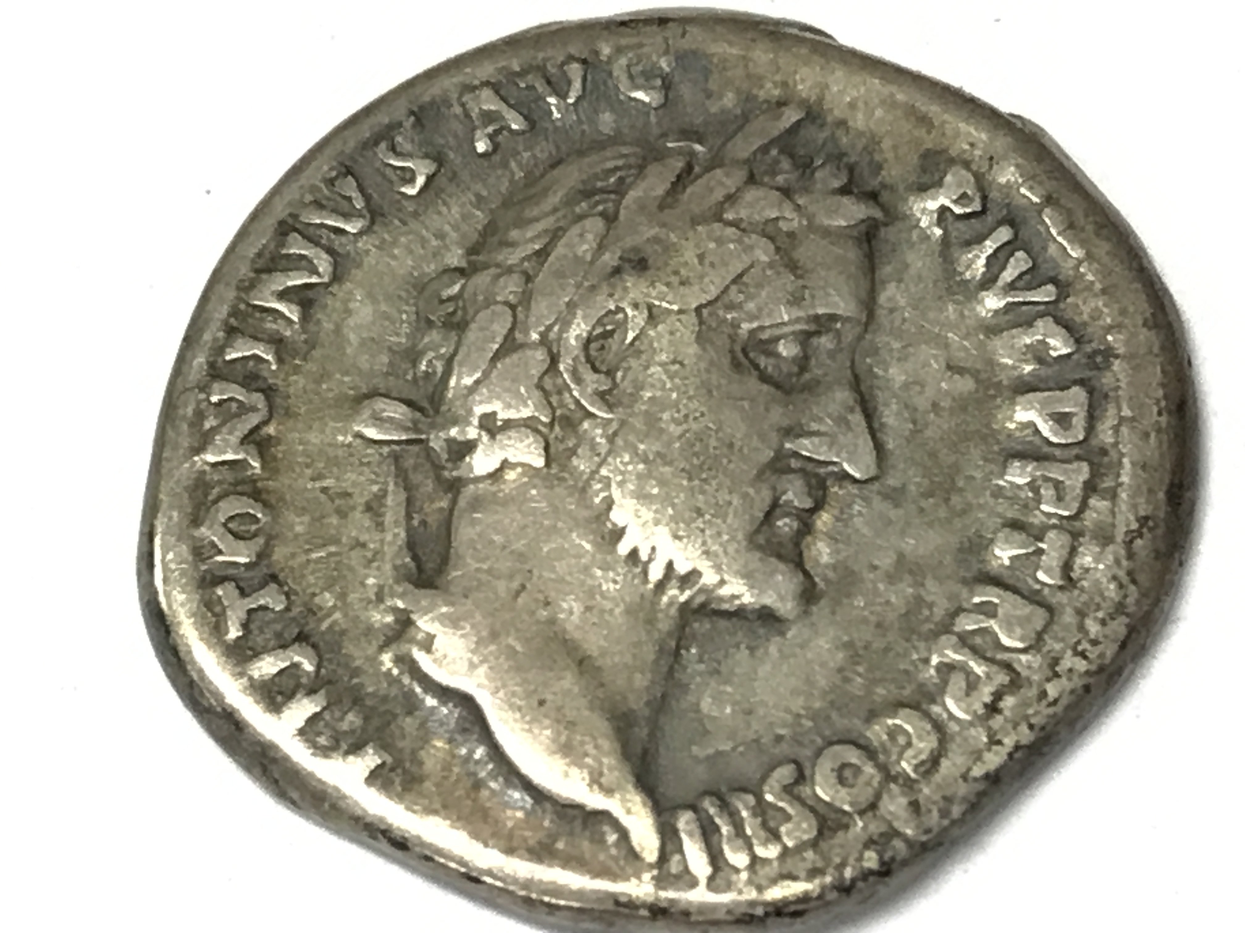 A small collection of coins including Roman Antoninus Pius 138-161 A.D coin. Postage category A