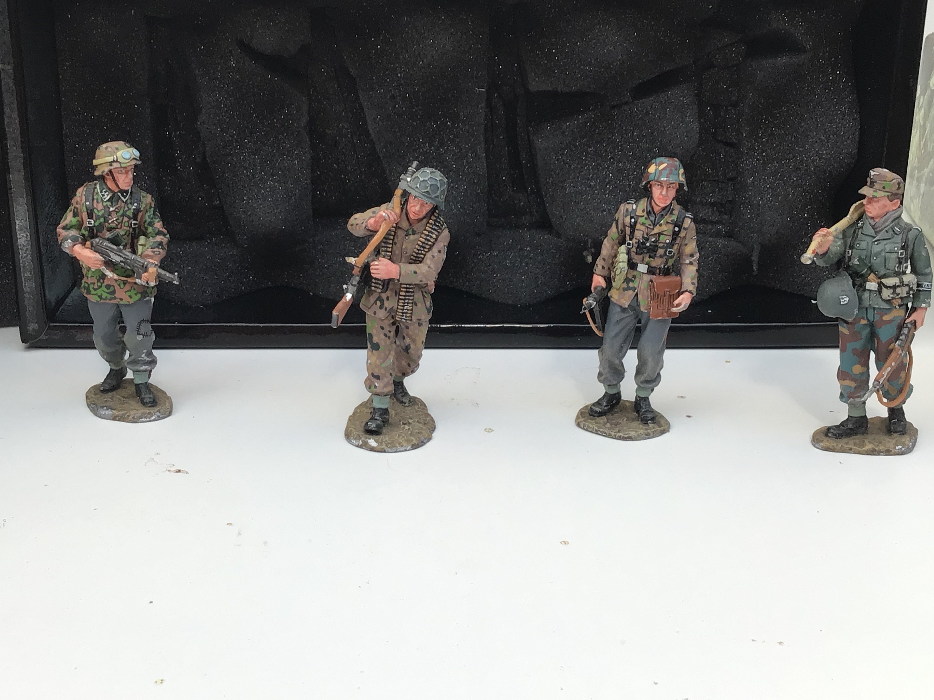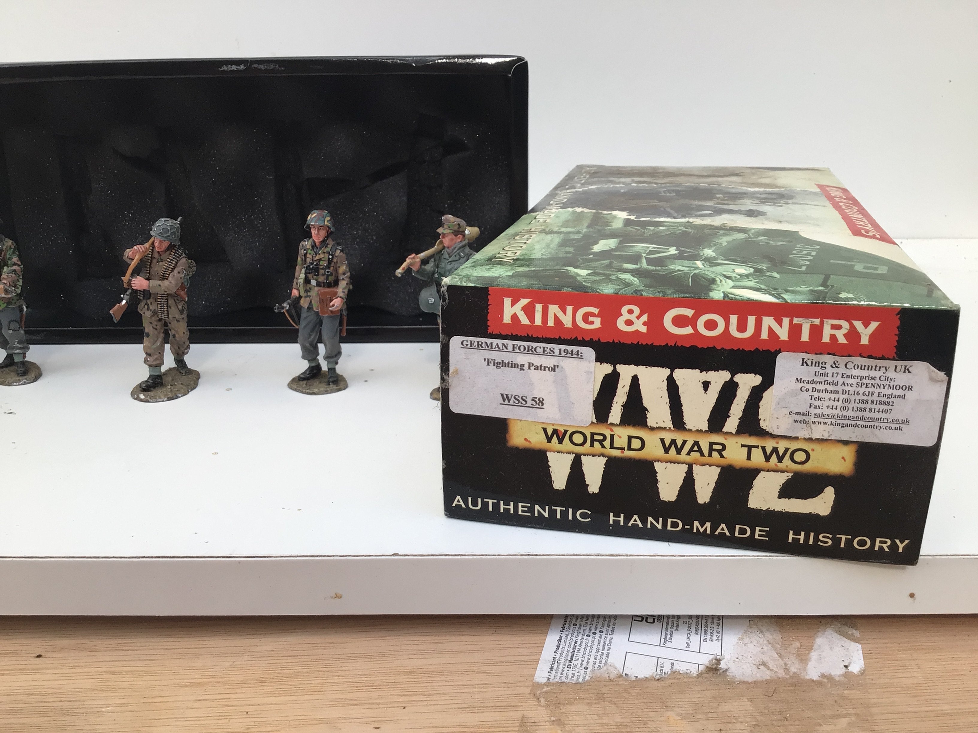 A boxed King and Country 4 figure set of miniature metal models featuring German Forces 1944 titled Fighting Patrol. No WSS58. No reserve.