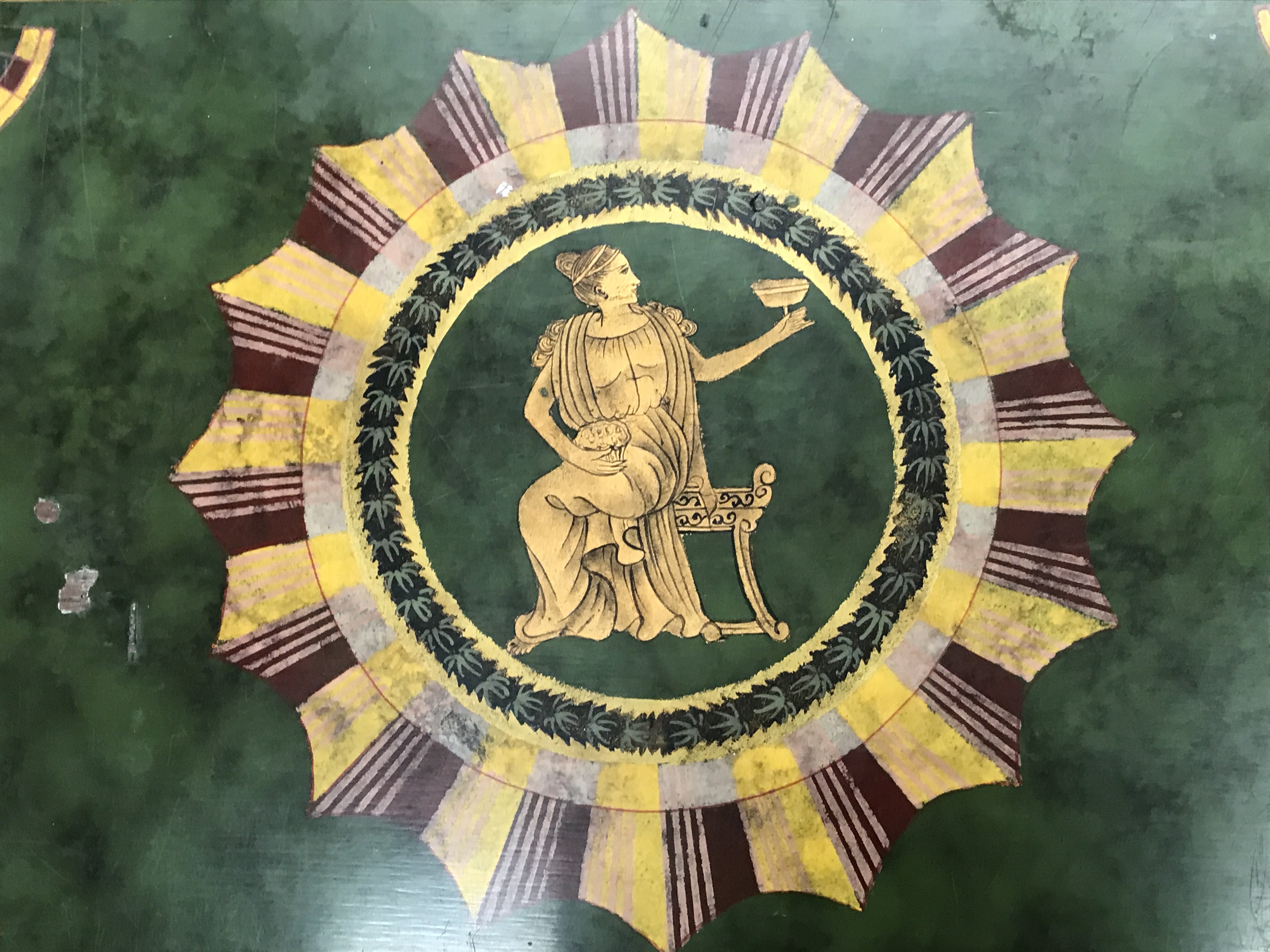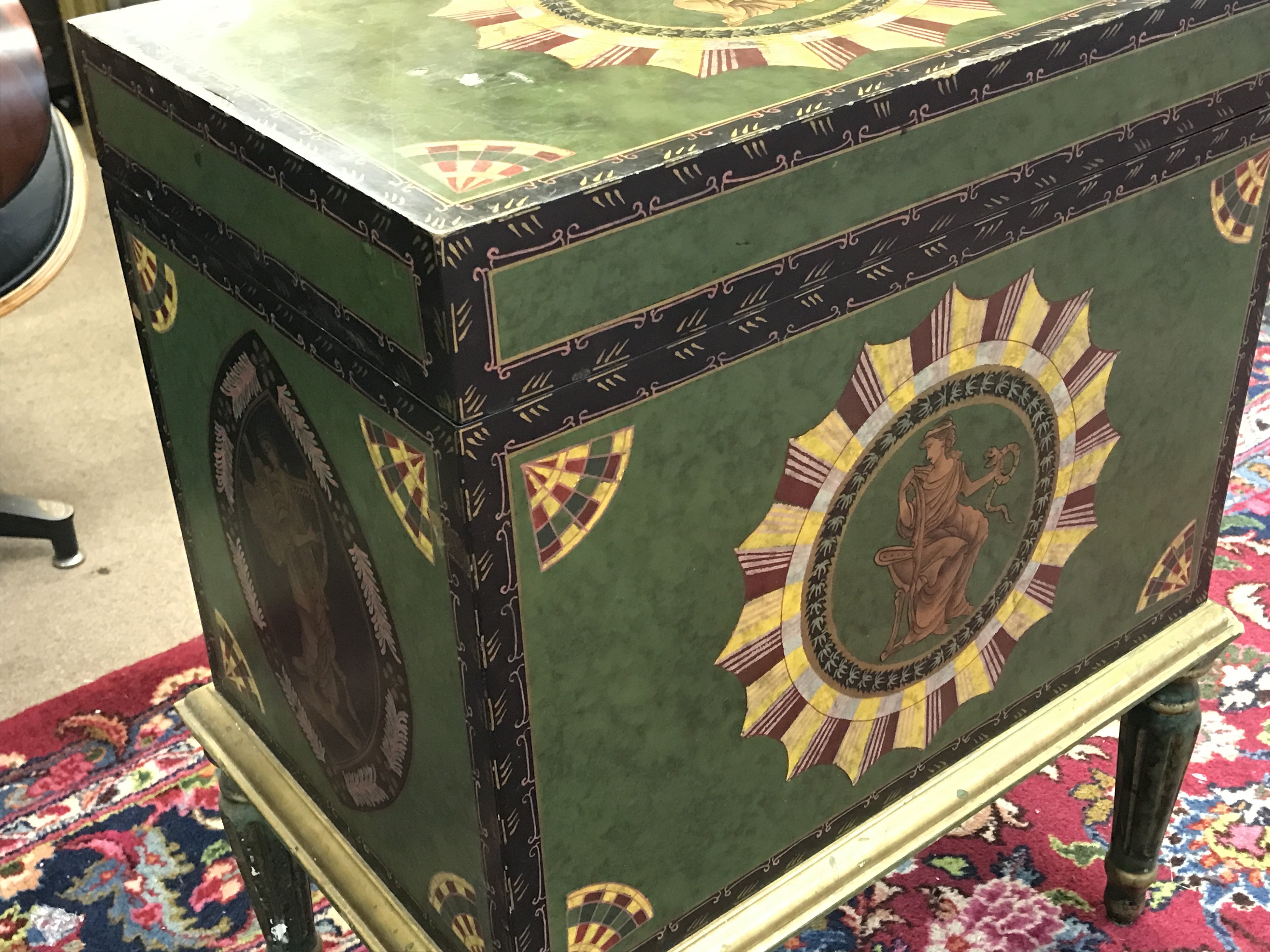 A trunk on stand with neoclassical design from the Stringfellows Club, Hippodrome VIP Lounge. 62cm tall 47cm wide.