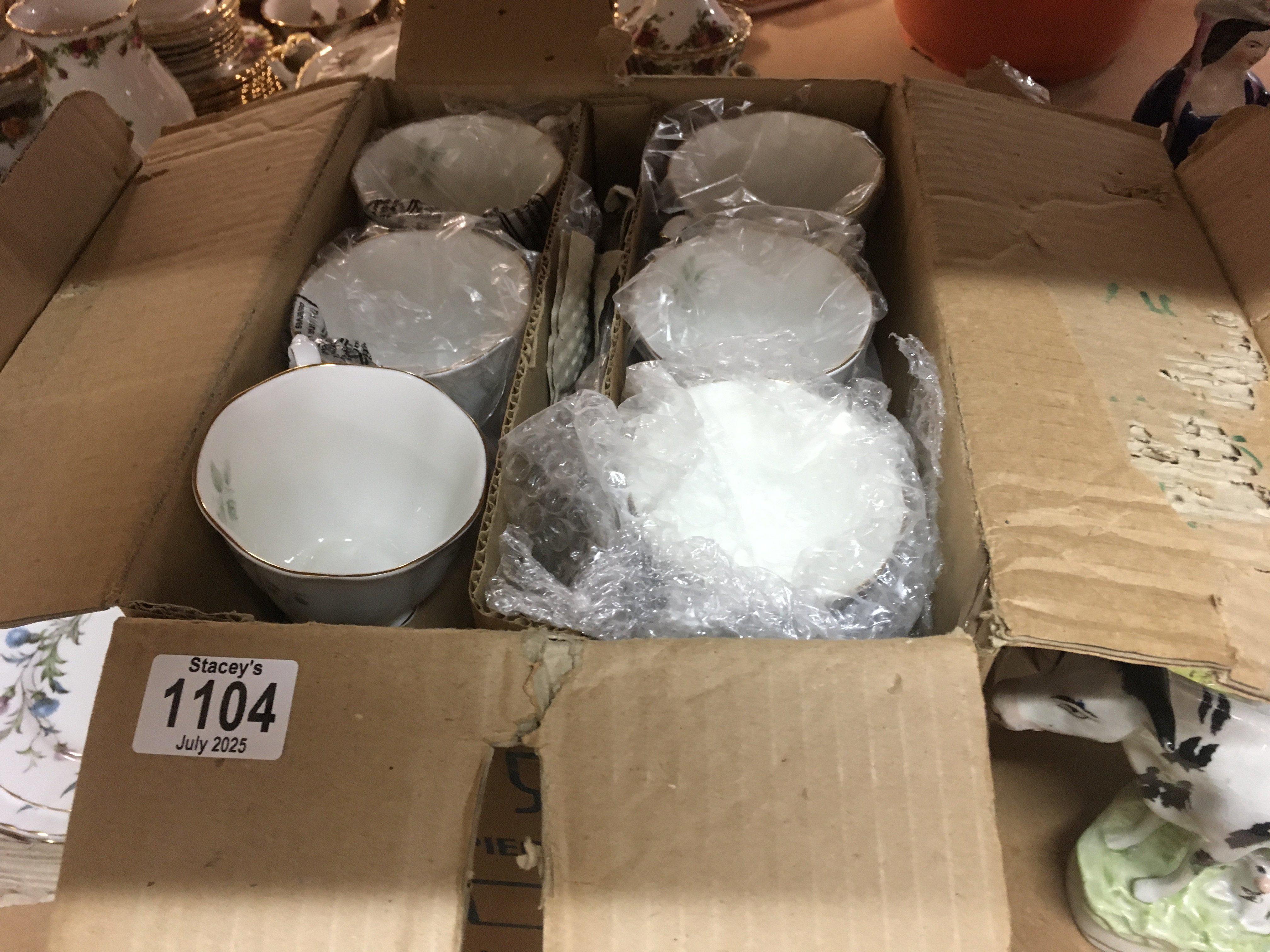 A Boxed Royal Albert Haworth tea set . Six cups saucers side plates ,