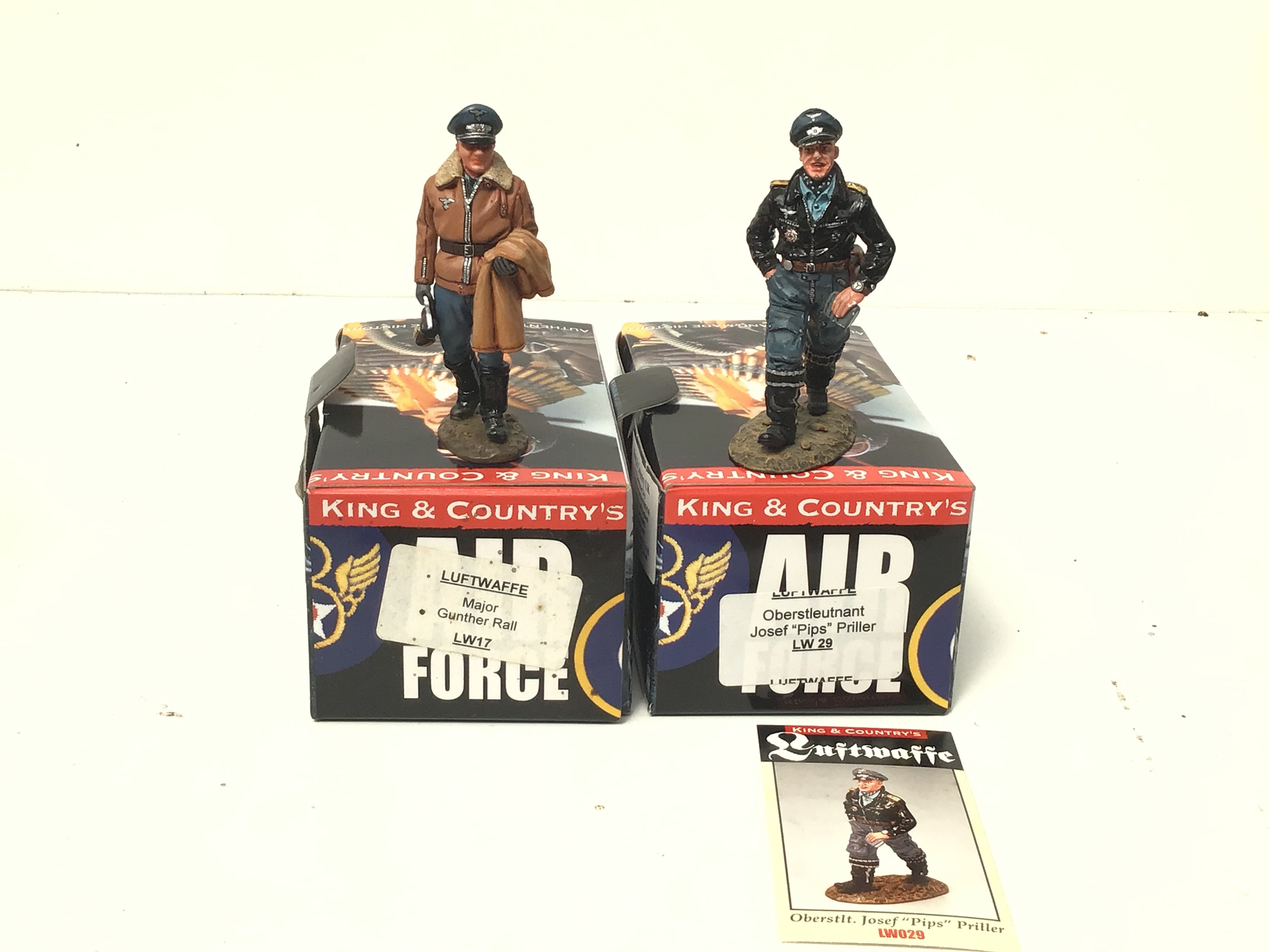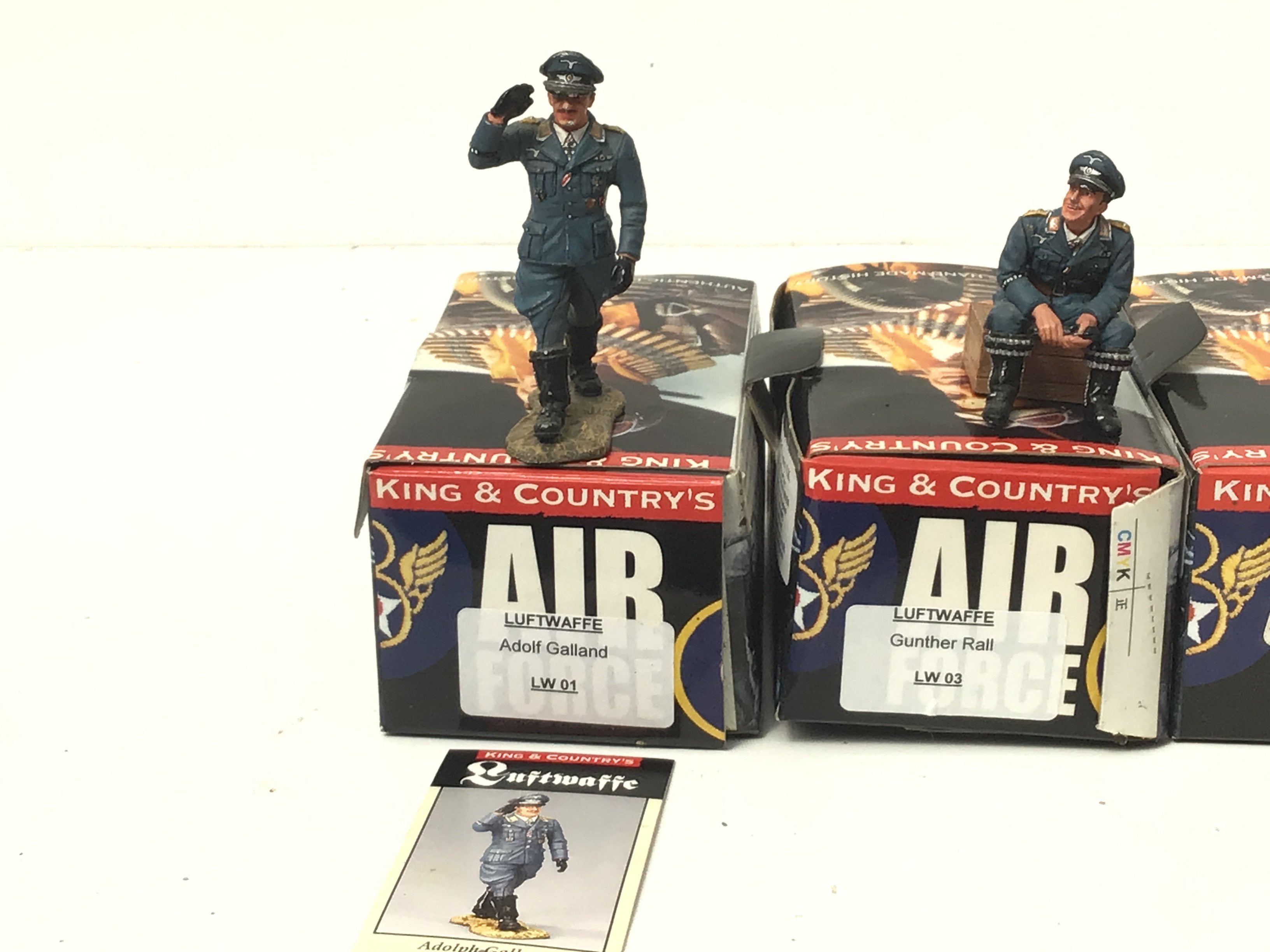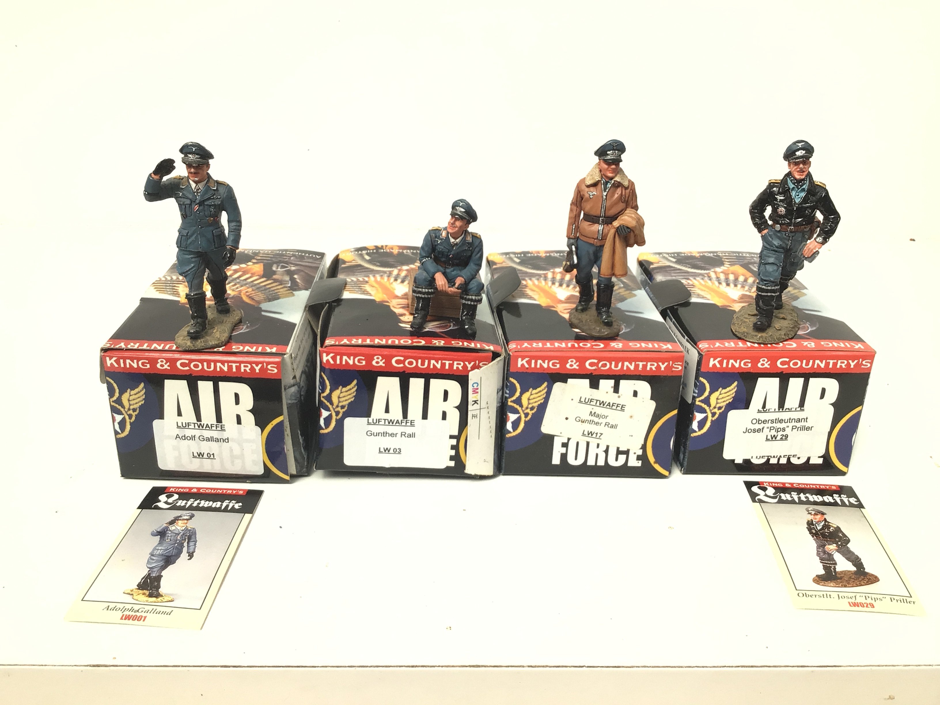 4 x boxed King and Country Minature Military models featuring the Luftwaffe. Including LW01 Adolf Galland..LW03 Gunther Rall..LW17 Major Gunther Rall..LW29 Oberstlieutnant Josef Pips Priller. No reserve