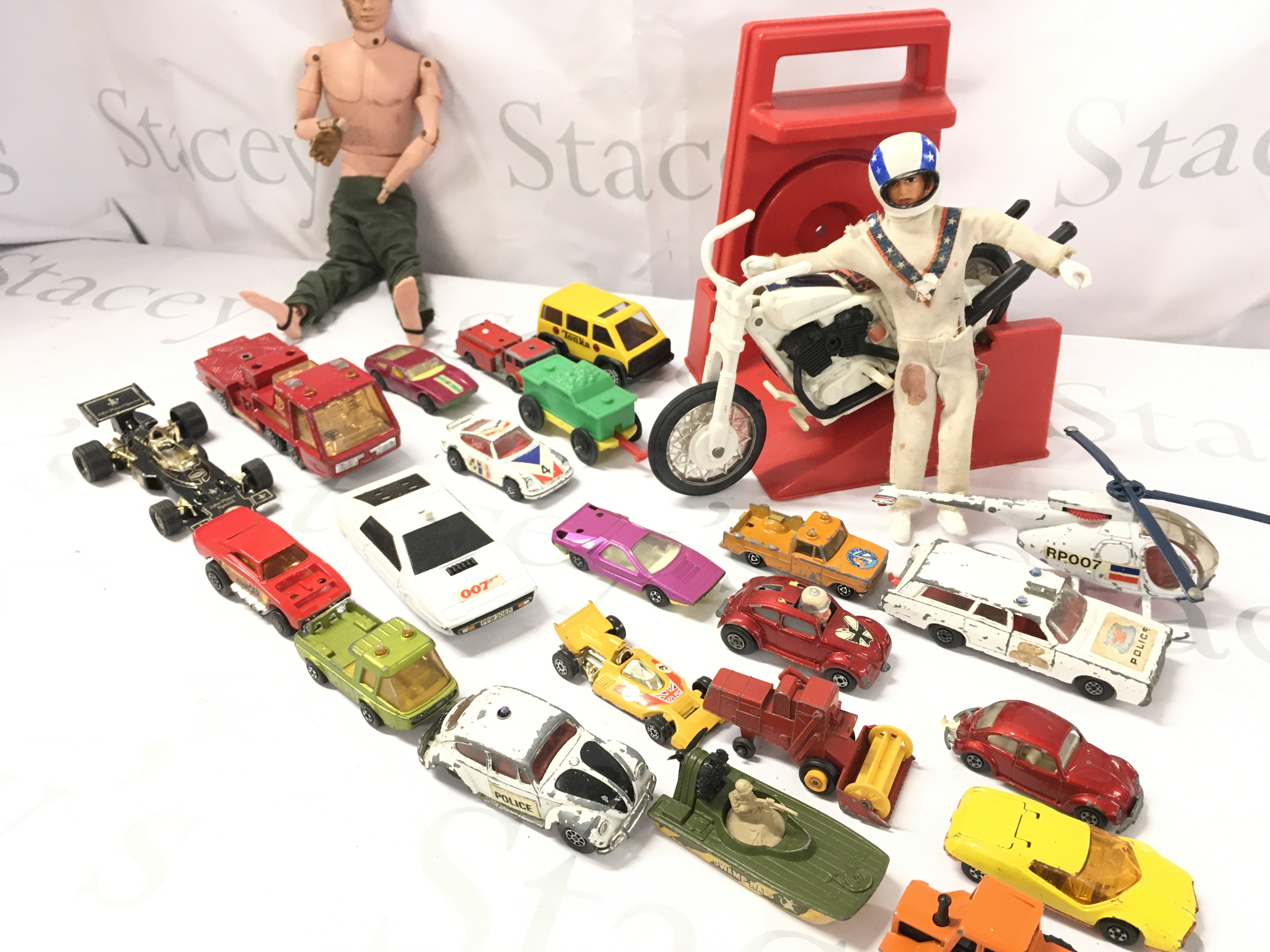 A Collection of Playworn Toys Including Action Man. Evel Knievel and a Collection Of Diecast.