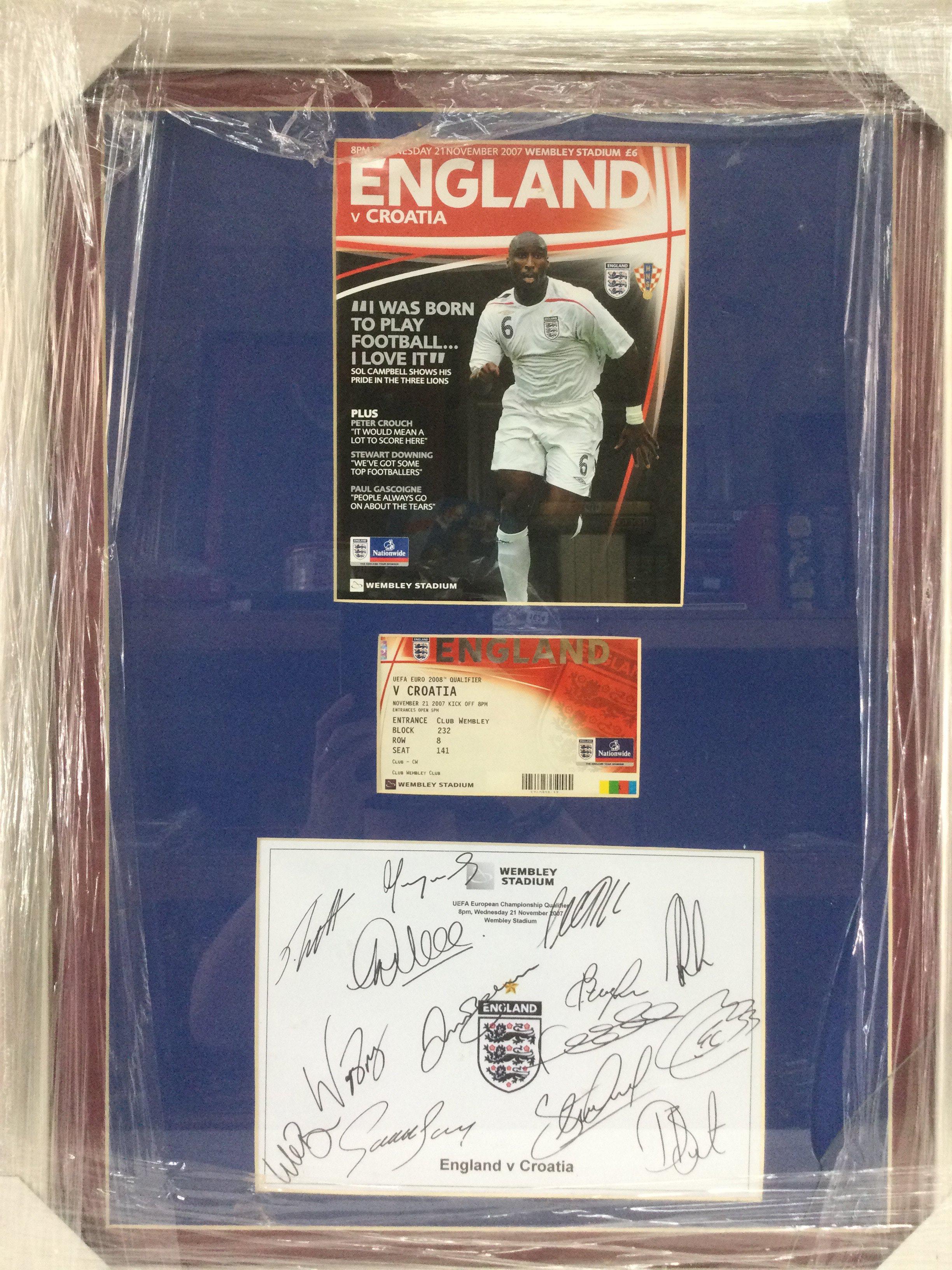 A framed and signed montage of England v Croatia in 2007, a 3-2 loss that eliminated England from progressing to Euro 2008, approx 59cm x 77cm. Shipping category D.