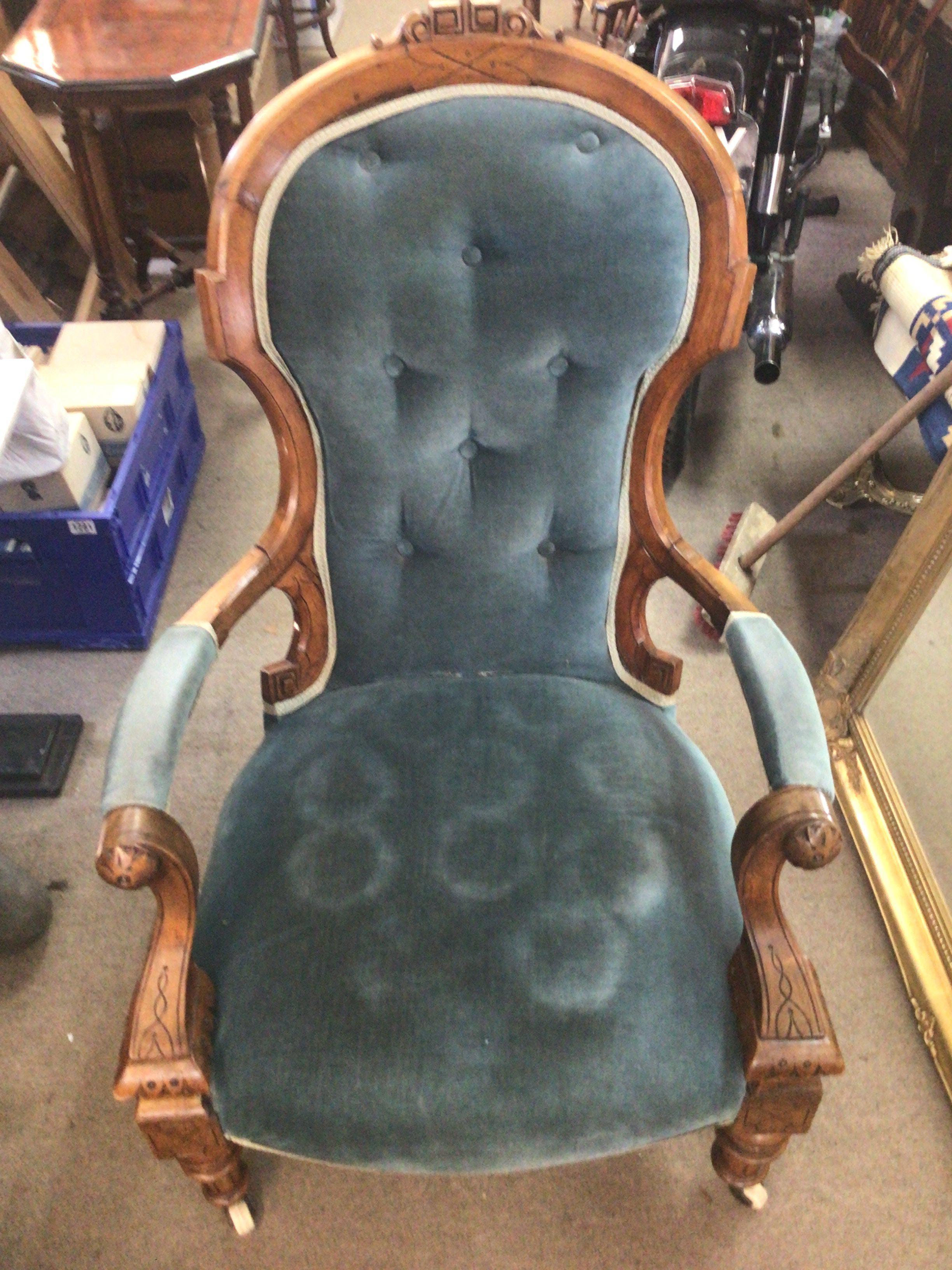 A Victorian walnut open arm chair, 104cm tall 65cm wide