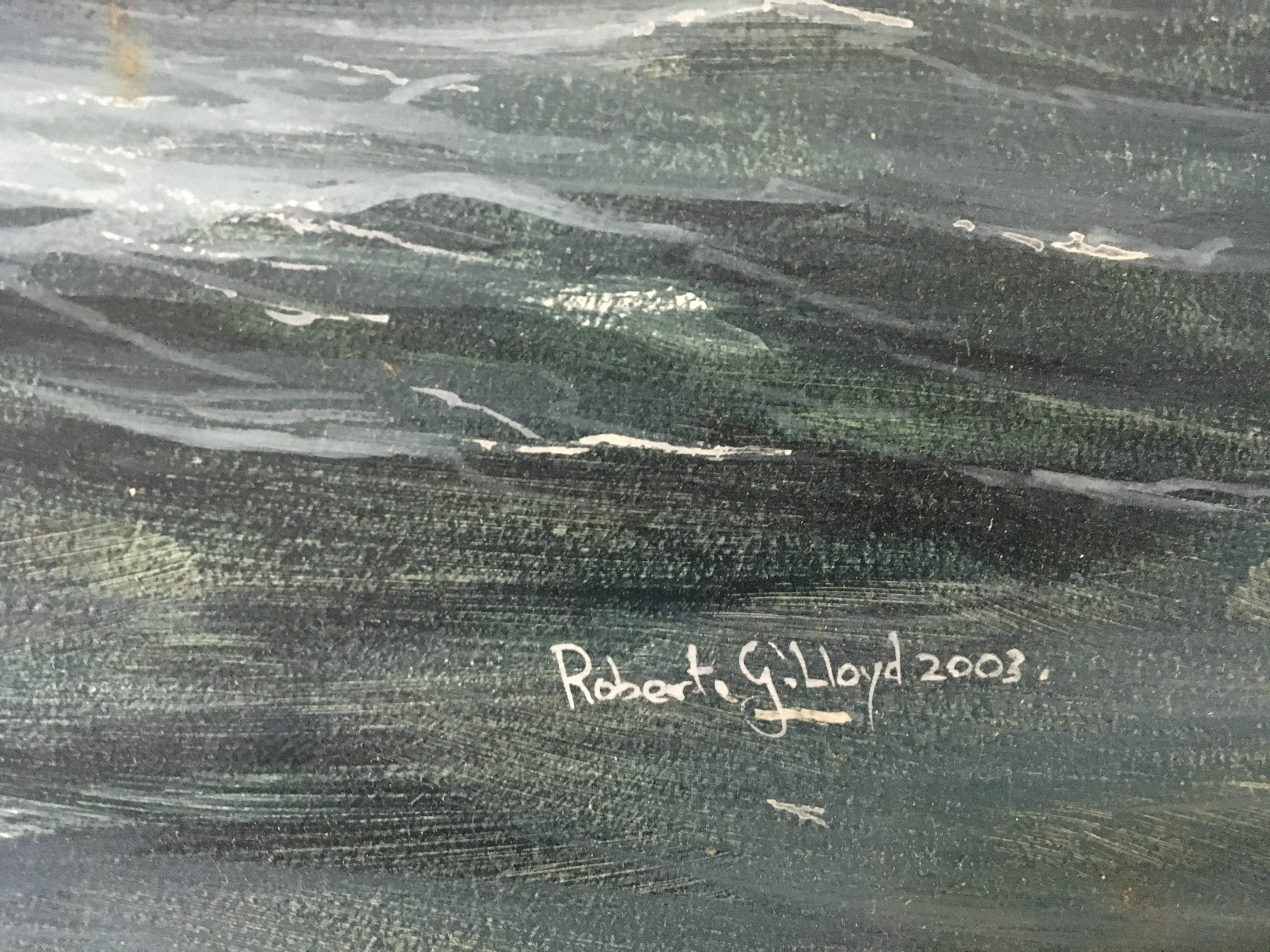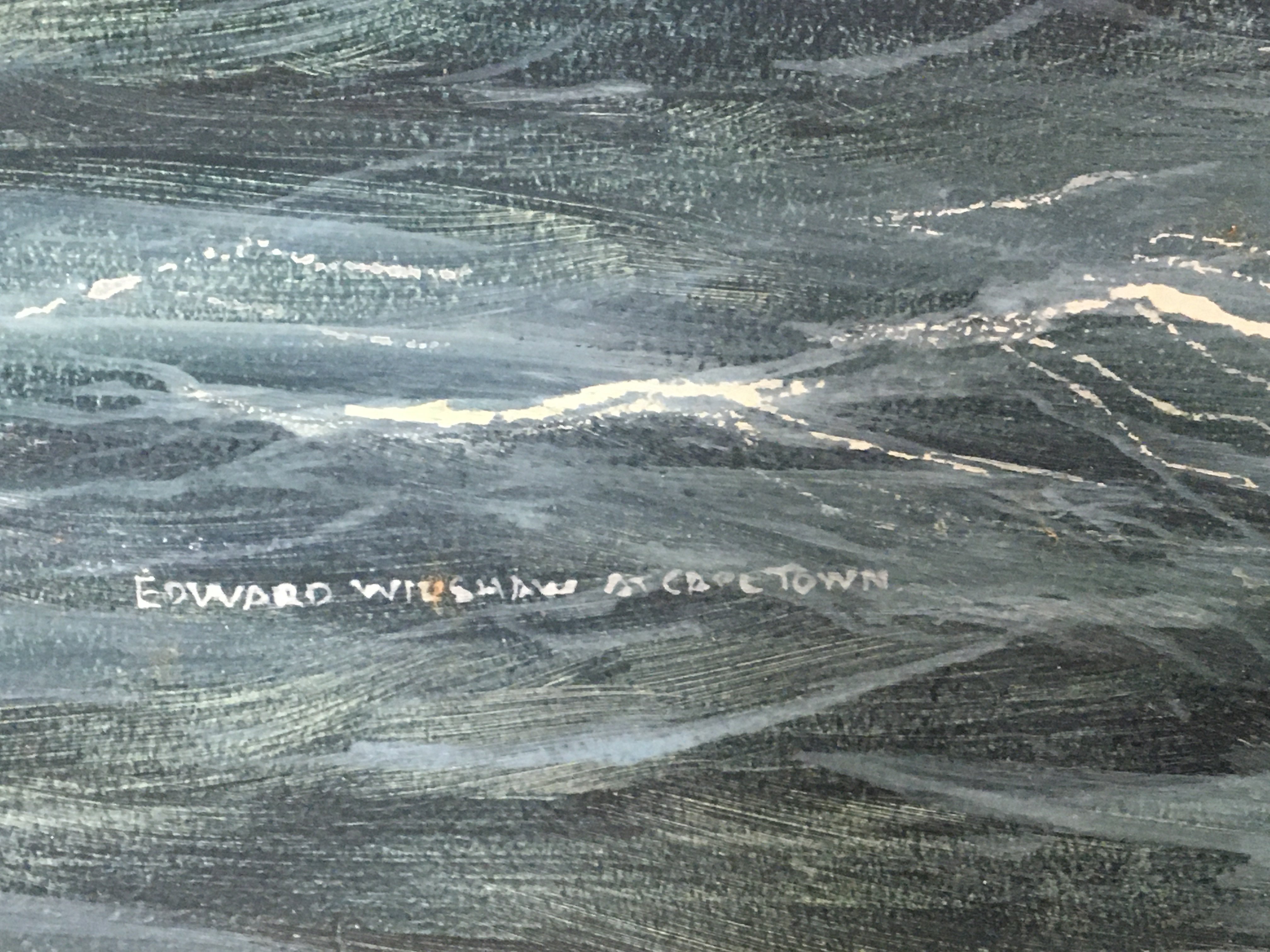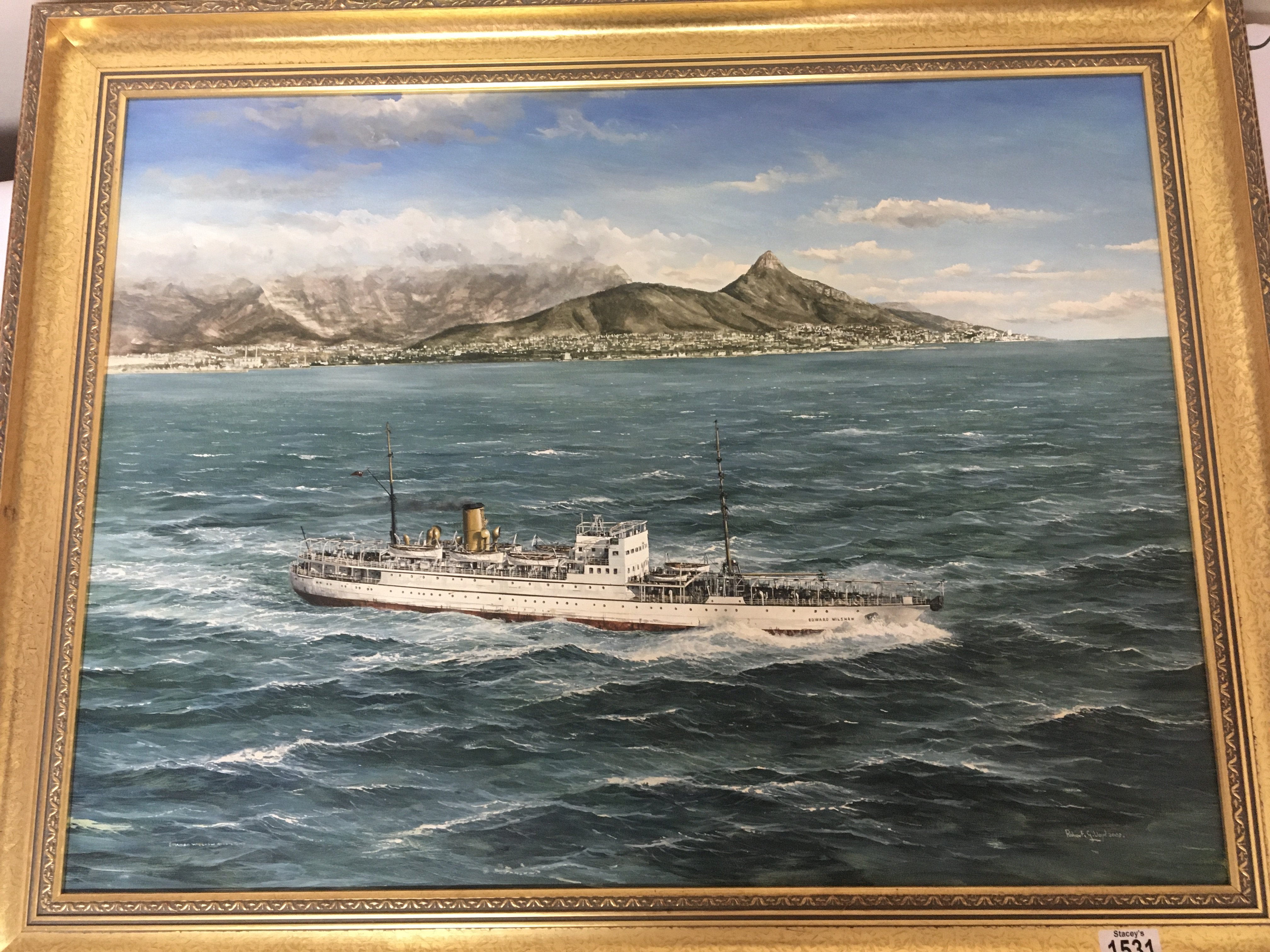 A framed oil painting on board Marine view study of the ship Edward Wilshaw of the coats of Cape Town SA signed by Robert G Lloyd 2008 83cmx 75cm approximately