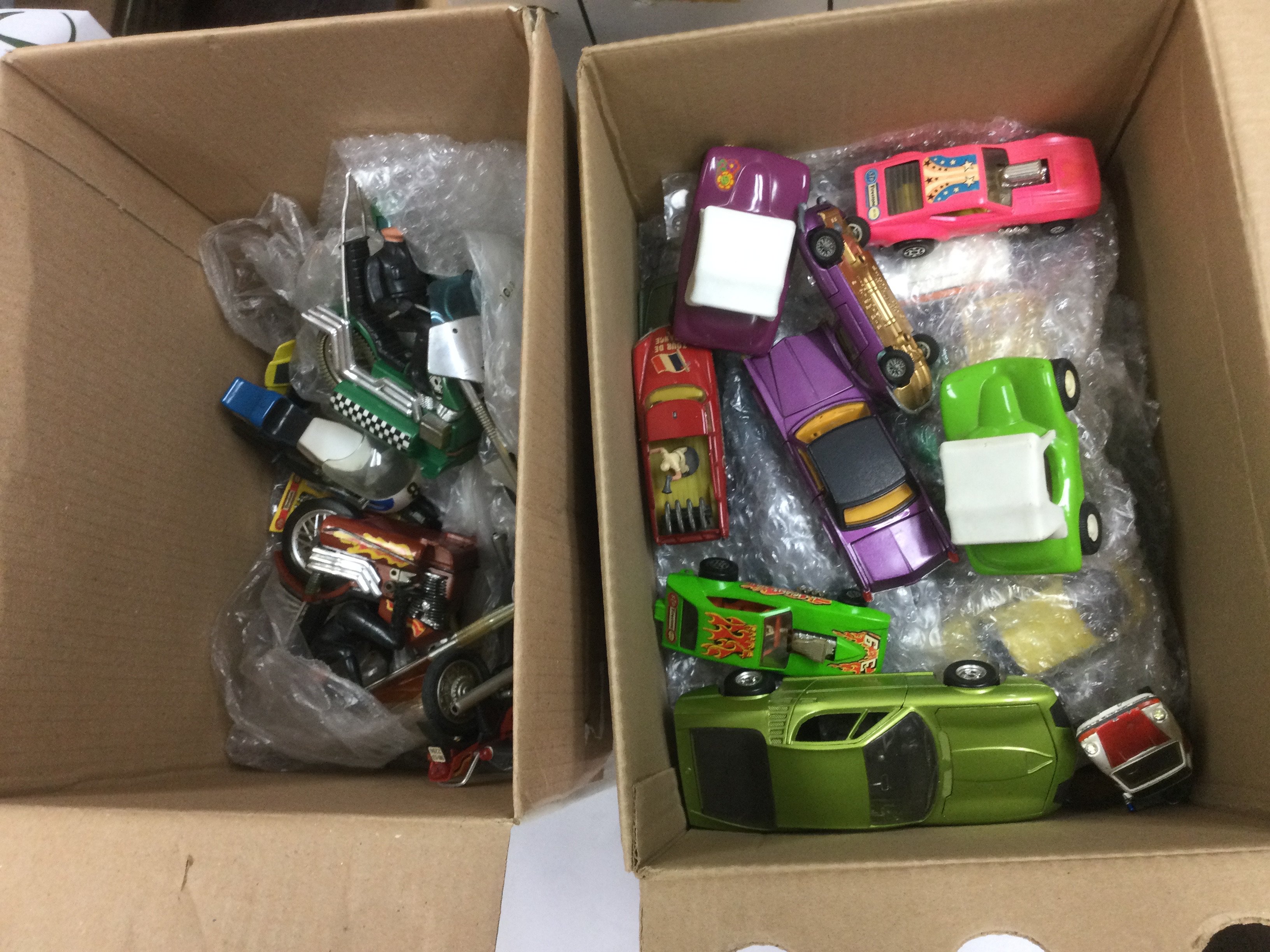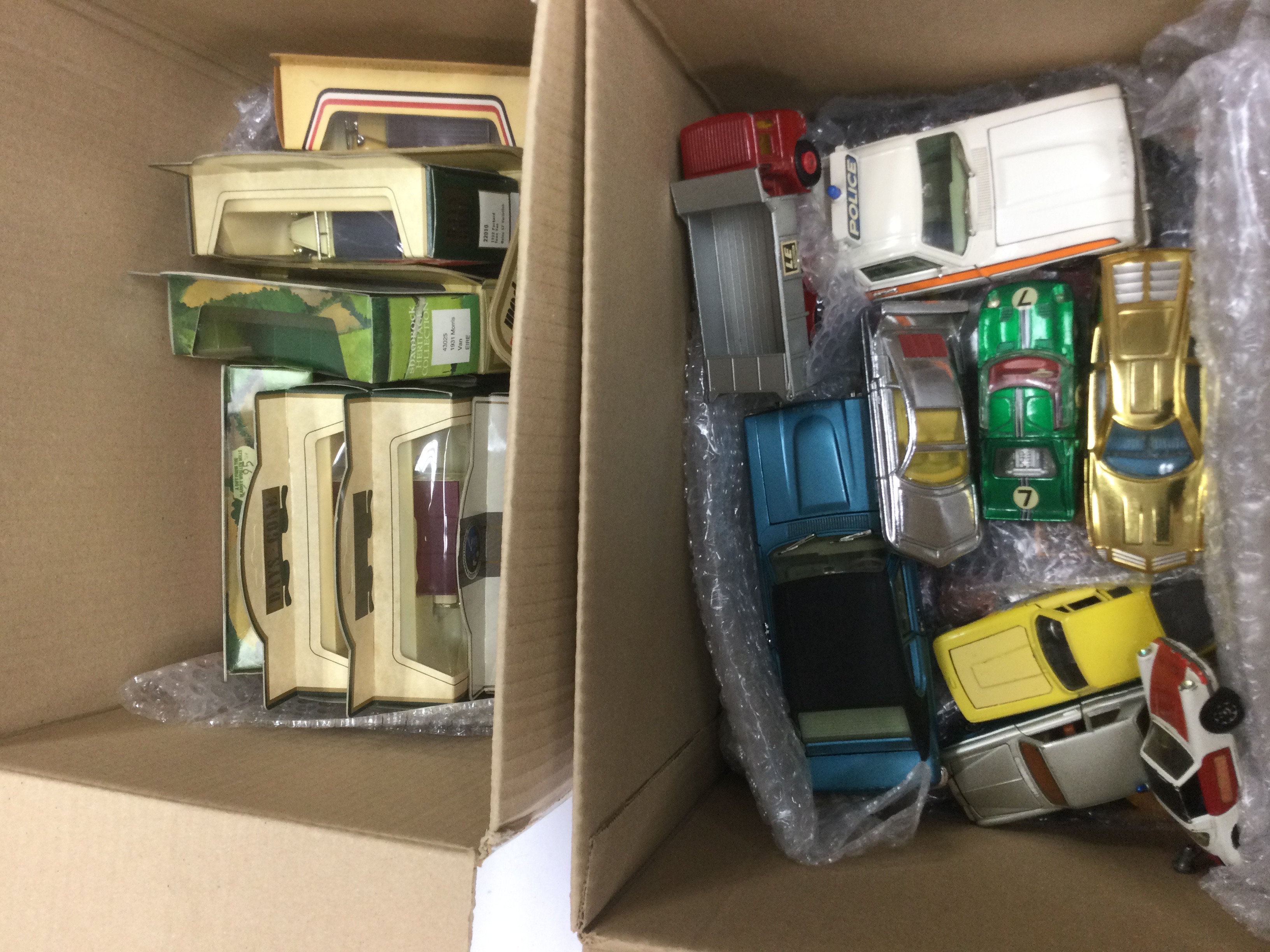 WITHDRAWN Four boxes of various playworn and boxed die cast vehicles including Chitty Chitty Bang Bang, Bat copter, UFO SHADO vehicles, tanks, F1 cars etc. Includes Corgi and Dinky examples. Shipping category D.