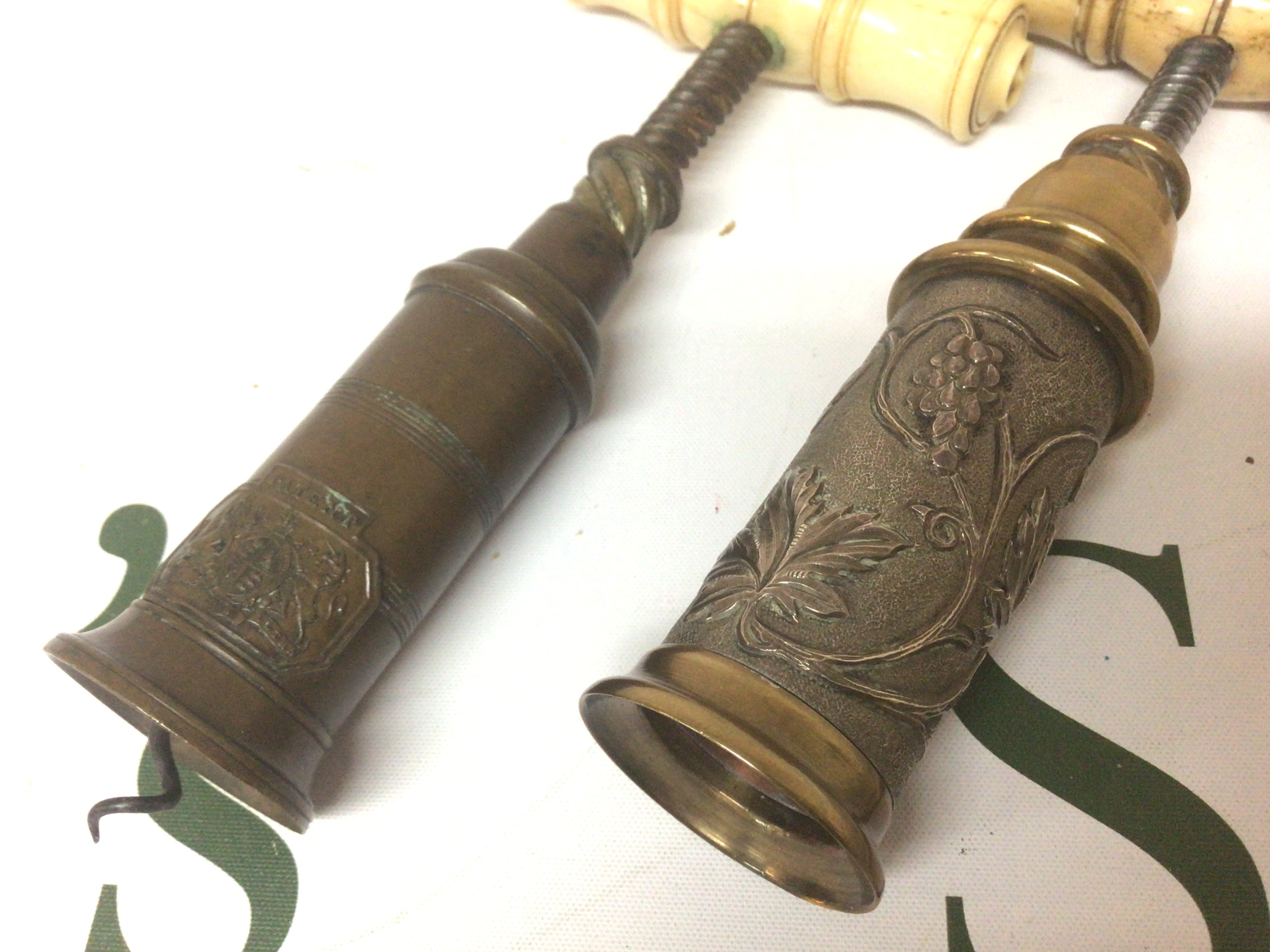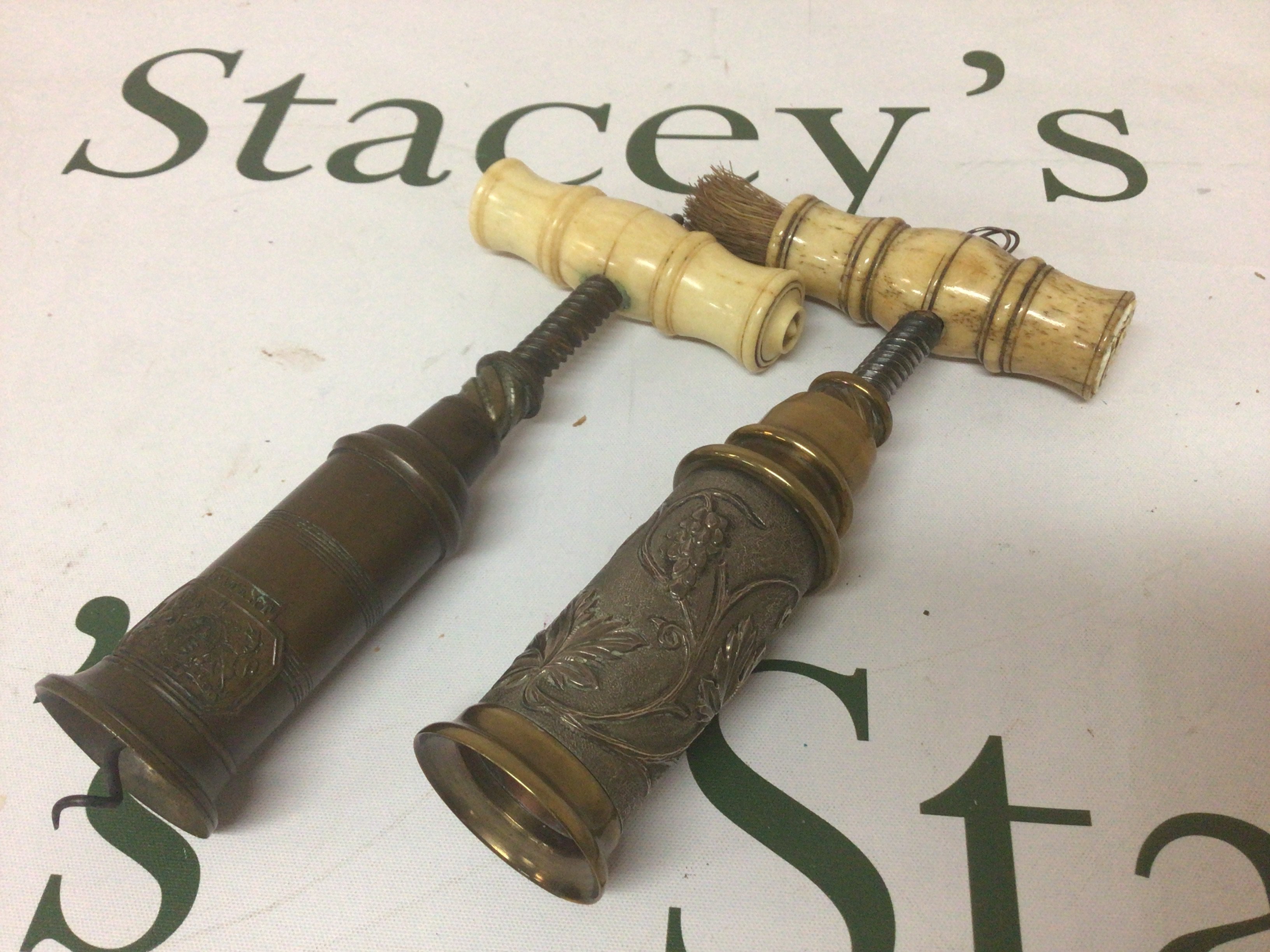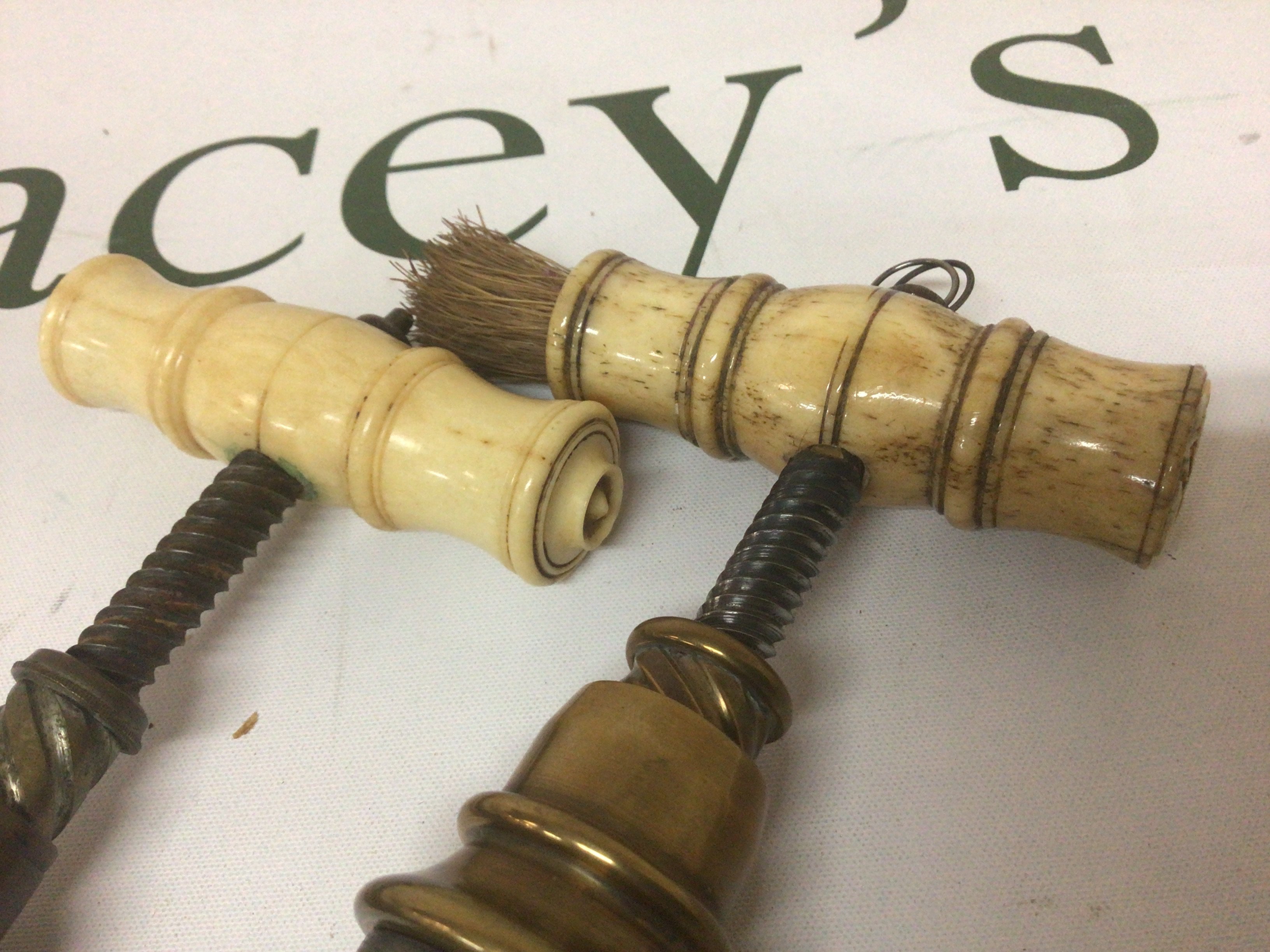 Two 19th century brass and silvered corkscrews with bone turned handles