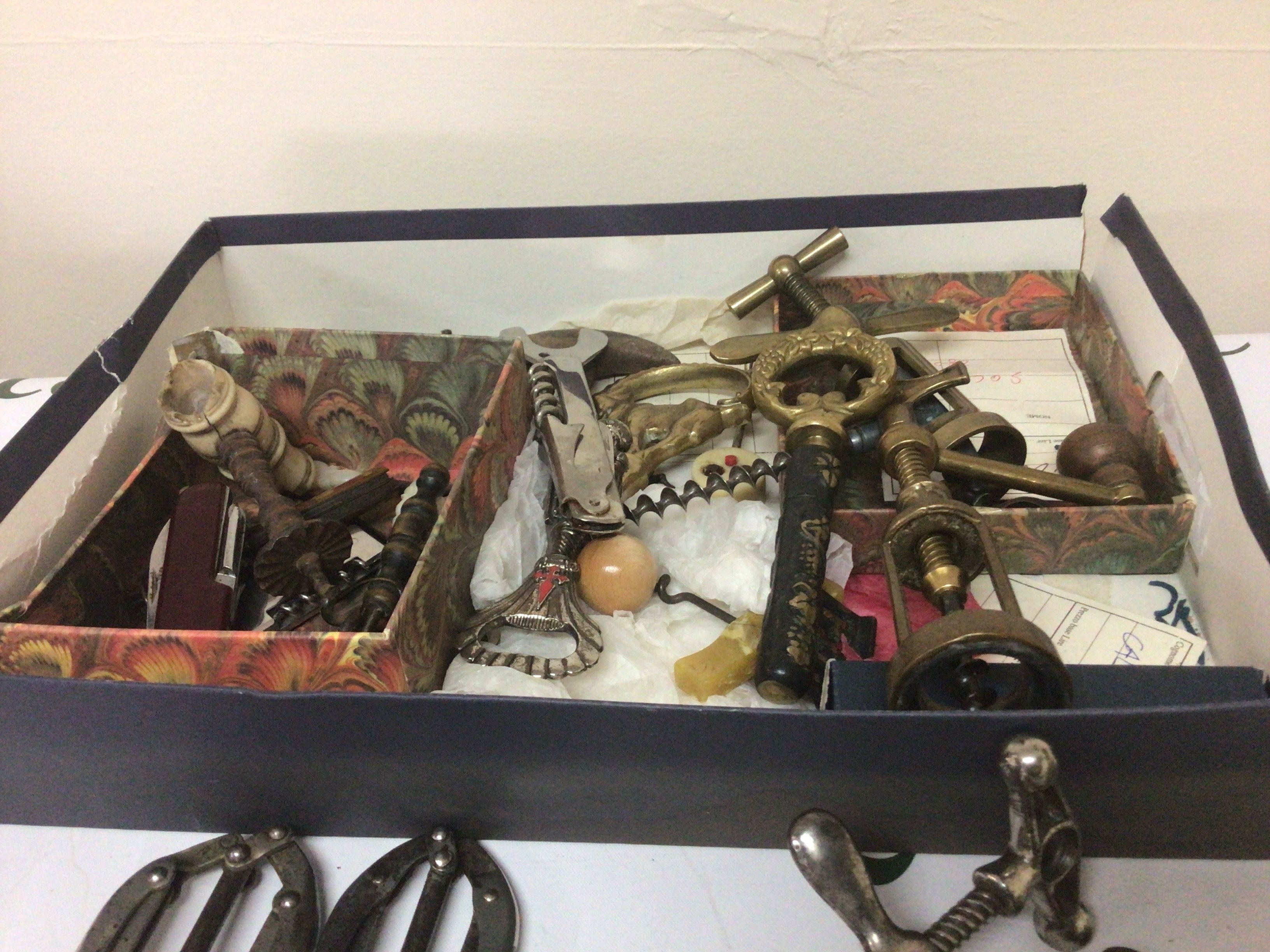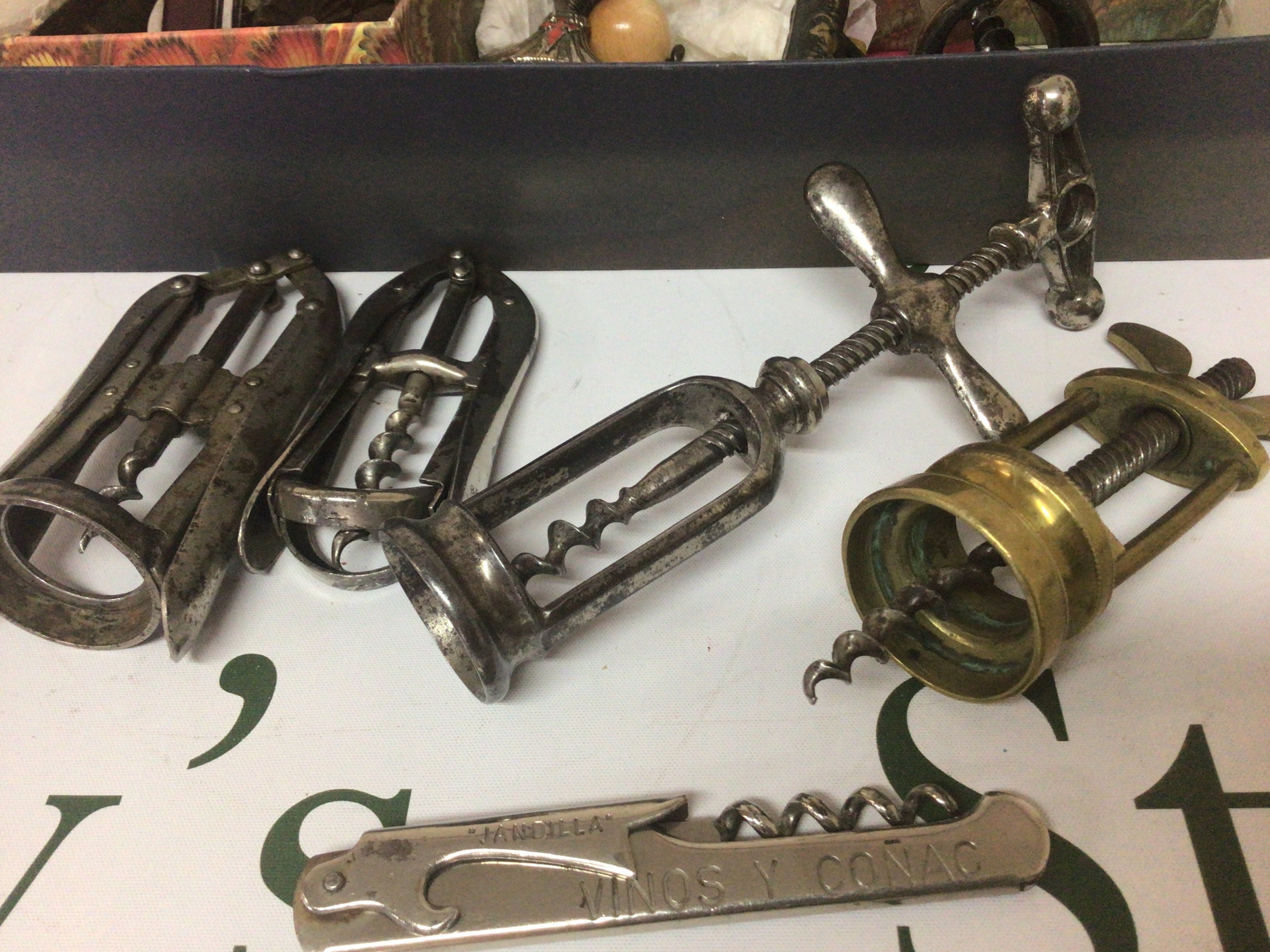 A collection of Vintage corkscrews pocket knifes and other conforming oddments.