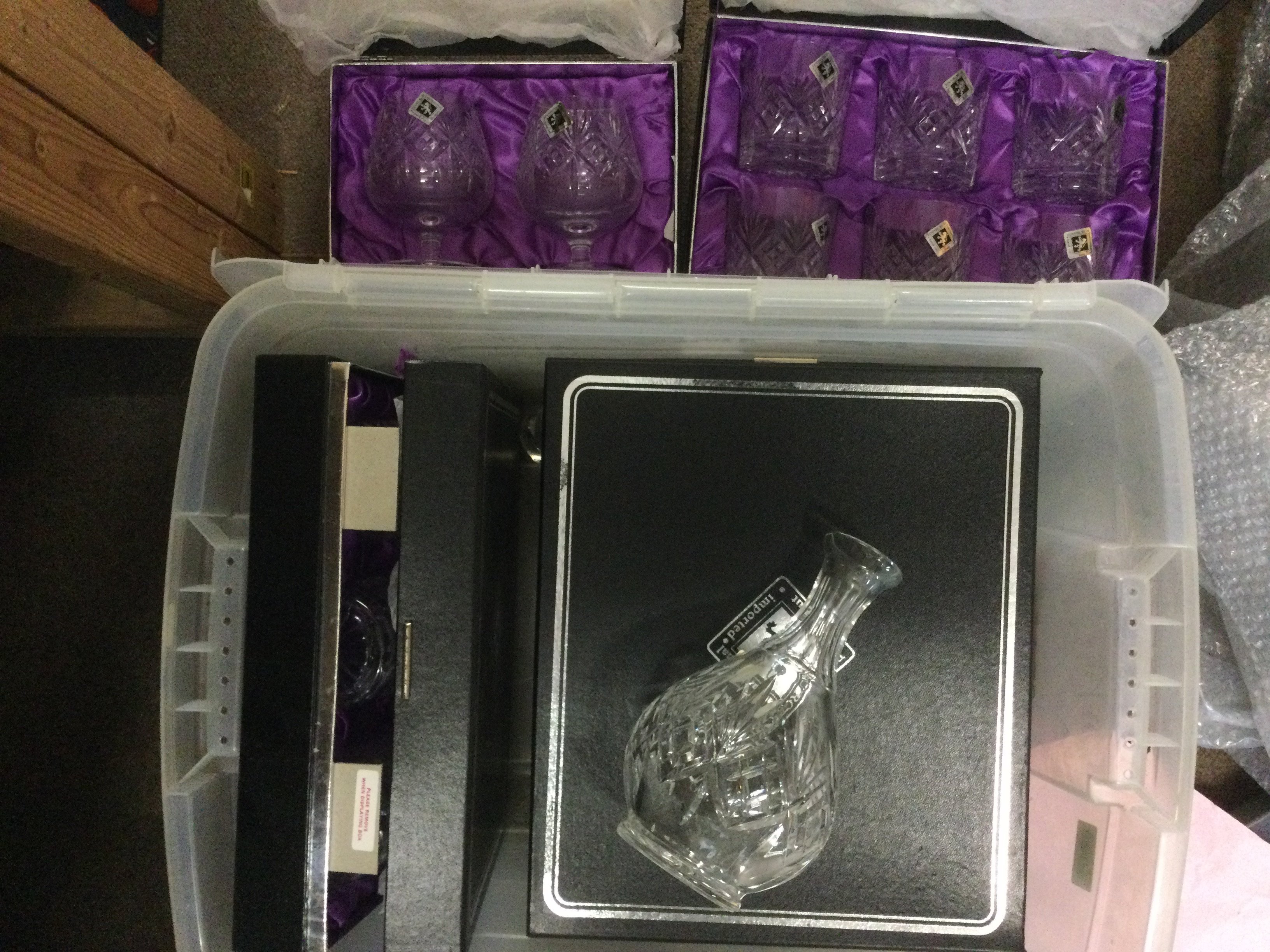 WITHDRAWN - Three boxes containing a large collection of crystal glassware including Thomas Webb and Edinburgh crystal. Shipping category D.