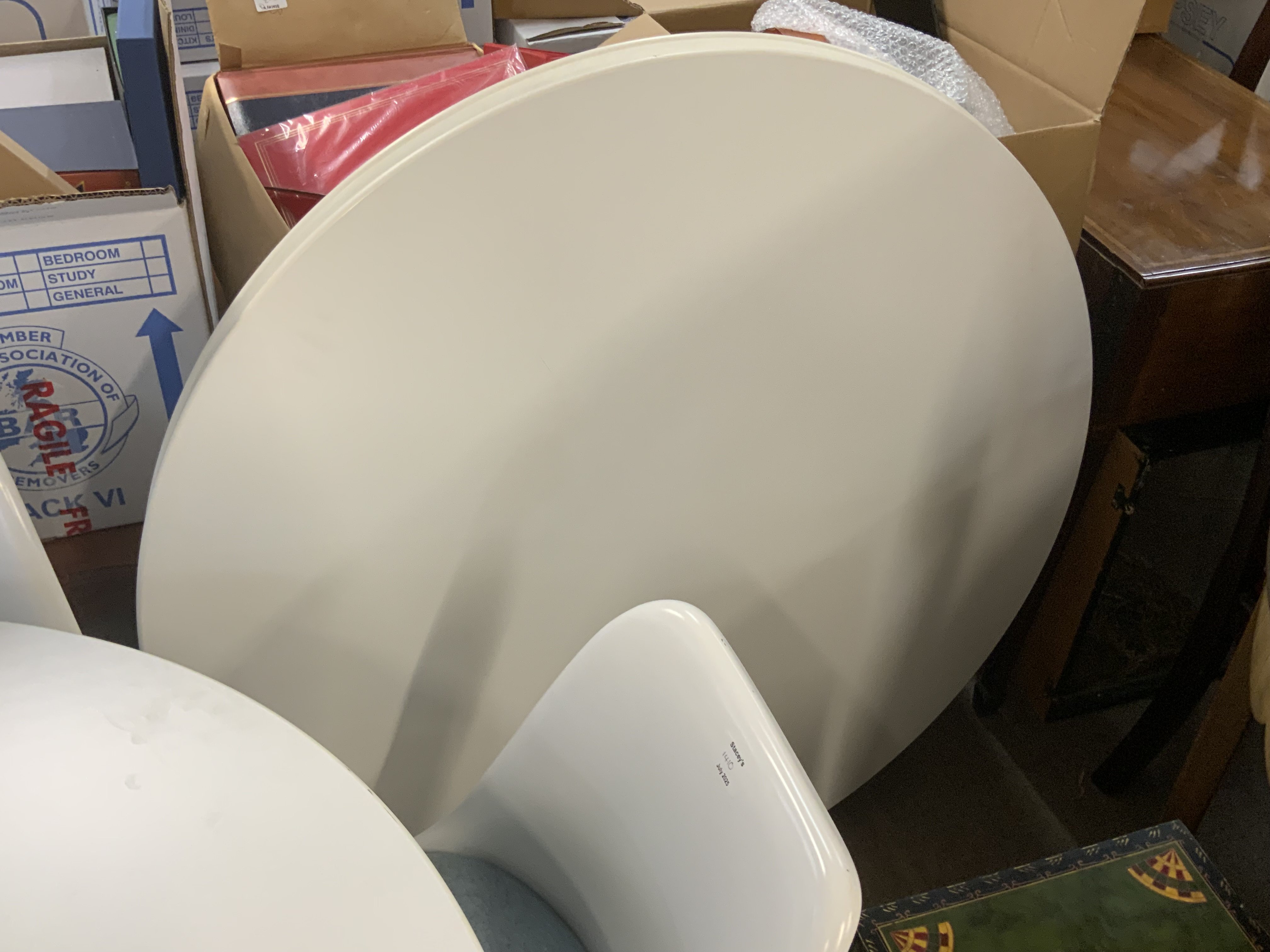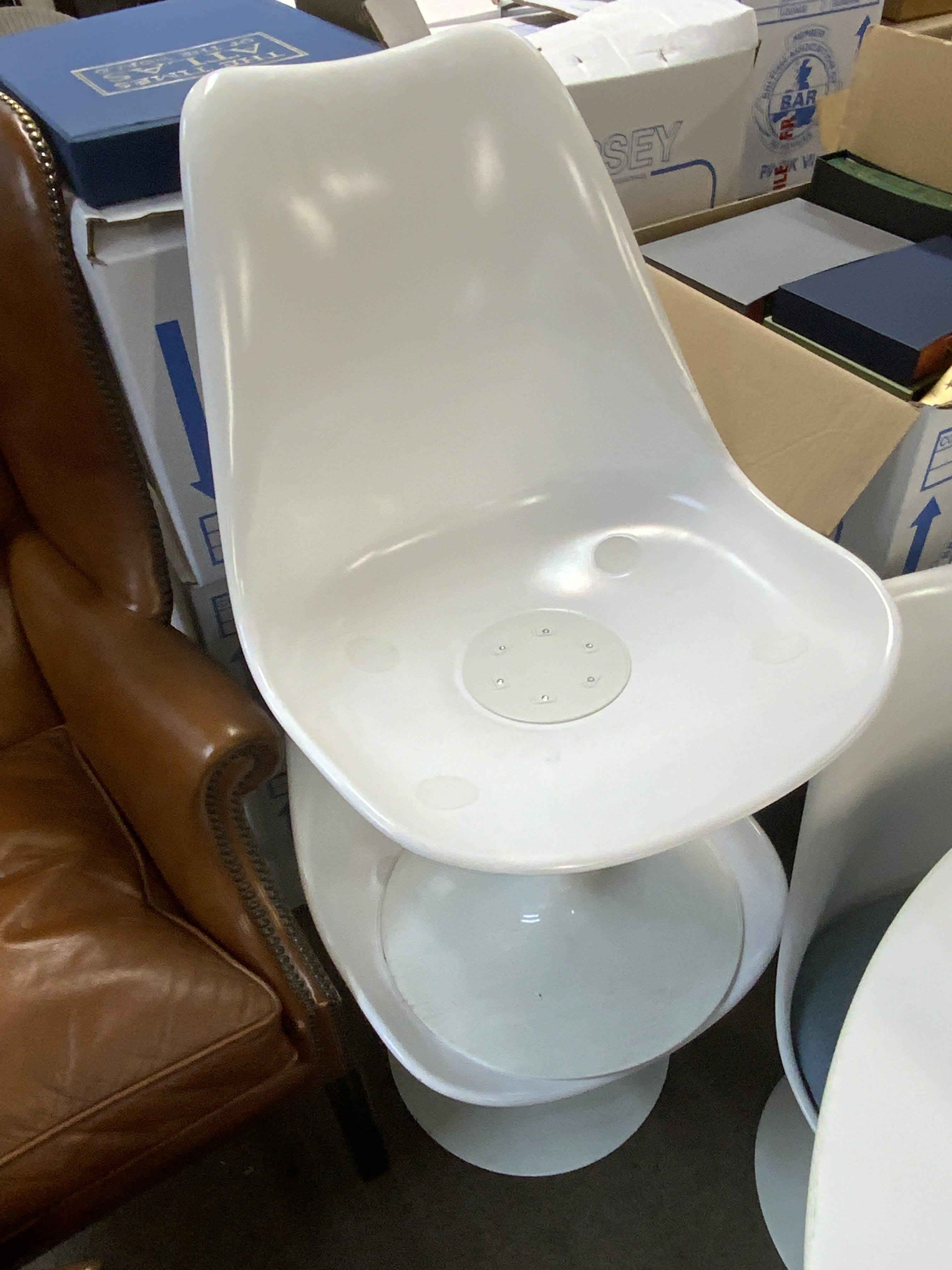6 Tulip chairs designed by Eero Saarinen 1956 (Finnish-American, 1910-1961) for Knoll Studio 1956, 4 with cushions/ 2 without cushions / 2 107cm Diameter table tops without bases.