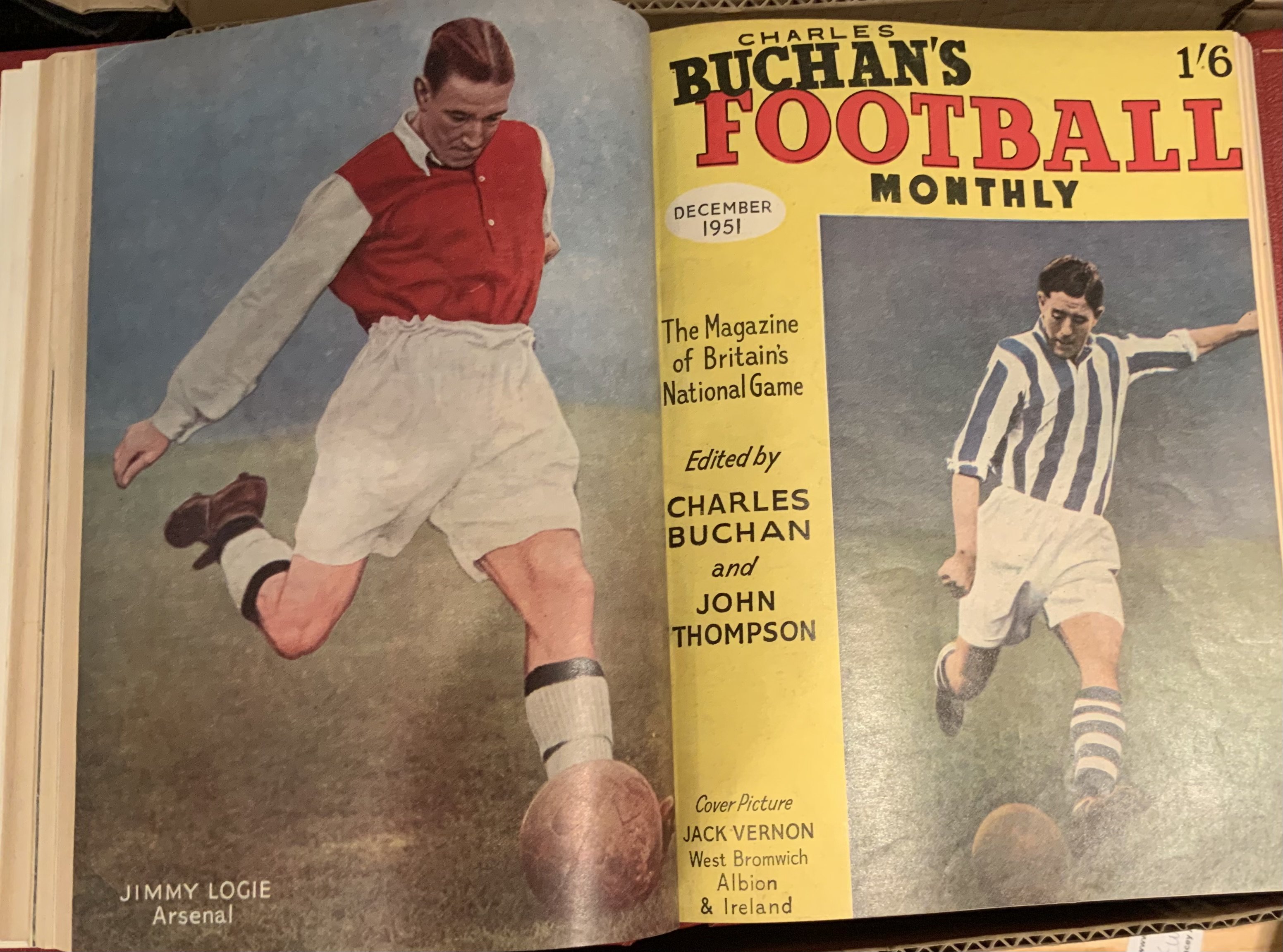 Charles Buchan Complete Bound Volumes Of Football Magazines: The first 12 years of the monthly magazine bound in 12 red binders with gold lettering to spine. Starting with first issue in September 1951. Very good. 12 volumes.