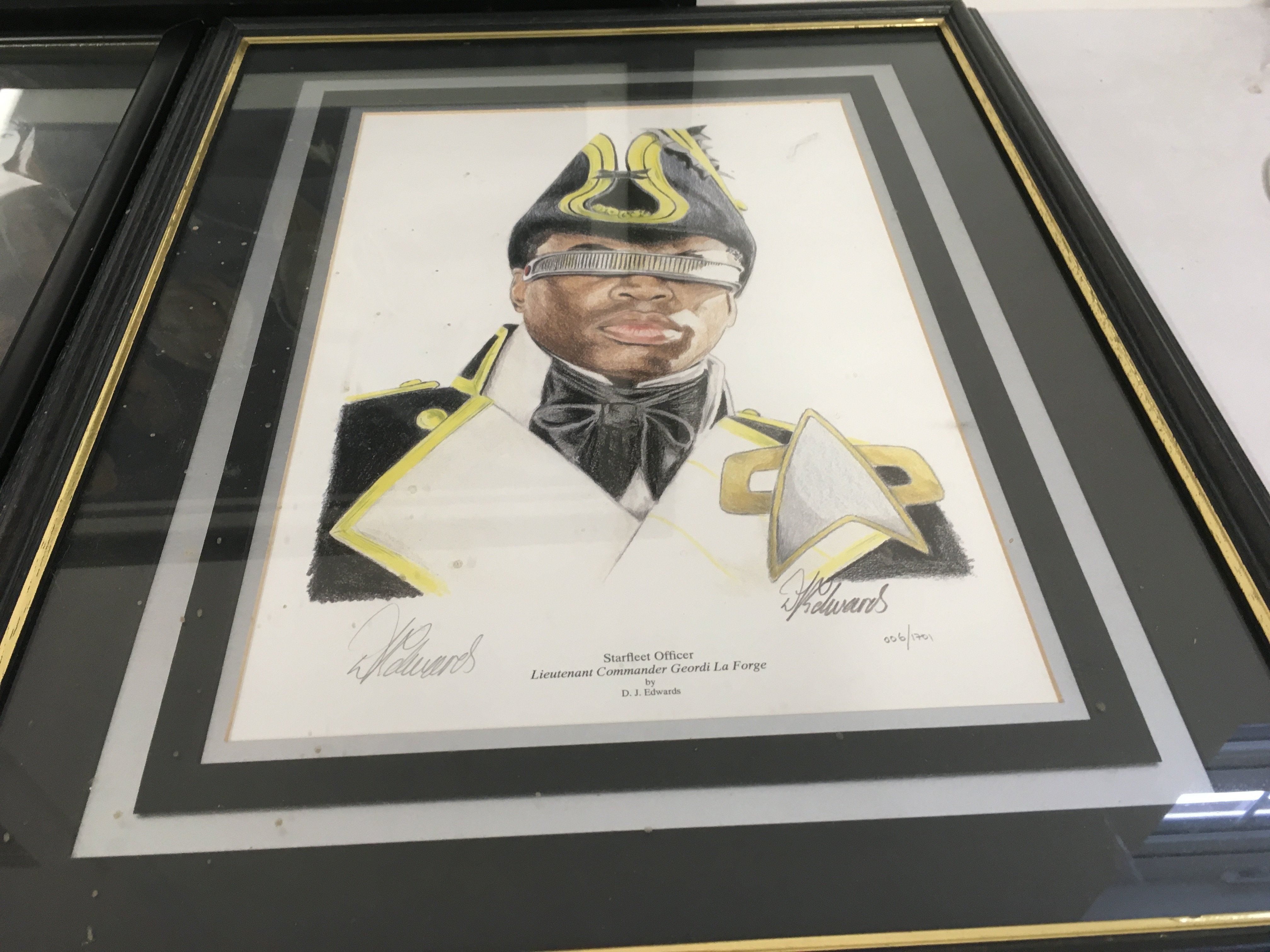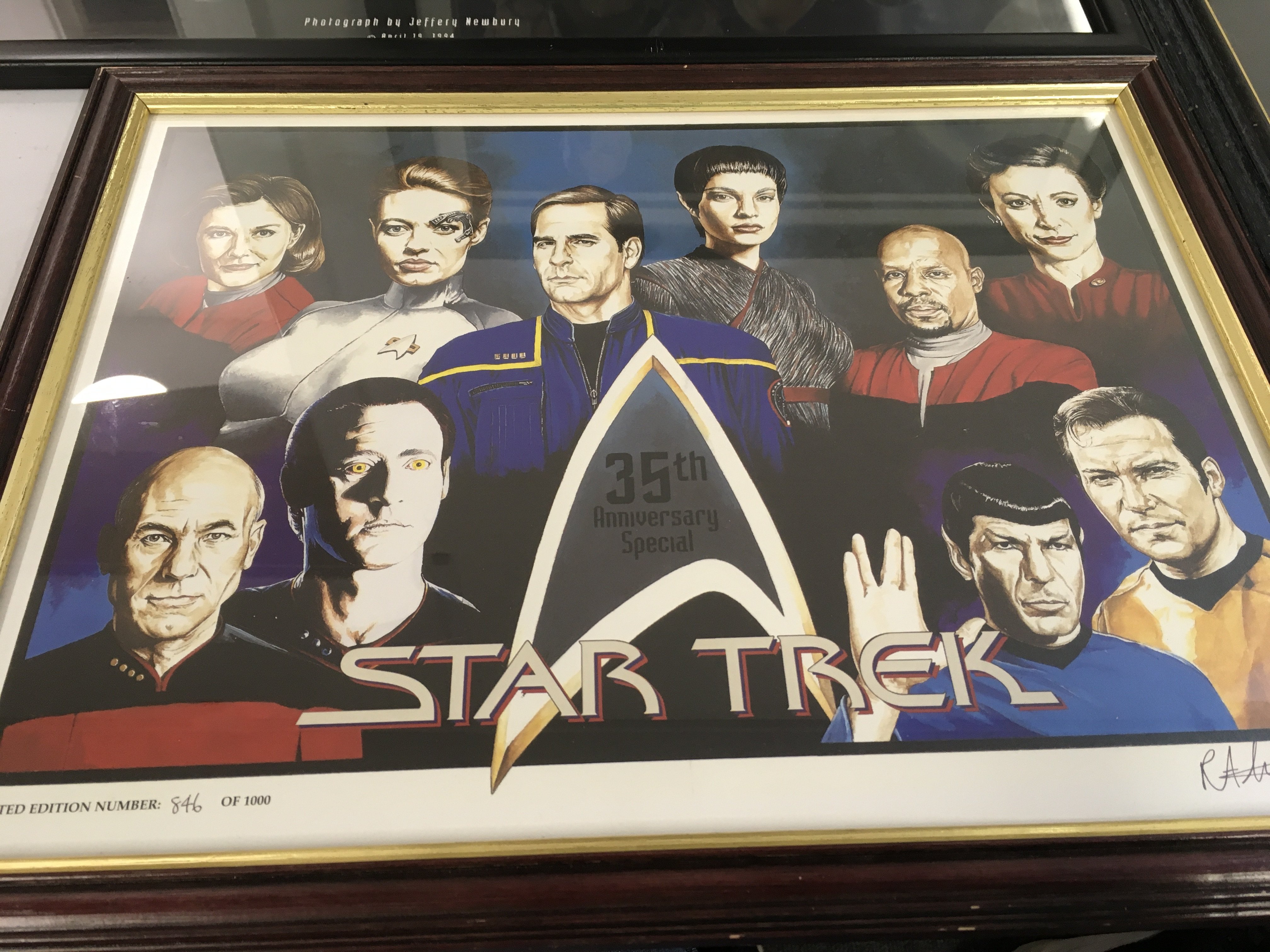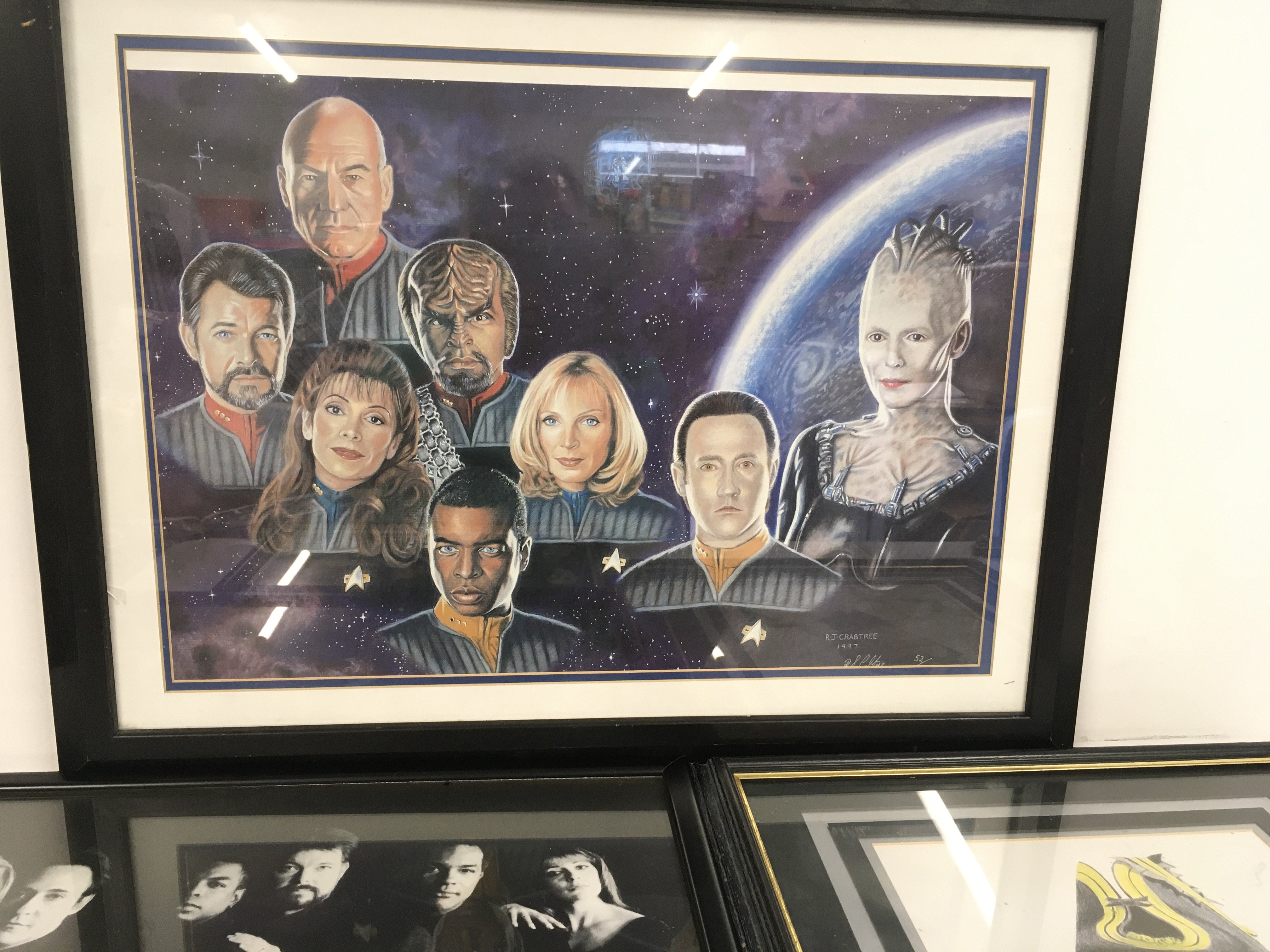 A collection of pictures comprising 3 artist signed prints and a photo all featuring characters ..actors from the numerous Star Trek series. No reserve