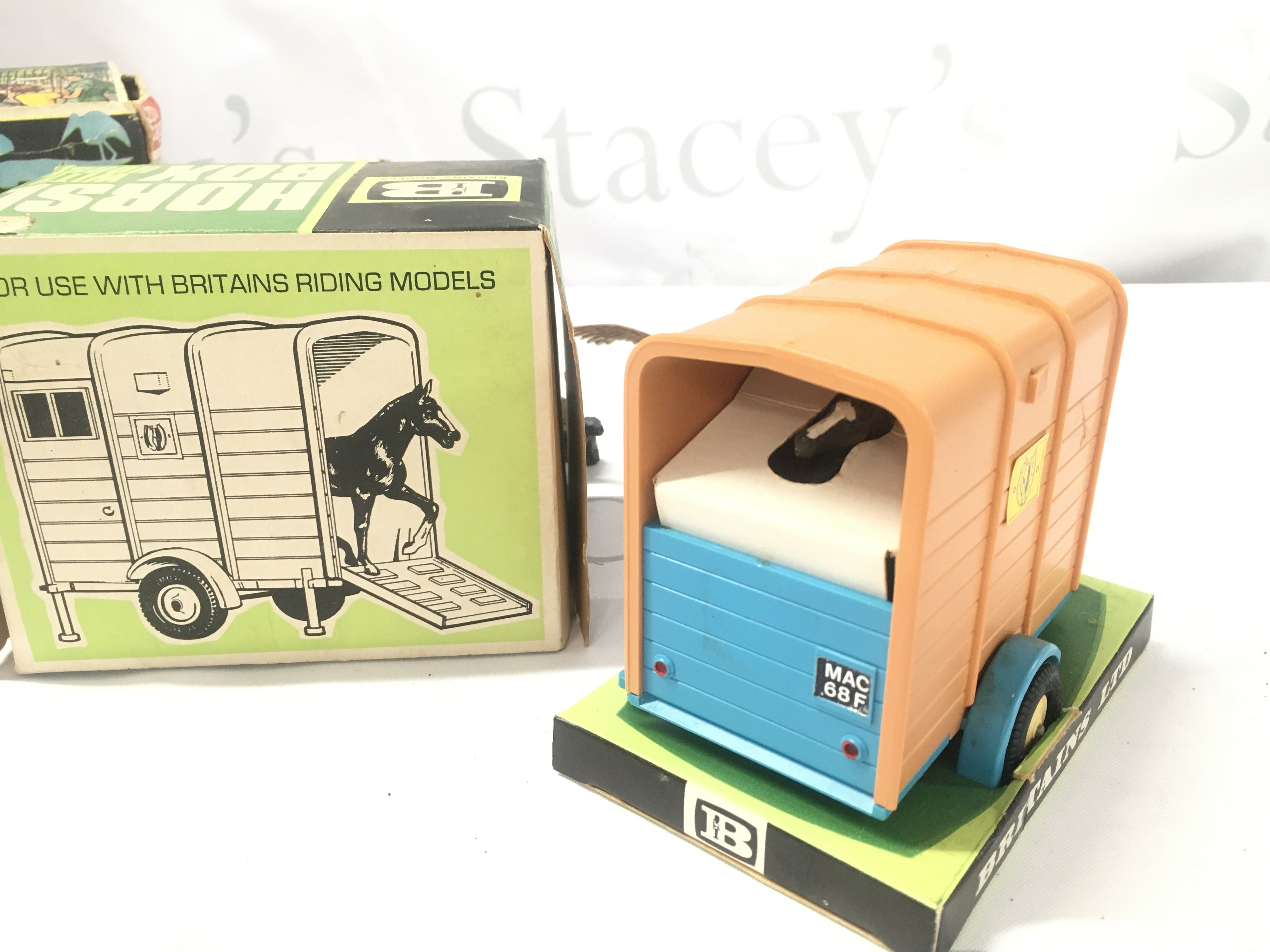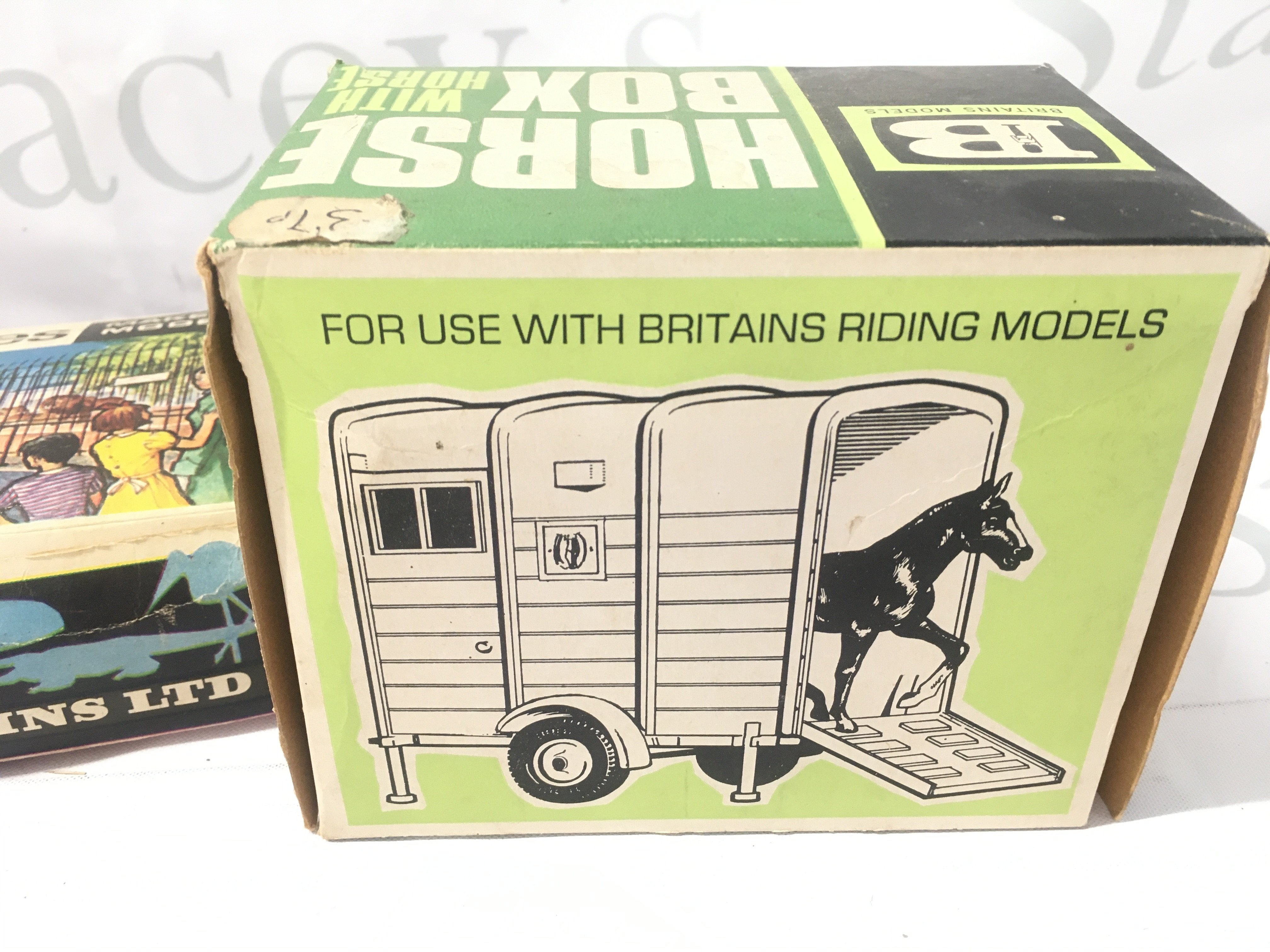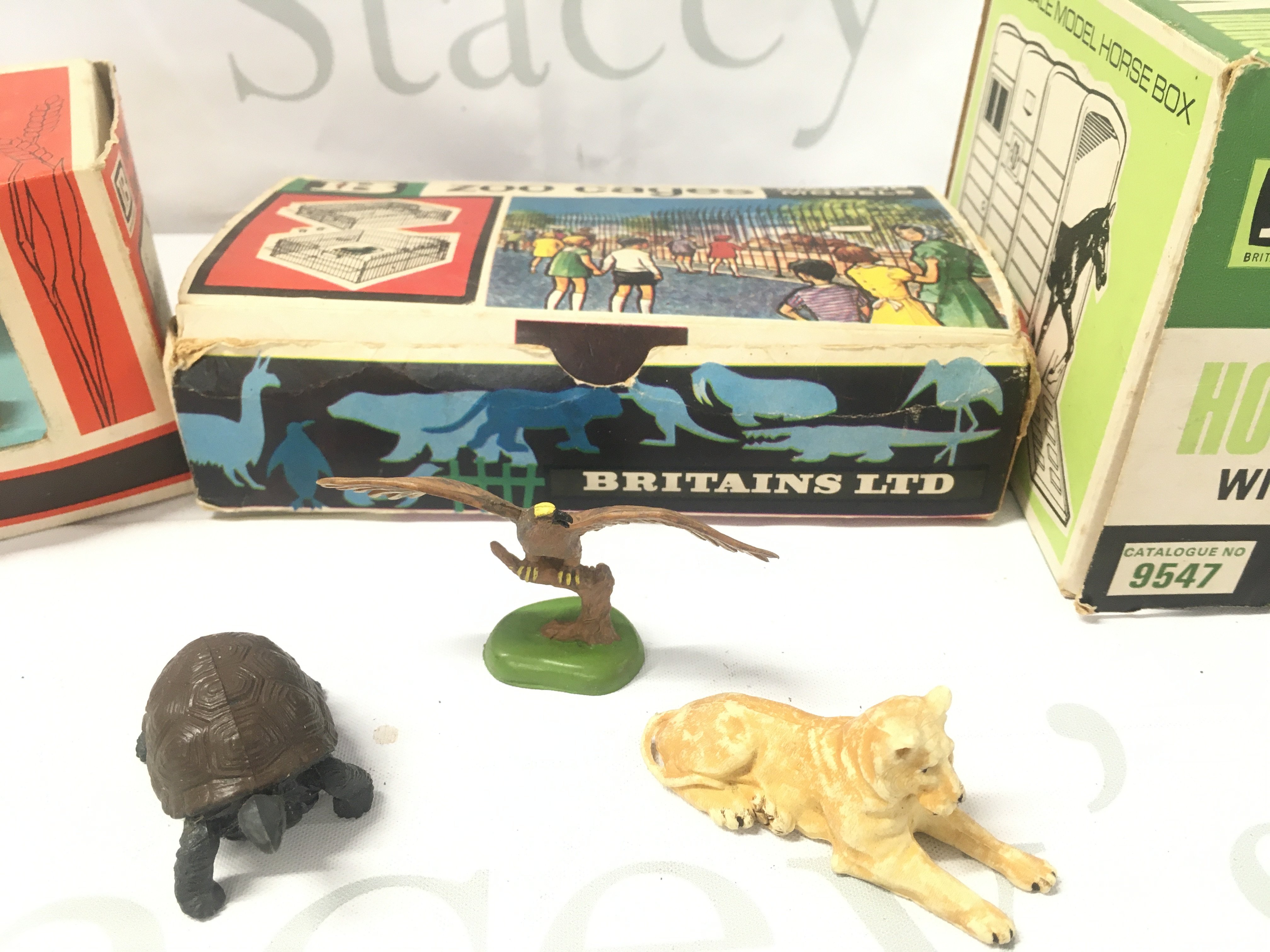 A Boxed Britains Elevator #9564. Zoo Cages And Horse Box with Horse #9547.