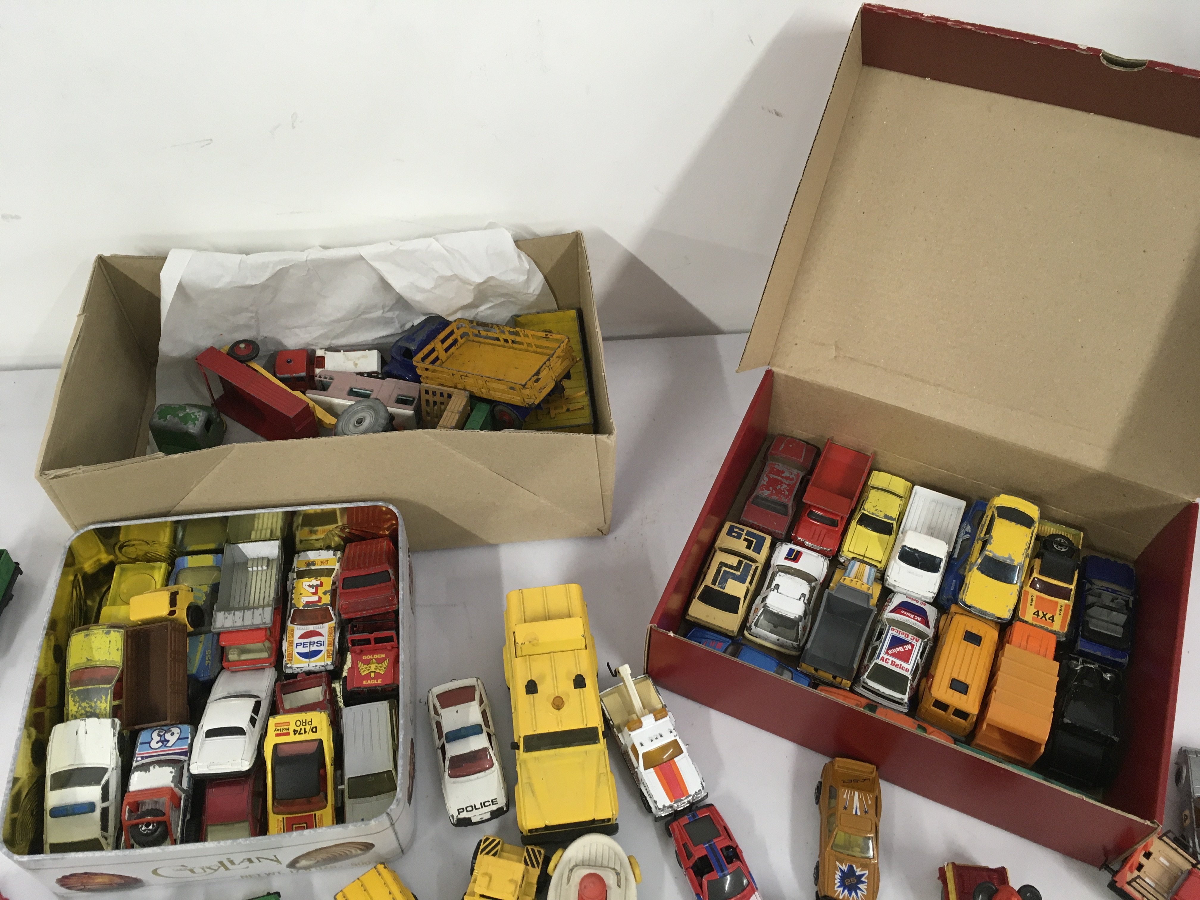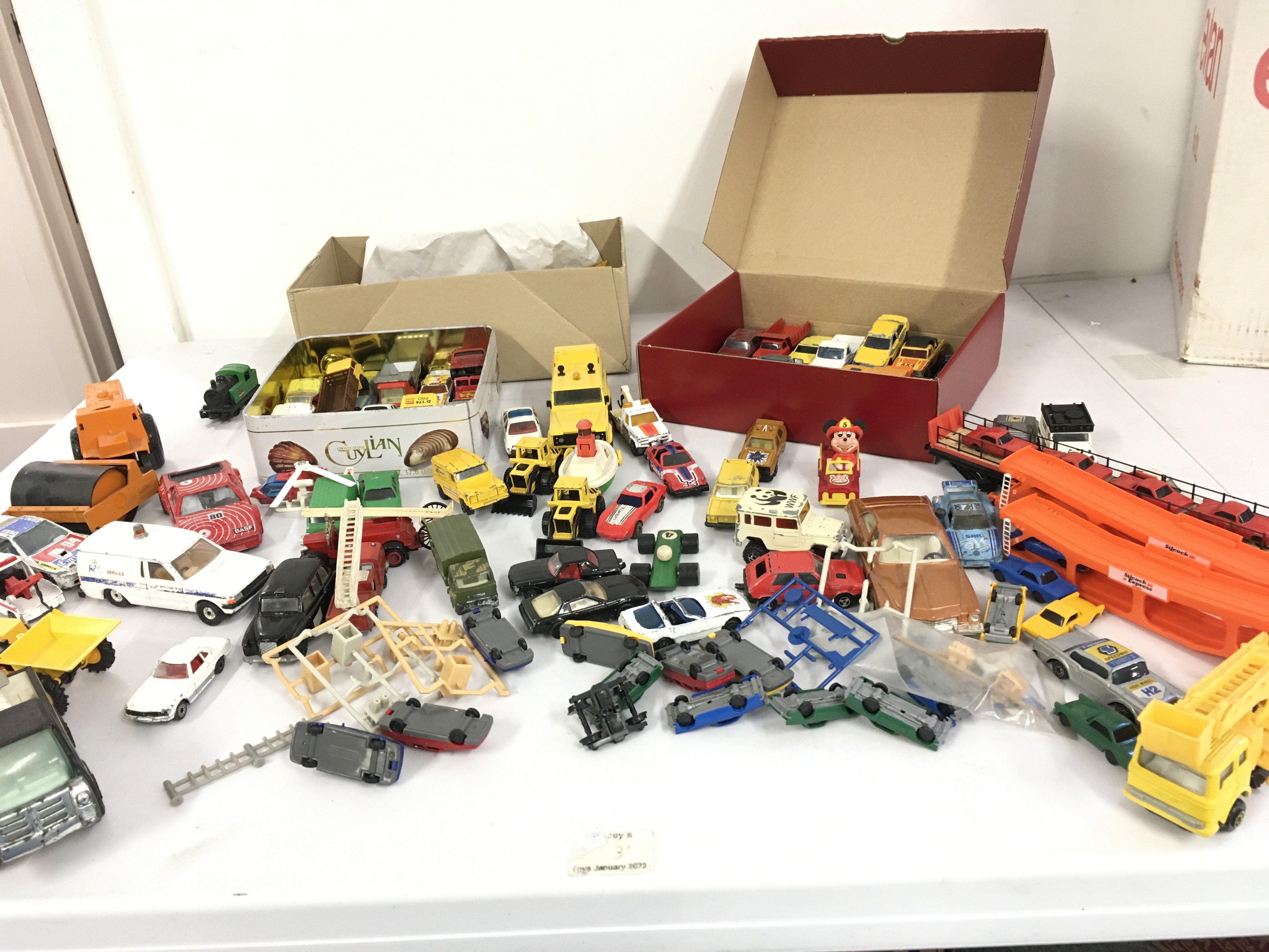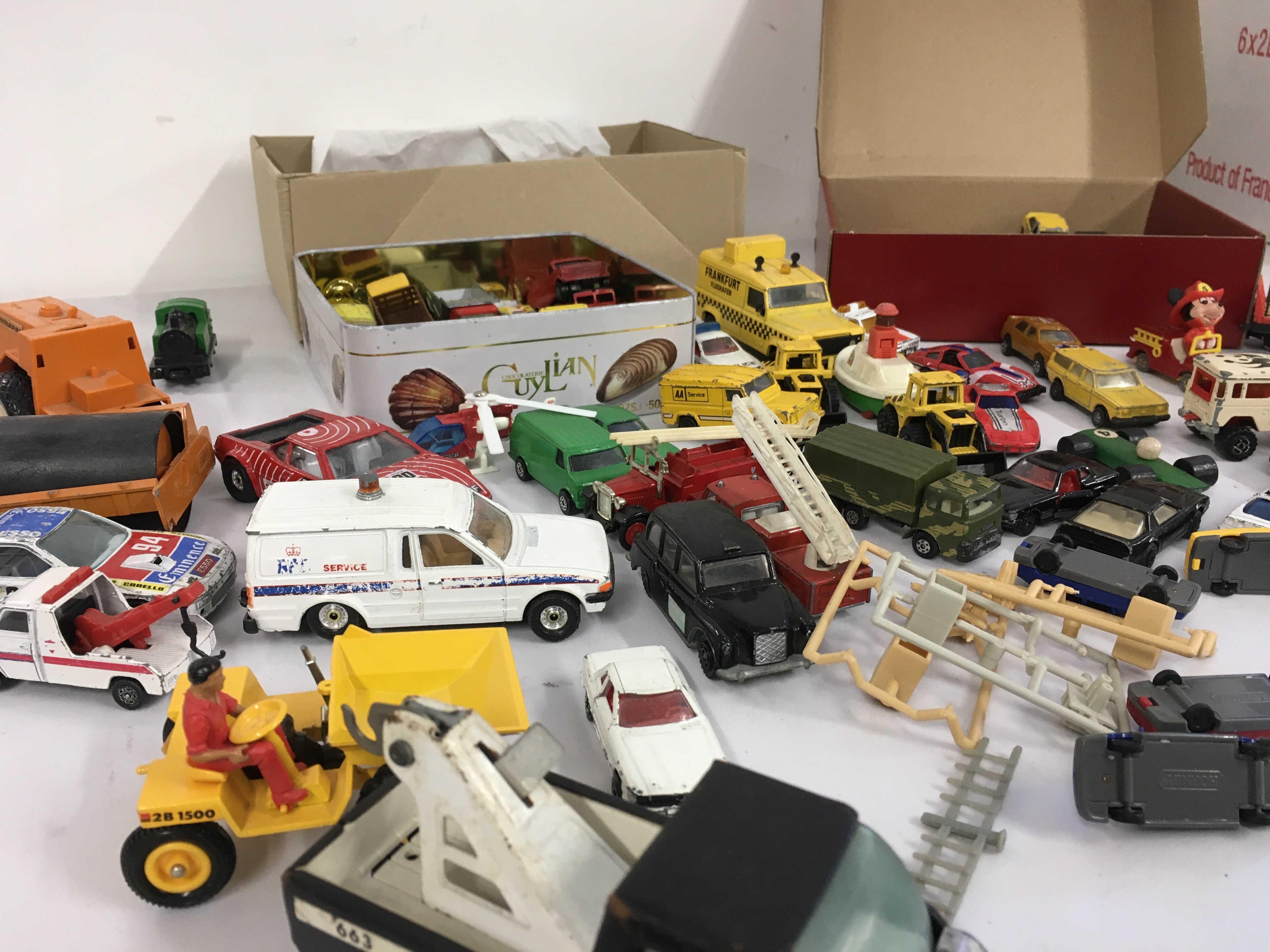 A collection of Playworn diecast and plastic model vehicles by Corgi..Britains..Matchbox etc.