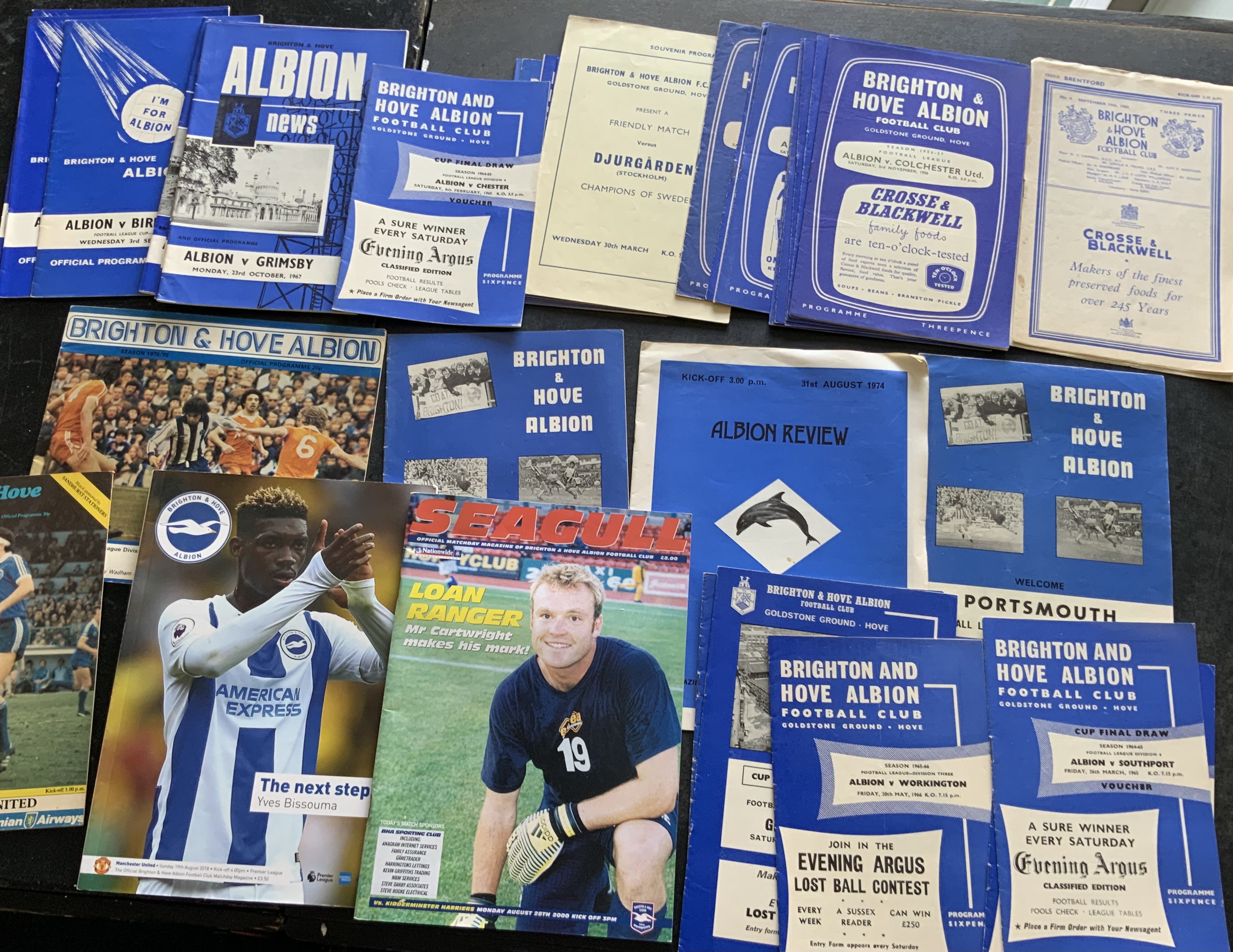 Brentford + Brighton Football Programme Collection: Brentford collection covering 1944/5 v Tottenham, 12 x 1950s, 45 x 1960s and 53 x 1970s onwards. Includes 1952/3 Everton, 1955/6 Notts Co Friendly, the post 1970s contain a lot of special issues; Minor Cup, Friendly and Testimonial etc. Condition is mainly good with no duplication. Brighton collection covering 13 x 1950s, 18 x 1960s. Includes 1954/5 Brentford and Leyton Orient, 1960 versus Djurgarden Friendly. Mainly good with no duplication (149)