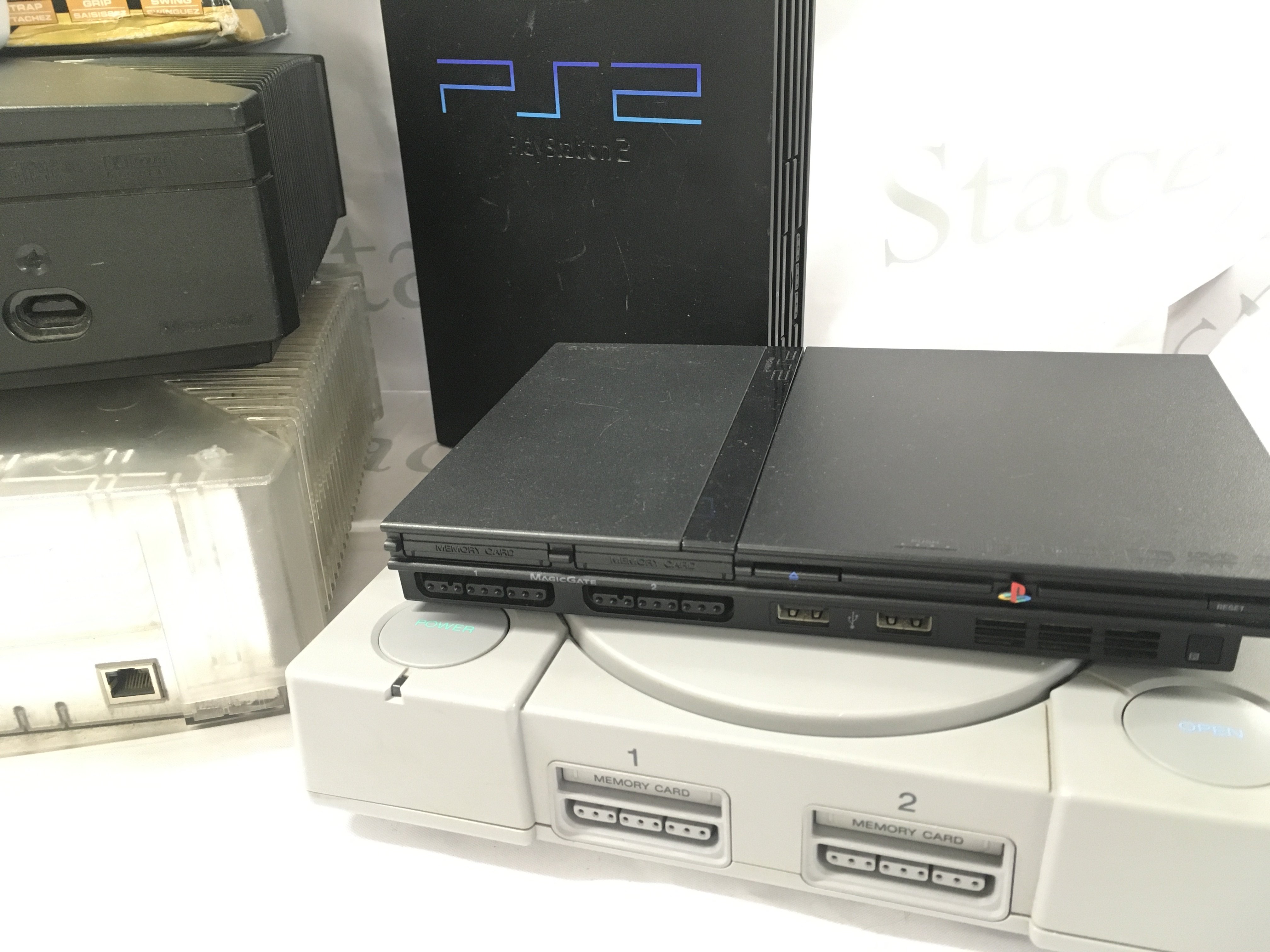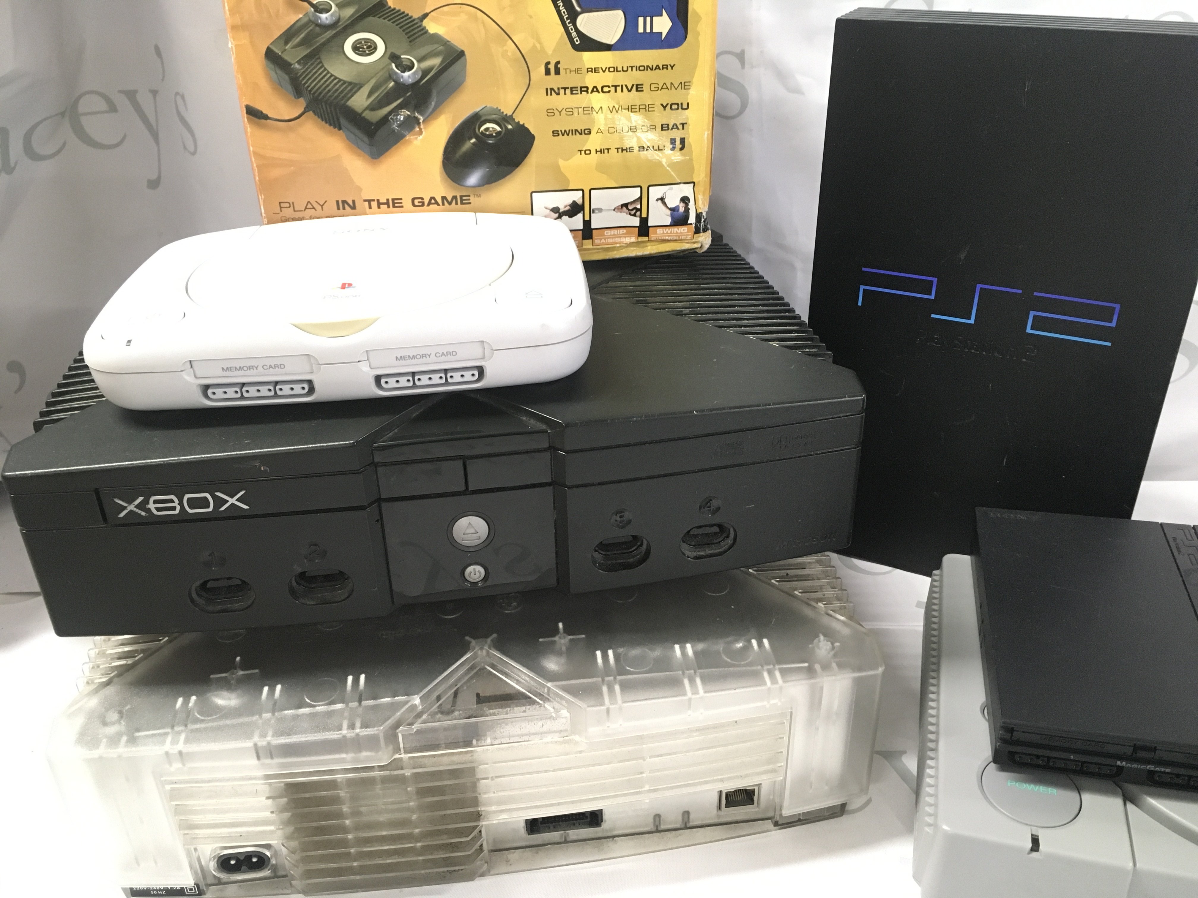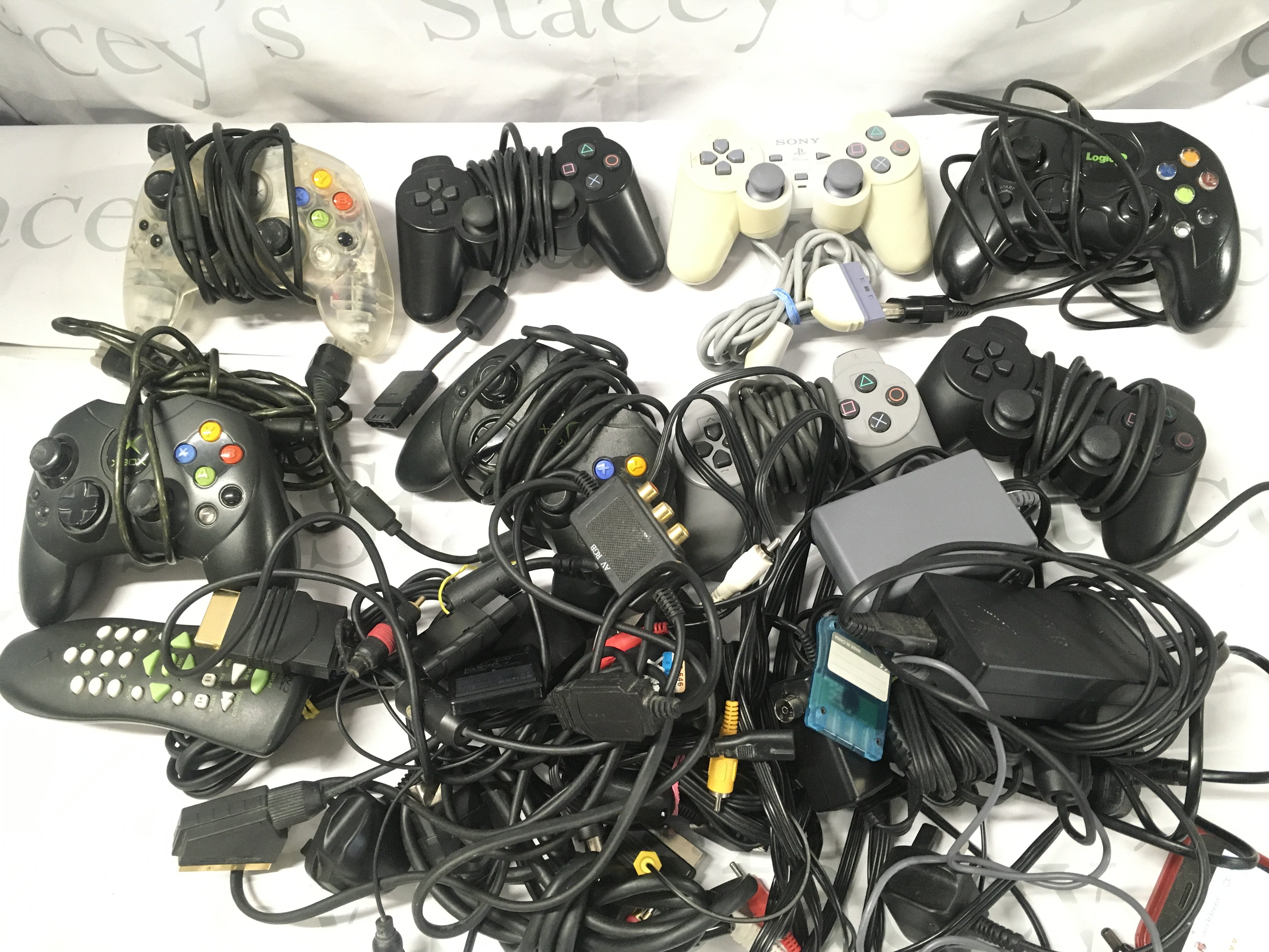 WITHDRAWN A Collection of Games Consoles with Controllers. Leads And Games.