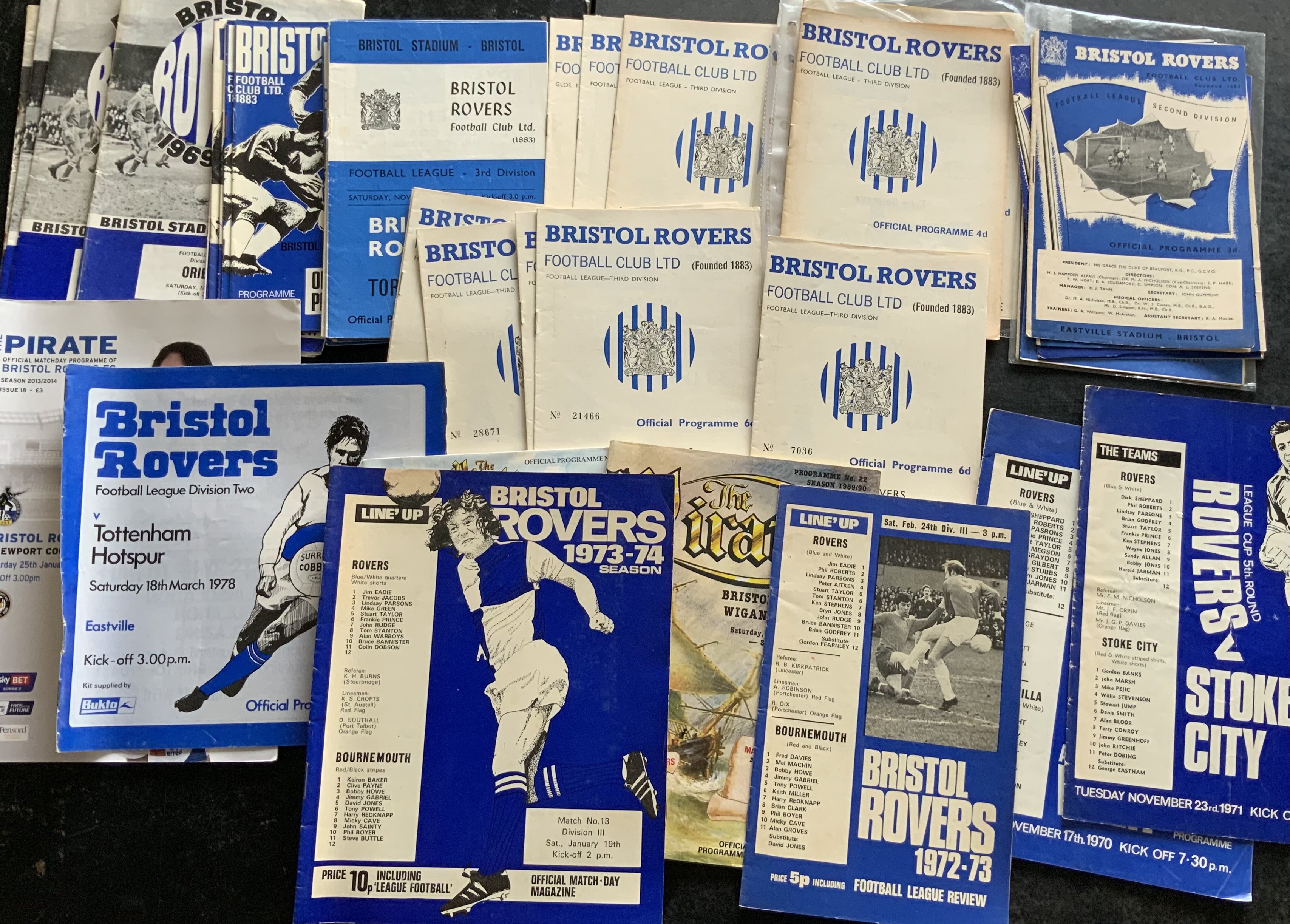 Bristol City Bristol Rovers Rovers + Burnley Football Programmes: Bristol City covering 1950s x 3, 1960s x 34, 1970's onwards x 73. League, Cup and Friendly issues included. Bristol Rovers 1950s x 5, 1960s x 33, 1970s onwards x 10. Burnley covers 15 x 1950s, 56 x 1960s and 25 x 1970s onwards. Includes 58/59 International XI Dougall Testimonial, 1960/1 Hamburg European Cup, 1961/2 Ipswich (Champions) and 1966/7 Lausanne Sports Inter-Cities-Fairs Cup with teamsheet. No duplication (264)
