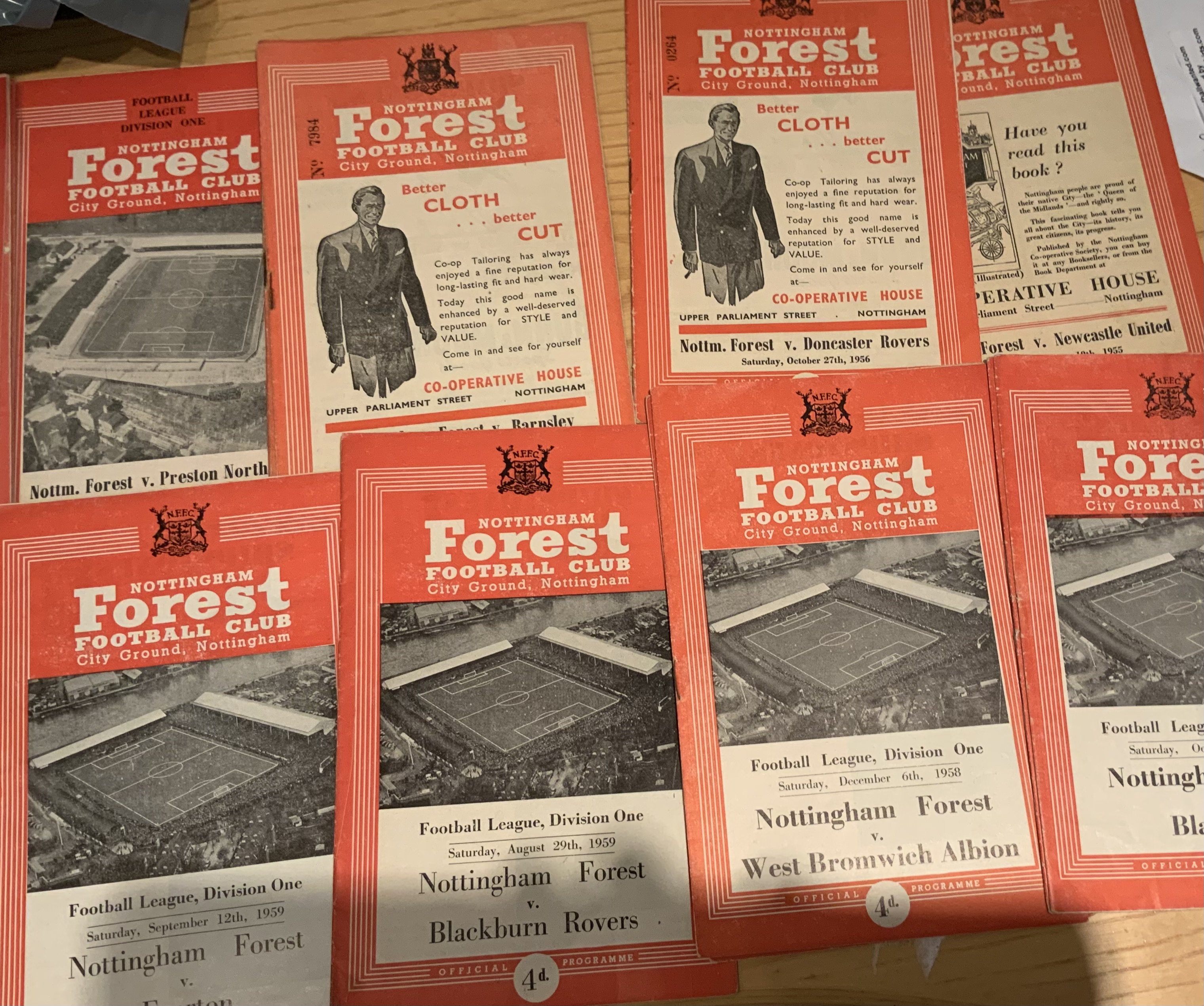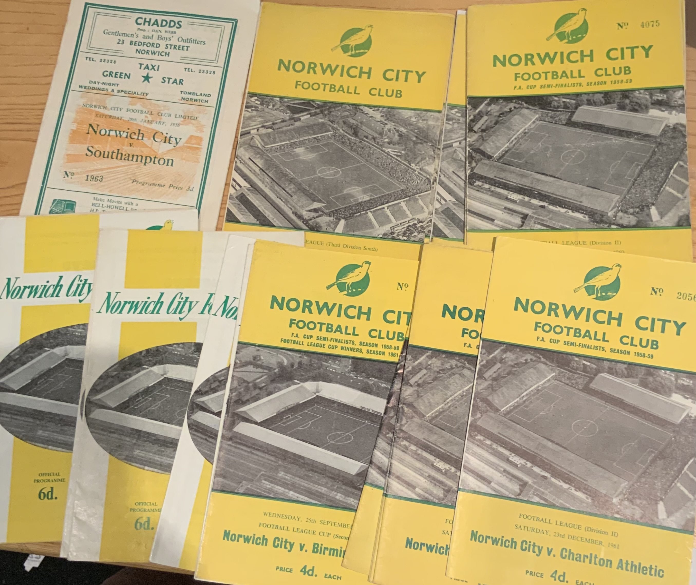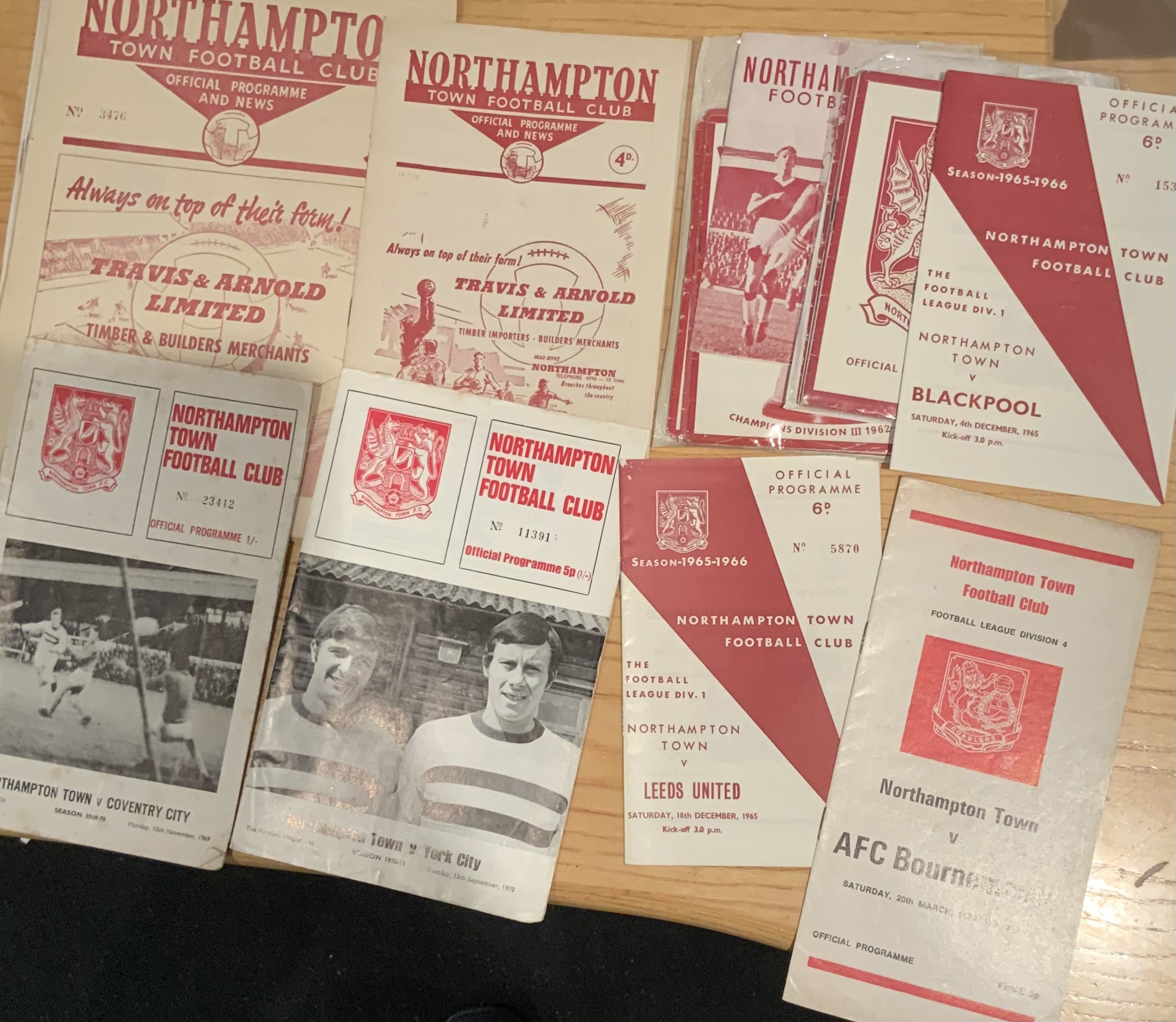 Northampton Norwich + Nottingham Forest Football Programmes: Northampton + Norwich collections have 10 x 1950s, 45 x 1960s and include 51/52 Northampton v Shrewsbury, 60/61 Accrington, 65/66 Leeds December postponed, 1974 Liverpool Bowen Testimonial. Norwich includes 55/56 Southampton, 59/60 Fulham Friendly and 1961/2 Peterborough Friendly. Nottingham Forest has 13 x 1950s, 39 x 1960s and includes 54/55 Newcastle, 76/77 Leyton Orient Anglo-Scottish Cup Final. Good with no duplication. (133)