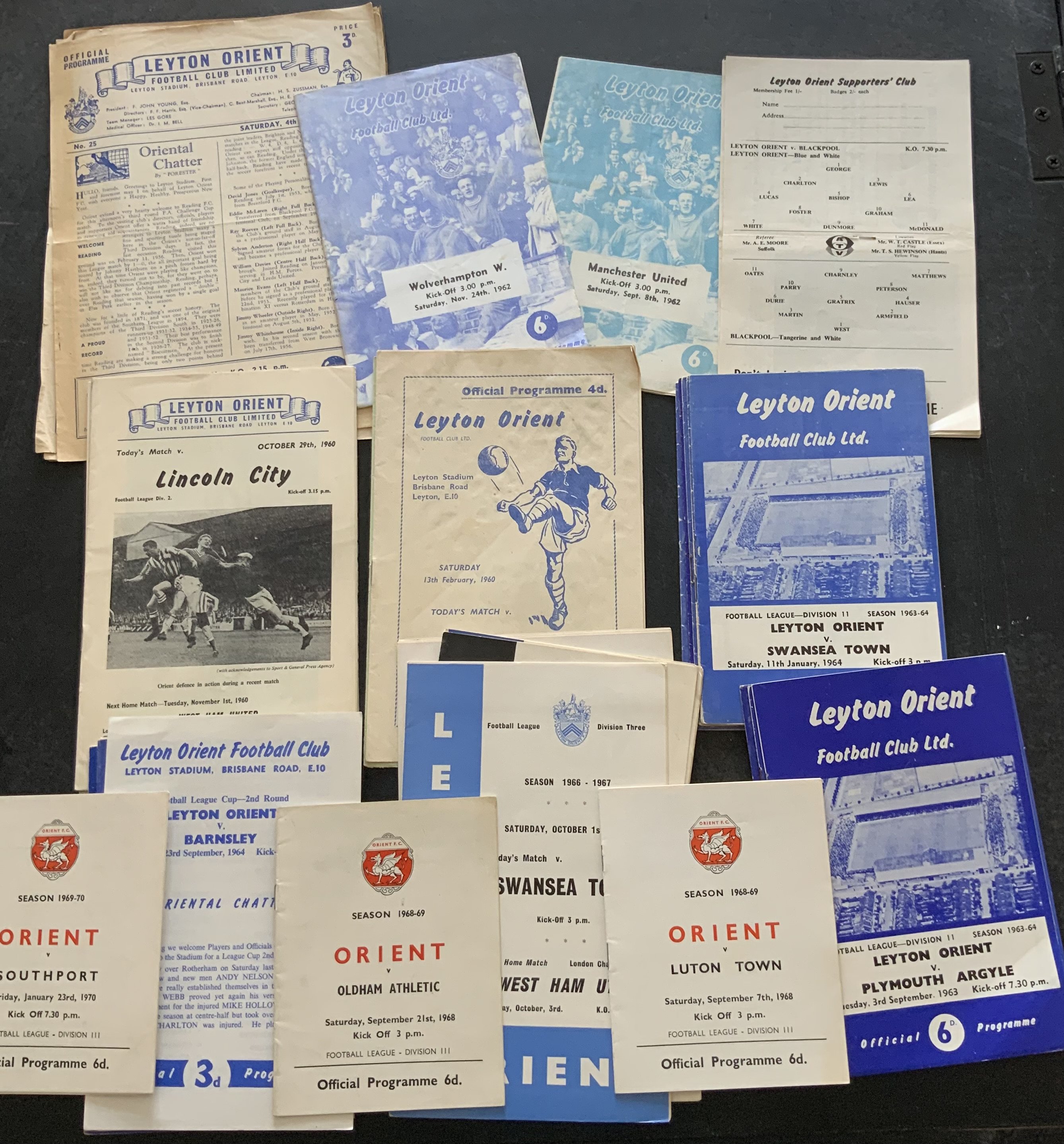 Notts County Leyton Orient + Peterborough United Football Programmes: Notts County has 10 x 1950s, 55 x 1960s and includes 51/52 Portsmouth and some newspaper issues from the 1970's. Leyton Orient has 8 x 1950s, 35 x 1960s and includes 53/54 Ipswich, 64/65 Barnsley League Cup 4 page issue. Peterborough has 58/59 Fulham FAC, 25 x 1960s and 20 x 1970s onwards and includes 1960/1 Aston Villa FAC, Corby Town Northants Senior Cup, 64/65 St Mirren Friendly and 2005/6 versus Manchester Utd which has Barry Fry auto to cover. Good with no duplication. (183)